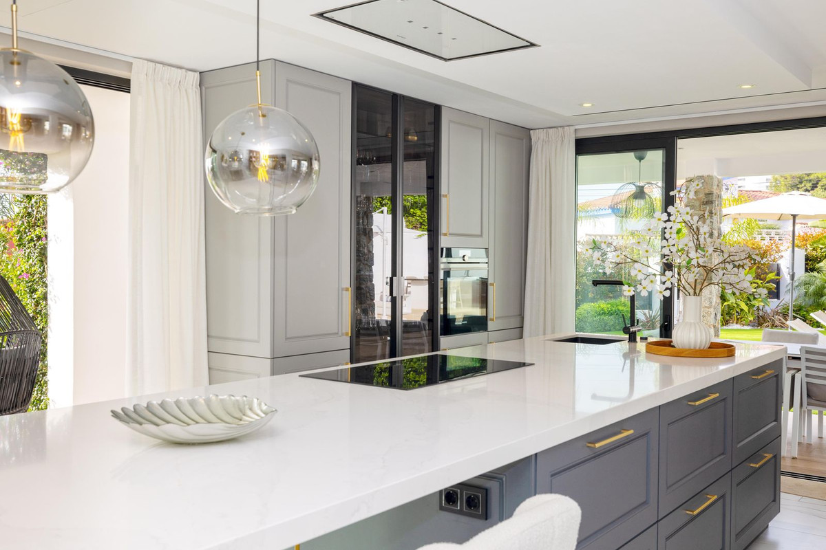 Outside, the property offers an impressive private swimming pool surrounded by well-maintained gardens, perfect for enjoying the Costa del Sol climate. It also features a dream terrace, ideal for relaxing or entertaining guests, and a garage with space for up to 6 vehicles — a rare luxury in the area.