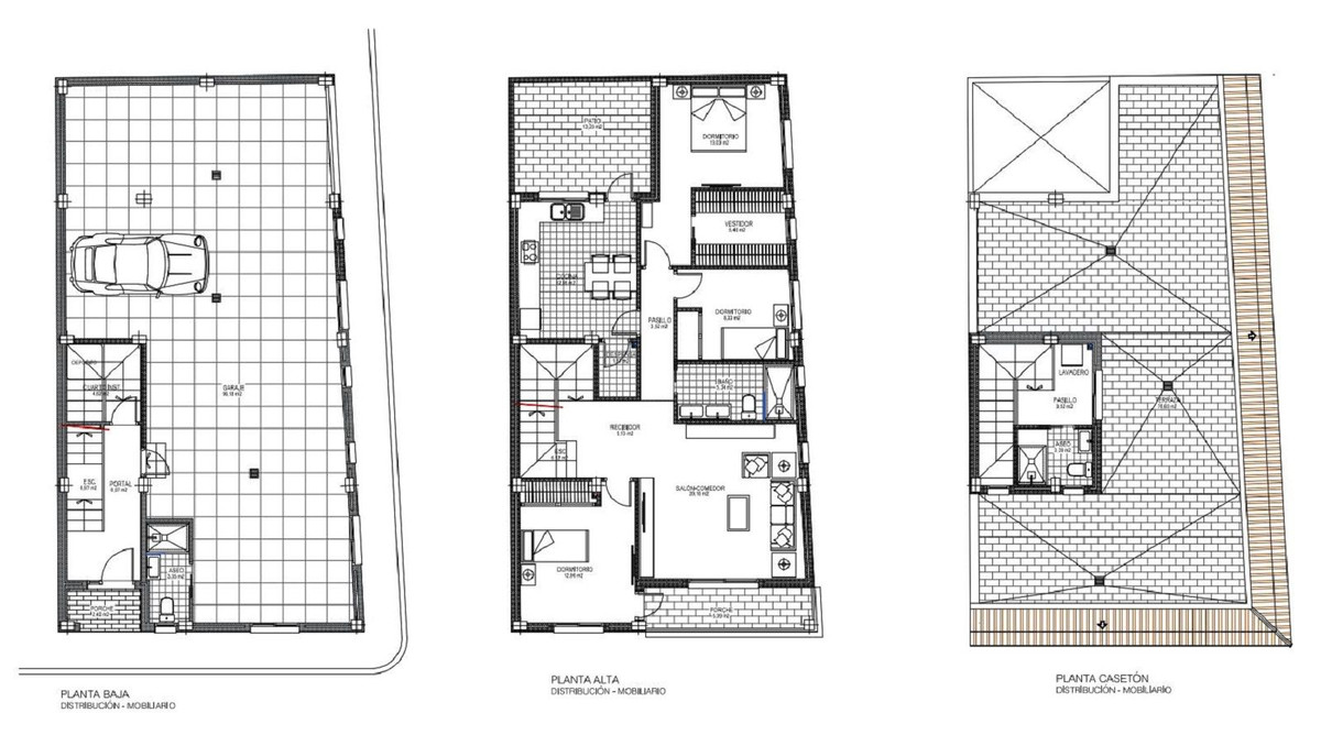 The current plans are for 100m2 garage on the ground floor, 120m2 of living space on the 1st floor and 76m2 solarium with a bathroom and store room on the upper floor.