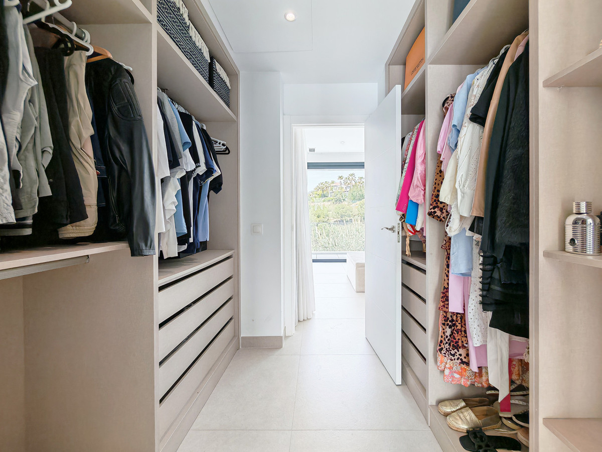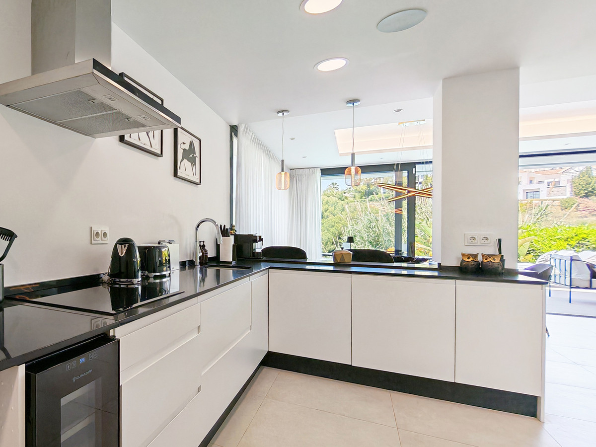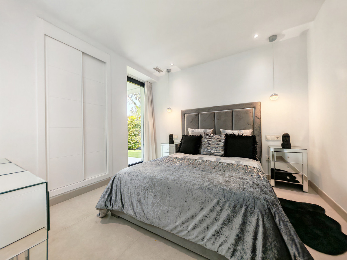 Villa for sale in La Resina Golf, Estepona with 5 bedrooms, 4 bathrooms, 1 on suite bathroom and with orientation west, with private swimming pool, carport garage (2 parking spaces) and private garden. Regarding property dimensions, it has 308.46 m² built, 521.21 m² plot, 308.46 m² interior and 95 m² terrace. Has the following facilities front line golf, air conditioning, fully furnished, fully fitted kitchen, utility room, fireplace, jacuzzi, basement, guest room, storage room, gym, alarm, solarium, security entrance, double glazing, video entrance, brand new, dining room, barbecue, security service 24h, guest toilet, private terrace, kitchen equipped, living room, study room, mountain view, golf view, heated pool, automatic irrigation system, smart home system, dolby stereo surround system, laundry room, internet - wi-fi, covered terrace, fitted wardrobes, garden view, pool view, panoramic view, cinema room, underfloor heating (bathrooms), wine cellar, close to children playground, close to sea / beach, close to golf, uncovered terrace, games room, glass doors, separate dining room, open plan kitchen, balcony, ceiling cooling system, close to schools, guest apartment, inside golf resort, office room and pets allowed.