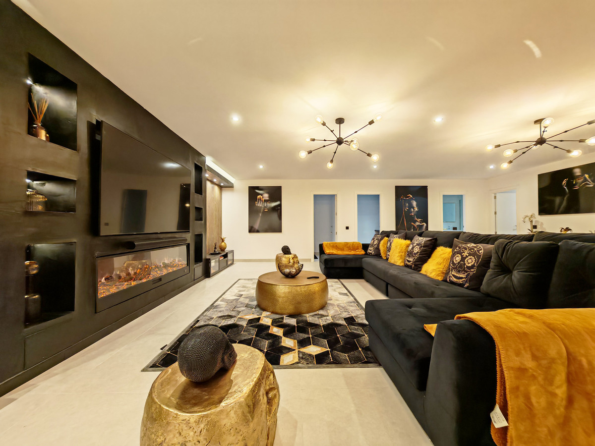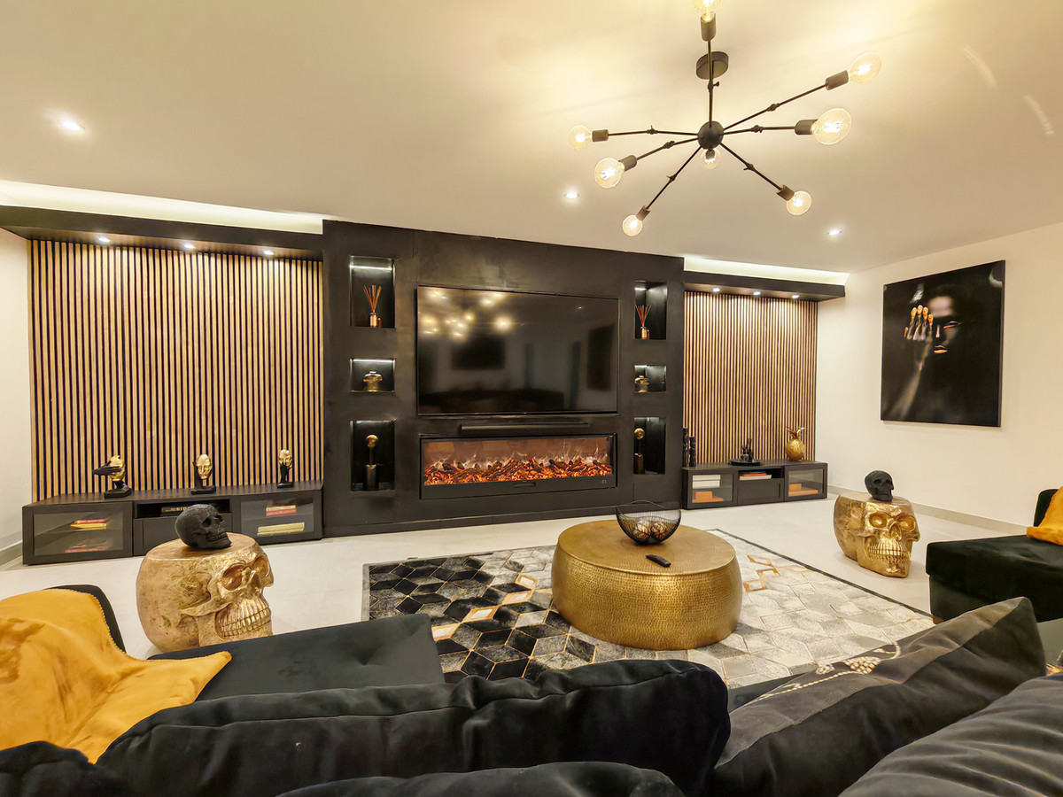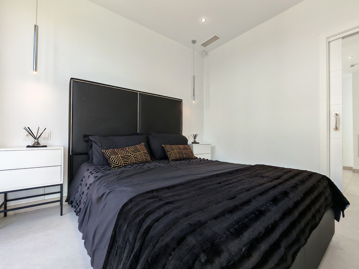 Villa for sale in La Resina Golf, Estepona with 5 bedrooms, 4 bathrooms, 1 on suite bathroom and with orientation west, with private swimming pool, carport garage (2 parking spaces) and private garden. Regarding property dimensions, it has 308.46 m² built, 521.21 m² plot, 308.46 m² interior and 95 m² terrace. Has the following facilities front line golf, air conditioning, fully furnished, fully fitted kitchen, utility room, fireplace, jacuzzi, basement, guest room, storage room, gym, alarm, solarium, security entrance, double glazing, video entrance, brand new, dining room, barbecue, security service 24h, guest toilet, private terrace, kitchen equipped, living room, study room, mountain view, golf view, heated pool, automatic irrigation system, smart home system, dolby stereo surround system, laundry room, internet - wi-fi, covered terrace, fitted wardrobes, garden view, pool view, panoramic view, cinema room, underfloor heating (bathrooms), wine cellar, close to children playground, close to sea / beach, close to golf, uncovered terrace, games room, glass doors, separate dining room, open plan kitchen, balcony, ceiling cooling system, close to schools, guest apartment, inside golf resort, office room and pets allowed.