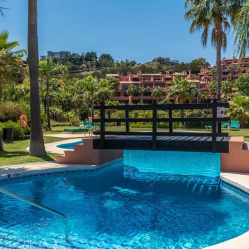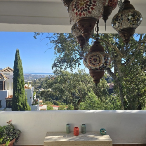 This three bed corner groundfloor apartment is located in La Floresta de la Mairena a complex located in a beautiful environment, declared a nature reserve by UNESCO, and only 7 km from the beach of Elviria, east of Marbella.The complex is surrounded by a forest of cork oaks with sea views. It breathes a relaxed atmosphere, quiet, away from traffic but perfectly connected to good roads with the center of Marbella.La Floresta de La Mairena is located in the vicinity of the famous German School and just a few minutes walking from the golf course of El Soto. All the owners of La Floresta de la Mairena will have free access to the golf course El Soto, 9 holes, par 3, which also has a gym, sauna, paddle and a clubhouse with restaurant. 5 minutes by car, you can also enjoy the famous 36-hole La Cala golf course and the Santa Maria Golf course.The complex has a swimming pool for adults and a childrens pool, communal gardens and outdoor parking. Three bedrooms and two bathrooms, large living room with direct access to a covered terrace and a private garden. Modern kitchen open to the living room. Awesome views of the forest and the sea. Parking space dedicated to the apartment and comes fully furnished! A must see property.