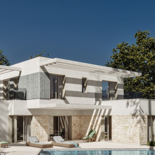 NYBYGGEDE VILLAER I FINESTRAT Nybyggeri af 10 moderne designvillaer i naturlige omgivelser med udsigt over havet og bjergene, tæt på Puig Campana-golfbanen og i kort afstand fra byerne Finestrat og Benidorm. Projektet vil blive opdelt i to byggefaser, som igen omfatter to typer boliger med 1 eller 2 etager, 3 soveværelser med dobbeltsenge, 2 eller 3 komplette badeværelser, stue-spisestue med integreret køkken, vaskerum, stor terrasse og have, privat pool, udendørs parkering, 1 eller 2 multifunktionelle kældre og i nogle modeller lukket underjordisk garage. Mulighed for solarium mod ekstra betaling. Villaer bygget med de bedste kvaliteter og seneste fremskridt inden for konstruktion, blandt andet: - Glasrækværk, der ikke bryder kontinuiteten i udsigten. - Førsteklasses gulve af porcelænsstentøj. - Pansret indgangsdør. - Udvendigt tømrerarbejde i aluminium med kuldebrobrydning og dobbelt isoleringsglas med lav emissivitet med luftkammer og sikkerhed i områder med risiko for brud. - Glat indvendigt tømrerarbejde af hvidlakeret træ med håndtag og beslag i rustfrit stål. - Fuldt udstyrede skydeskabe og omklædningsrum. - Produktion af varmt vand til husholdningen gennem et varmepumpesystem med en 100L akkumulatortank med støtte fra solpaneler på taget. - Elektrisk installation af høj kvalitet 9,2kw. - Installation af klimaanlæg gennem kanaler med maskiner inkluderet. - Minimalistiske designkøkkener, fuldt udstyret med ø, møbler og apparater inkluderet. - Privat pool med belysning og strandområde med fortov eller kunstgræs. - Fuldt tilpasselig multifunktionel kælder, afhængigt af modellen med et garageområde til et køretøj og forudinstallation til et elektrisk køretøj. Villas ligger i et privilegeret miljø på Costa Blanca, i et forhøjet område ved foden af bjergene, omgivet af natur og andre lignende urbaniseringer, med fremragende udsigt over havet og dets omgivelser. Meget gode vejforbindelser med den nærliggende by Finestrat, 10 minutter i bil fra indkøbscentre, motorvej A7, strandene og de nærliggende byer Benidorm og Villajoyosa, og 30 minutter fra byen Alicante og dens internationale lufthavn.