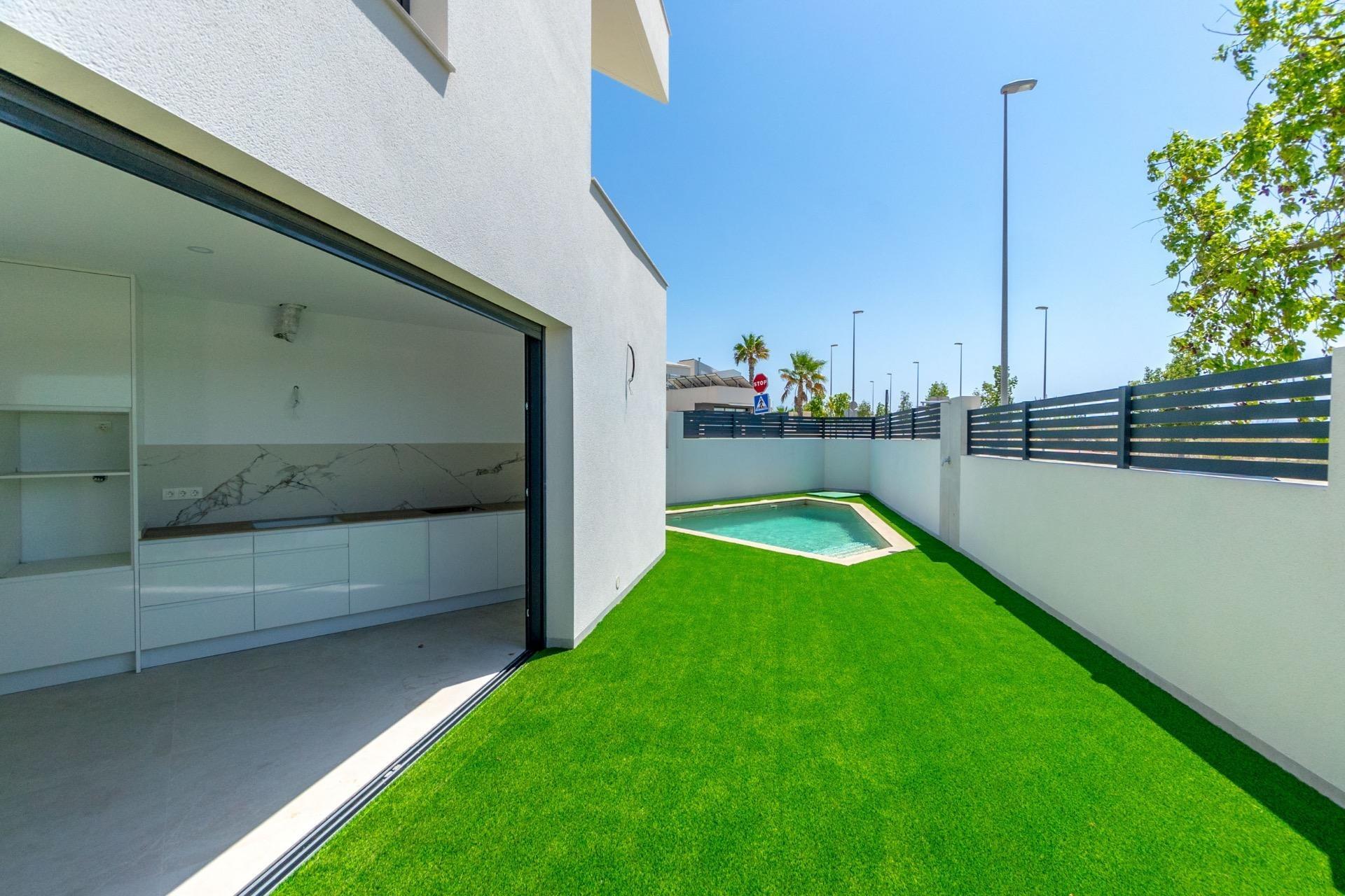 NYBYGGET DOBBELTHUS I BENIJOFAR Eksklusivt dobbelthus med pool og have i Benijofar. Storslået nybygget villa, bygget med materialer af høj kvalitet og et moderne design, der kombinerer komfort og funktionalitet. Beliggende på en privat grund på 183,94 m², tilbyder denne ejendom 110,37 m² konstrueret plads fordelt på to etager. I stueetagen finder vi et rummeligt og lyst åbent stue-spisestue-køkkenområde, perfekt til at nyde øjeblikke med familie eller venner. Derudover har etagen et praktisk toilet og en entré, der giver flydende adgang til alle områder af huset. På øverste etage er der to hyggelige soveværelser og et komplet badeværelse. Alle værelser er designet til maksimal komfort og privatliv. Villaens ydre er lige så imponerende med asfalterede områder for nem vedligeholdelse og en smuk have, der tilføjer et strejf af natur og friskhed. Grundens juvel er en rummelig swimmingpool på 17,60 m², der er perfekt til at køle af på varme dage og nyde en udendørs livsstil. Denne villa ligger i et roligt boligområde og tilbyder den perfekte kombination af privatliv og nærhed til alle vigtige faciliteter. Det er det ideelle hjem for dem, der leder efter et eksklusivt sted at bo eller investere. Benijofar er en dejlig landsby med en charmerende kirke og et attraktivt torv/plaza beliggende inde i landet på den sydlige Costa Blanca, tæt på turiststederne Guardamar del Segura og Torrevieja. Benijofar er også et populært sted at bo i sommerferien, da det er tæt nok på kystbyerne, men alligevel roligt nok til at kunne komme væk fra det hele. Der er flere golfbaner i nærheden samt vandlande i de nærliggende byer Rojales og Torrevieja. De nærmeste og bedste strande til Benijofar ligger cirka femten minutter væk i bil og er nogle af de bedste strande på den sydlige Costa Blanca, ved Guardamar del Segura og Torrevieja. Der er også regelmæssige busforbindelser fra Benijofar til Guardamar del Segura og Torrevieja med nem adgang til strandene. 20 minutters kørsel til Alicante lufthavn med regelmæssige flyvninger over hele Europa.