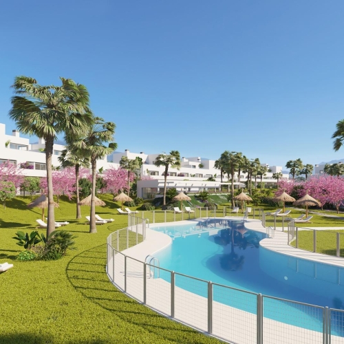 Boutique-lejligheder i nybyggeri på den nye Golden Mile nær Estepona Eksklusivt moderne boligområde mellem Marbella og Estepona Oplev et eksklusivt boutique-byggeri med moderne lejligheder beliggende på den prestigefyldte nye Golden Mile mellem Marbella og Estepona på Costa del Sol. Dette private boligkompleks består af kun 36 omhyggeligt designede boliger fordelt på tre etager, der tilbyder et intimt og elegant boligmiljø omgivet af den naturlige skønhed i det sydlige Spanien. Den nye Golden Mile er et af de mest eftertragtede boligområder på Costa del Sol, kendt for sine luksuriøse resorts, golfbaner, strandklubber og fremragende infrastruktur. Området kombinerer fredelige omgivelser med nem adgang til restauranter, indkøbscentre, internationale skoler og fritidsfaciliteter i verdensklasse. Boutique-lejligheder med private haver, terrasser og solterrasser Dette byggeri tilbyder rummelige 2- og 3-værelseslejligheder designet til at forbedre det moderne middelhavsliv. Alle boliger er hjørneboliger, hvilket giver rigeligt med naturligt lys ind i interiøret og samtidig større privatliv og fri udsigt. Købere kan vælge mellem flere forskellige boligtyper. Lejlighederne i stueetagen har private haver og egen swimmingpool. Lejlighederne på mellemste etage har store terrasser med mulighed for at tilføje en jacuzzi som ekstraudstyr. Penthouse-lejlighederne på øverste etage har private solterrasser på taget og en privat pool, hvilket skaber et ideelt rum til solbadning og udendørs underholdning. Den åbne planløsning forbinder stuer, køkkener og udendørs terrasser problemfrit og skaber lyse og funktionelle boligarealer, der er perfekte til både permanent bolig og ferie. Fasiliteter og livsstilsfaciliteter i resortstil Beboerne kan nyde en bred vifte af førsteklasses fællesfaciliteter, der er designet til afslapning og velvære. Det anlagte kompleks omfatter en stor udendørs swimmingpool omgivet af haver og afslapningsområder. Yderligere faciliteter omfatter et spa-område med opvarmet indendørs pool, sauna og tyrkisk bad, et fuldt udstyret fitnesscenter og et moderne fælles arbejdsområde. Komplekset har også en petanquebane, et særligt område til kæledyr og en underjordisk cykelparkering, hvilket skaber et livsstilsorienteret fællesskab. Elevatorer giver direkte adgang fra alle boligblokke til den underjordiske garage. Høj kvalitet og moderne teknologi Lejlighederne er bygget med materialer af høj kvalitet og moderne installationer for at sikre komfort, stil og energieffektivitet. Pansret indgangsdør Motoriserede aluminiumsjalousier i soveværelserne Fuldt installeret kanaliseret aircondition med zonetemperaturregulering Badeværelser med bruseskærme og elektrisk gulvvarme Grundlæggende hjemmeautomatiseringssystem LED-skinnebelysning i stuer, køkkener og påklædningsrum Designerkøkkener med Silestone-bordplader og Siemens-apparater eller lignende Hver ejendom inkluderer en eller to underjordiske parkeringspladser og et eller to private opbevaringsrum. Fremragende beliggenhed tæt på golfbaner, strande og faciliteter La Resina Golf og Country Club 1 km Lokale strande på New Golden Mile 1,4 km Estepona bycenter 10 km Marbella 15 km Puerto Banus 12 km Malaga Costa del Sol lufthavn 65 km Denne strategiske beliggenhed giver beboerne mulighed for at nyde roen i et boligområde, samtidig med at de er tæt på strande, golfbaner og livlige kystdestinationer. Reserver dit nye hjem på New Golden Mile Disse boutique-lejligheder kombinerer moderne design, faciliteter i resort-stil og en privilegeret beliggenhed på Costa del Sol. Kontakt os i dag for at få mere information eller aftale et privat besøg og sikre dig dit nye hjem på New Golden Mile.
