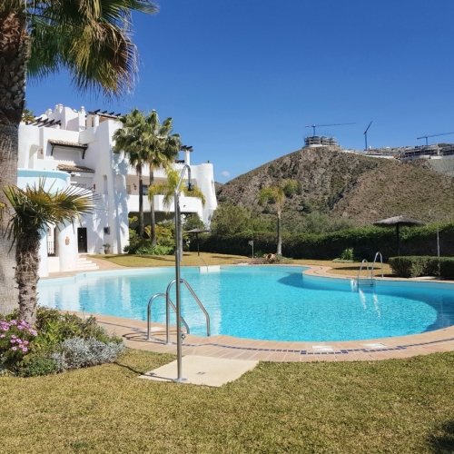 Penthouse with sea views in a popular complex on the beach of cala gran a stone's throw from the center. 65m2, 1 spacious bedroom, 2 bathrooms, open kitchen with breakfast bar, living/dining room with exit to the large terrace with stunning sea views, air conditioning, storage room, pool, beautiful gardens, parking.