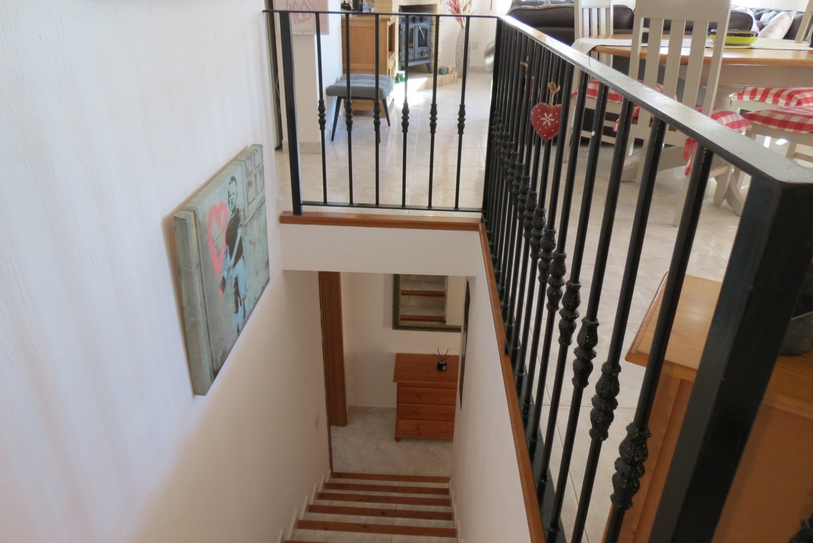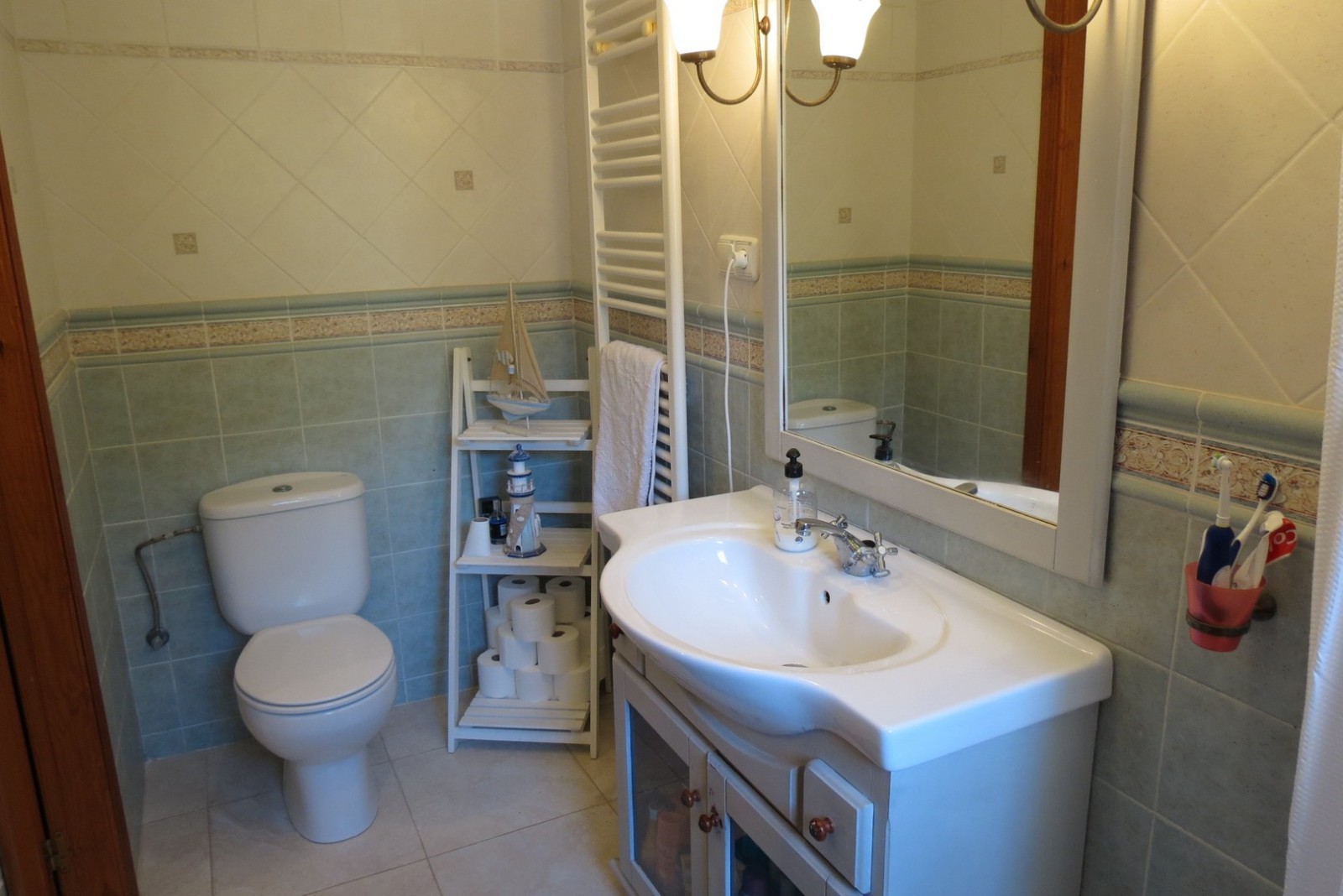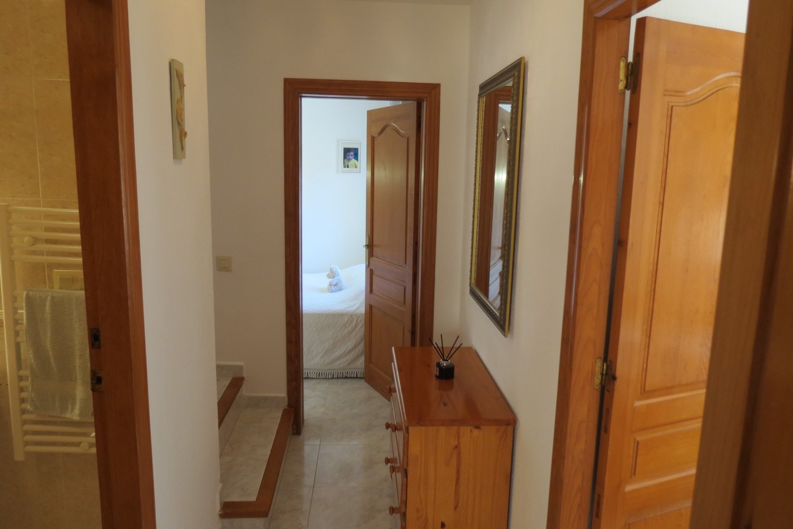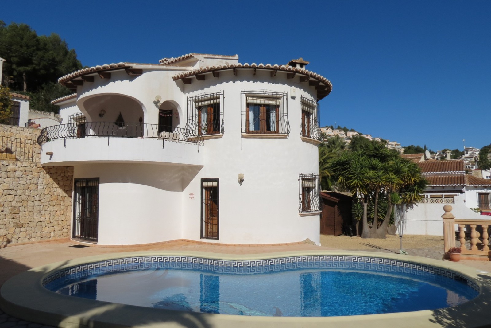 This lovely villa for sale in Valle del Portet, on the outskirts of Moraira, offers beautiful views to the green zone hills and all the way down to the sea at El Portet beach. The property is conveniently located just 1.2km to a shopping centre, 4.1km to El Portet beach and 4.7km to Moraira town centre. At street level the property has a gated parking area for two cars and then a few steps down to the main living level of the villa. You enter the villa through the open naya and then into the open plan living area which consists of a luminous living area with feature fireplace and woodburner, a dining area between the kitchen and the naya and an open kitchen with pale wood effect units and Rosa Porrino granite worktops.To the left of the living area is a spacious double bedroom with built-in wardrobes and the house bathroom which includes a shower. Down the internal staircase you reach a small hallway, to the left is a double bedroom which has a dressing area and an en-suite bathroom with vanity unit and walk-in shower. Further down the hallway to the left is a bright large bedroom with built-in wardrobes and a glazed door leading out to the pool terrace, opposite there is a bathroom which includes a bath with shower attachment. At the end of the hall is the fourth bedroom which is currently used as a utility room and storage room, this room also has glazed doors leading out to the pool terrace. Externally there is a semicircular terrace and open naya with lovely views outside the main living level, an easy maintenance garden area at the back of the villa, a storage room underneath parking area. There is a large pool terrace with barbecue and alfresco dining area and two steps down there is another large terrace with the pool shower, garden shed and a relaxing area perfect for the last rays of the daily sunshine. At the bottom of the garden there are two terraces with natural stone walls, the pool pump room, fruit trees and a Yucca.