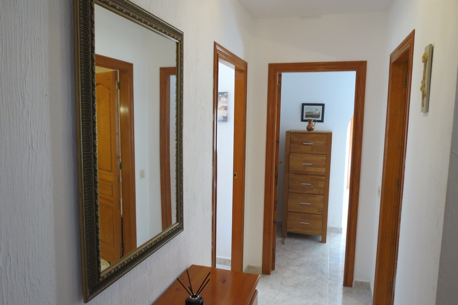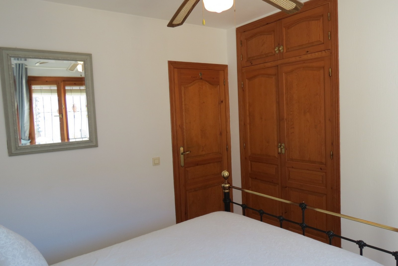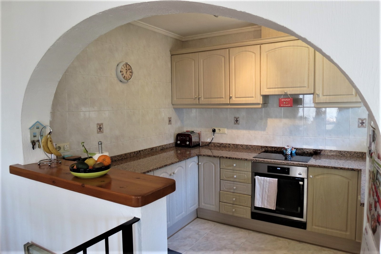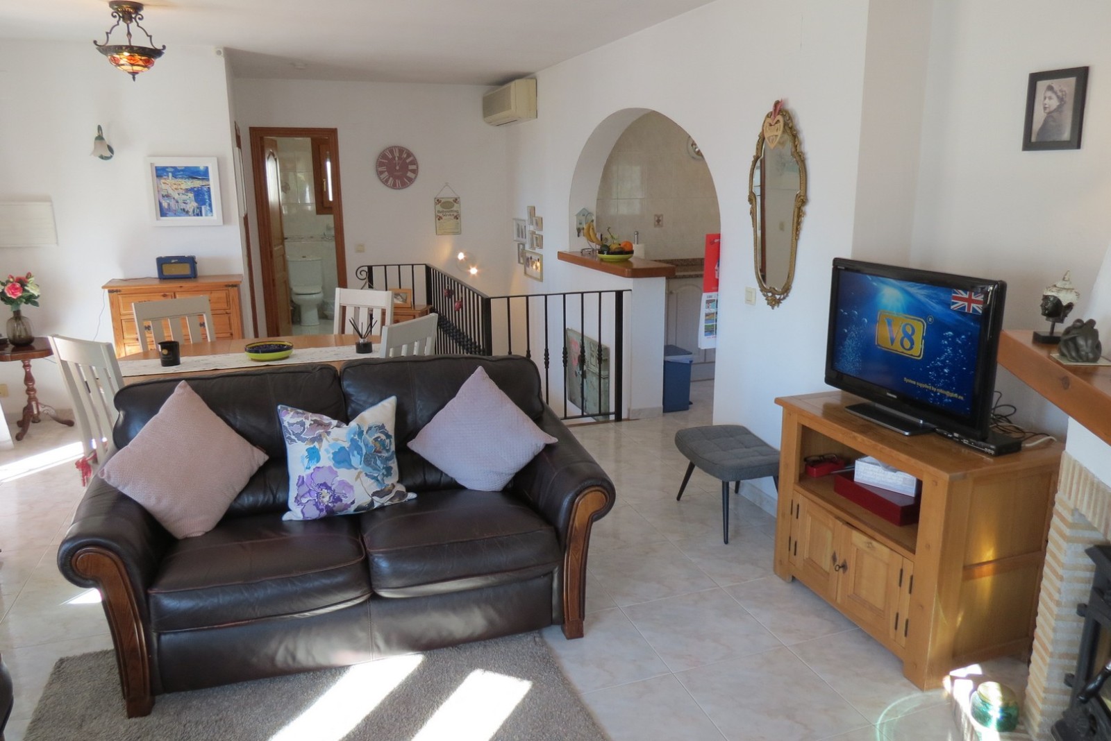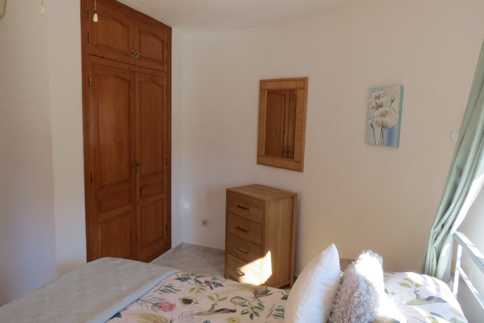 This lovely villa for sale in Valle del Portet, on the outskirts of Moraira, offers beautiful views to the green zone hills and all the way down to the sea at El Portet beach. The property is conveniently located just 1.2km to a shopping centre, 4.1km to El Portet beach and 4.7km to Moraira town centre. At street level the property has a gated parking area for two cars and then a few steps down to the main living level of the villa. You enter the villa through the open naya and then into the open plan living area which consists of a luminous living area with feature fireplace and woodburner, a dining area between the kitchen and the naya and an open kitchen with pale wood effect units and Rosa Porrino granite worktops.To the left of the living area is a spacious double bedroom with built-in wardrobes and the house bathroom which includes a shower. Down the internal staircase you reach a small hallway, to the left is a double bedroom which has a dressing area and an en-suite bathroom with vanity unit and walk-in shower. Further down the hallway to the left is a bright large bedroom with built-in wardrobes and a glazed door leading out to the pool terrace, opposite there is a bathroom which includes a bath with shower attachment. At the end of the hall is the fourth bedroom which is currently used as a utility room and storage room, this room also has glazed doors leading out to the pool terrace. Externally there is a semicircular terrace and open naya with lovely views outside the main living level, an easy maintenance garden area at the back of the villa, a storage room underneath parking area. There is a large pool terrace with barbecue and alfresco dining area and two steps down there is another large terrace with the pool shower, garden shed and a relaxing area perfect for the last rays of the daily sunshine. At the bottom of the garden there are two terraces with natural stone walls, the pool pump room, fruit trees and a Yucca.