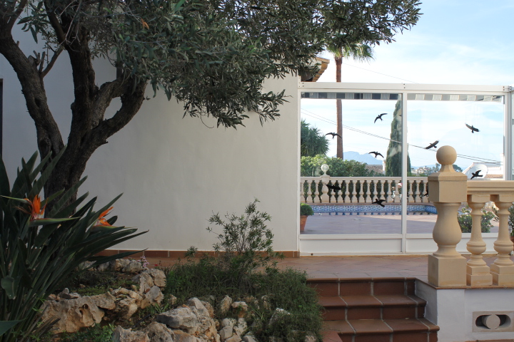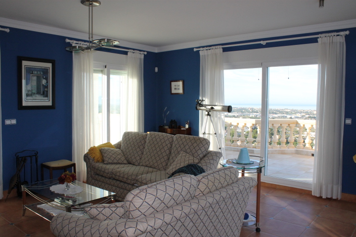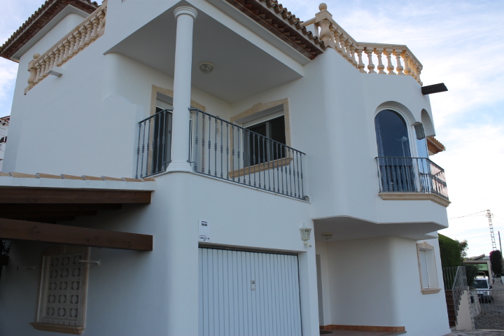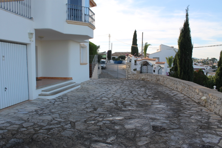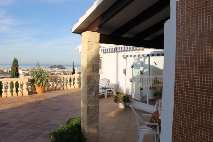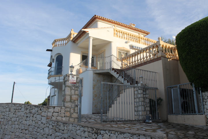 Du kan forlade alle dine bekymringer derhjemme med denne dejlige ejendom. Den smukke villa er opdelt over tre niveauer. Kælderen hvor du har hovedindgangen ved siden af et gæsteværelse med eget badeværelse. Du vil finde bryggers, garage og en carport og på samme niveau. Stueetagen er designet med en rummelig stue-spisestue, 2 soveværelser med tilhørende badeværelser. En intern trappe fører til øverste etage hvor du har en stor stue med brændeovn. Alle niveauer har en flot balkon med udsigt over havet og Denia by.