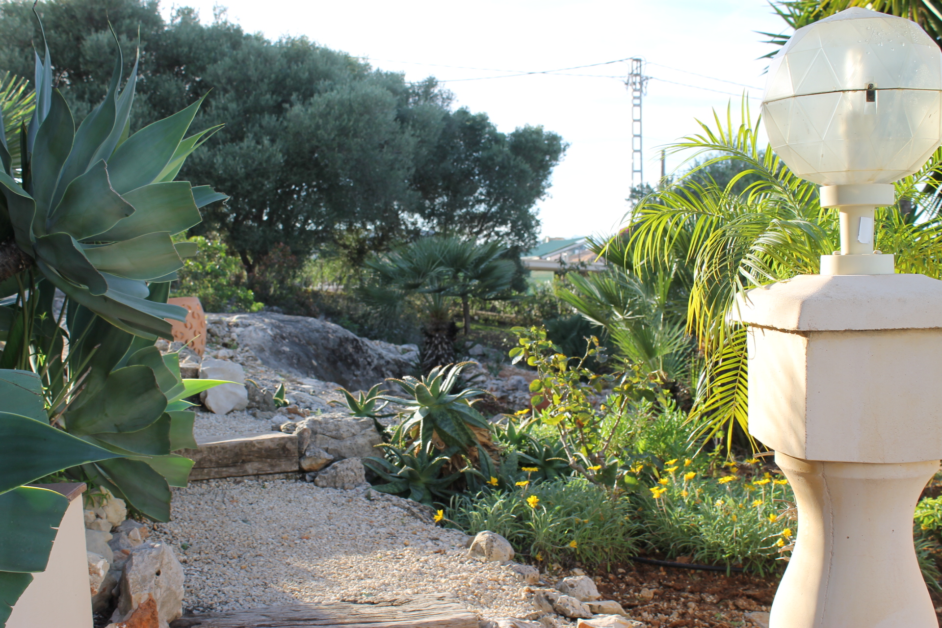 Fra stueetagen har du adgang til et dejligt pool område, hvor du også har havudsigt. Ved siden af poolen er der en dejlig have / grund på 400m2 med oliventræer og hyggelige steder at nyde solnedgangen. Det komplette udendørsområde er let at vedligeholde og er anlagt med middelhavsplanter.