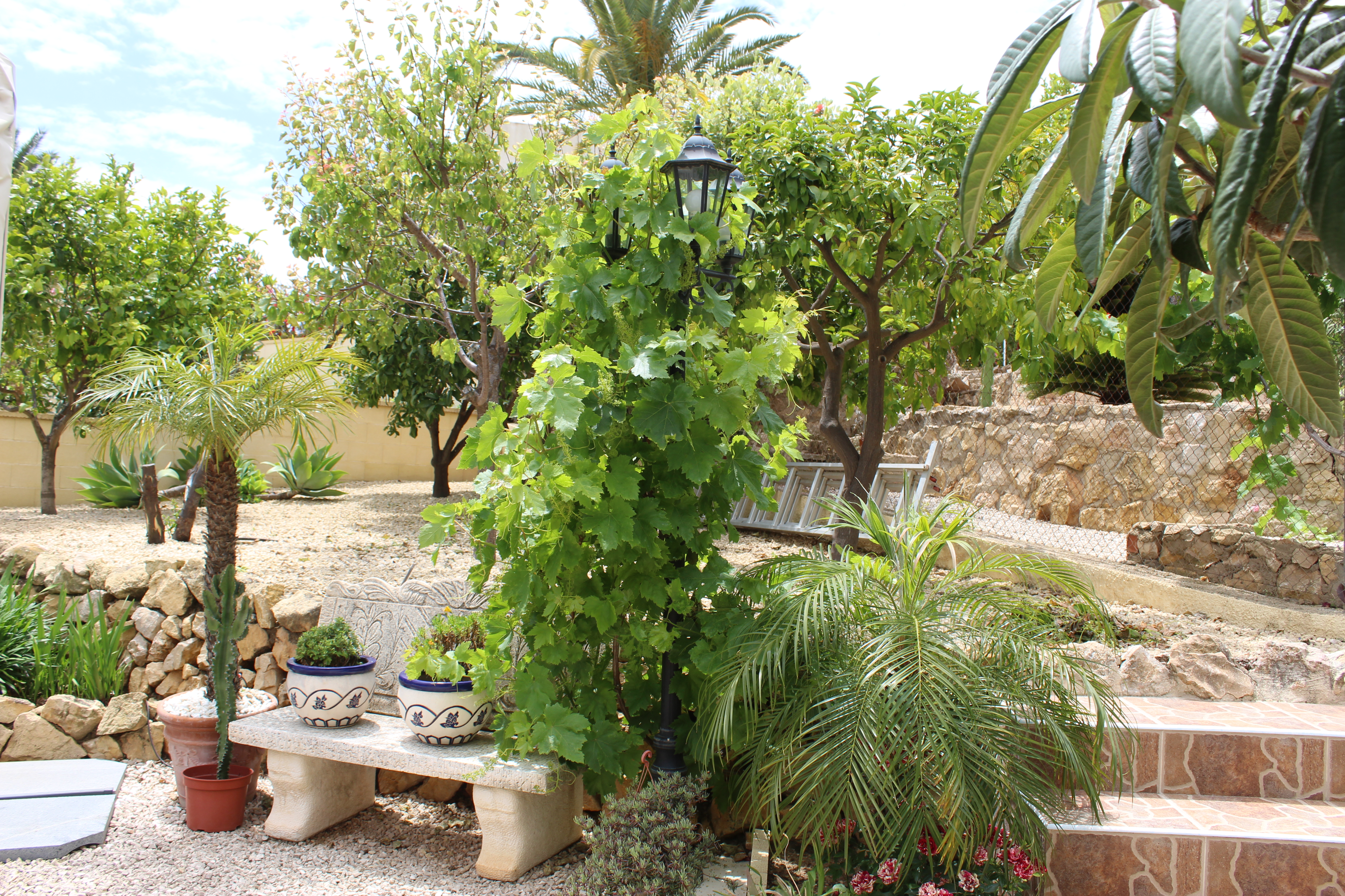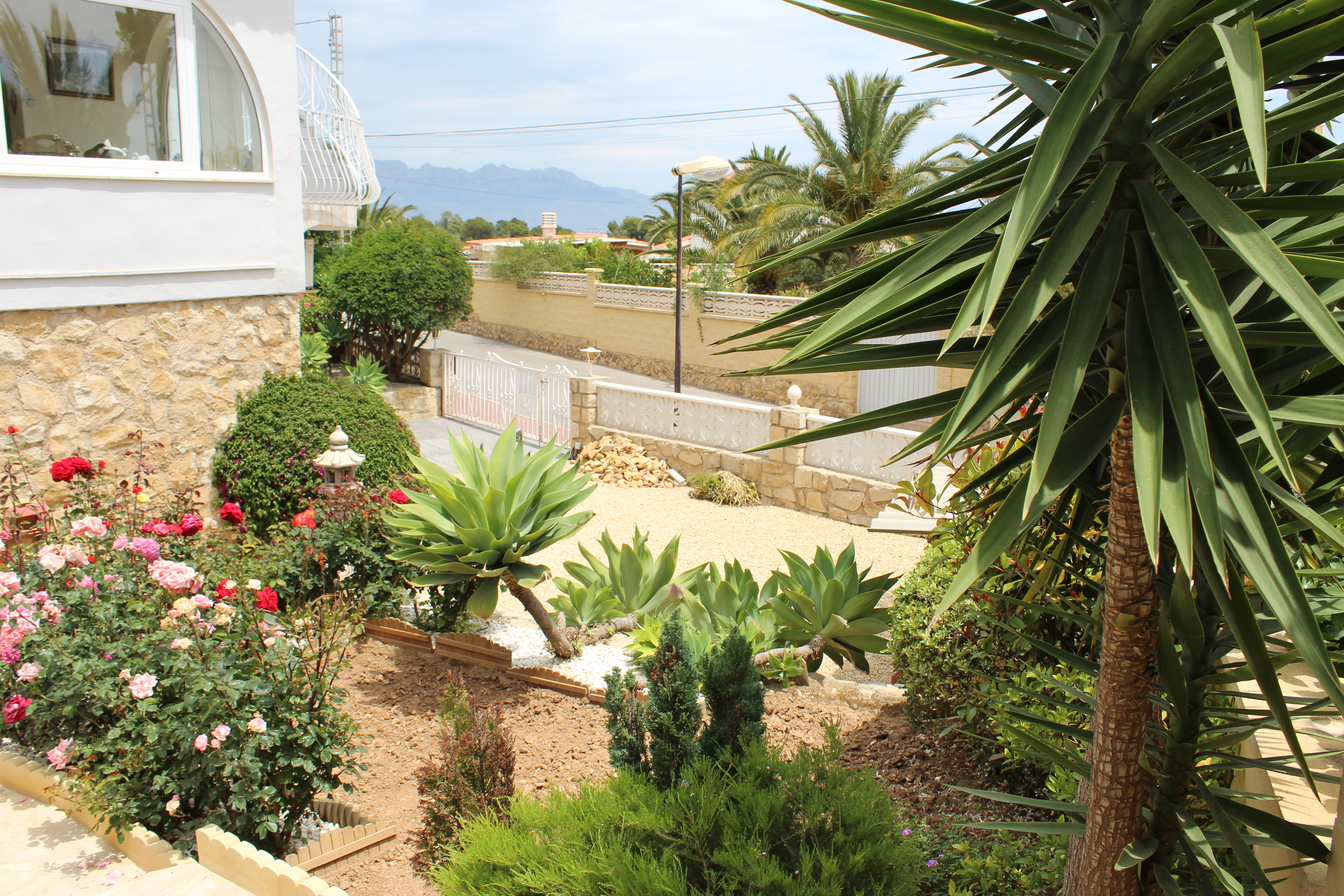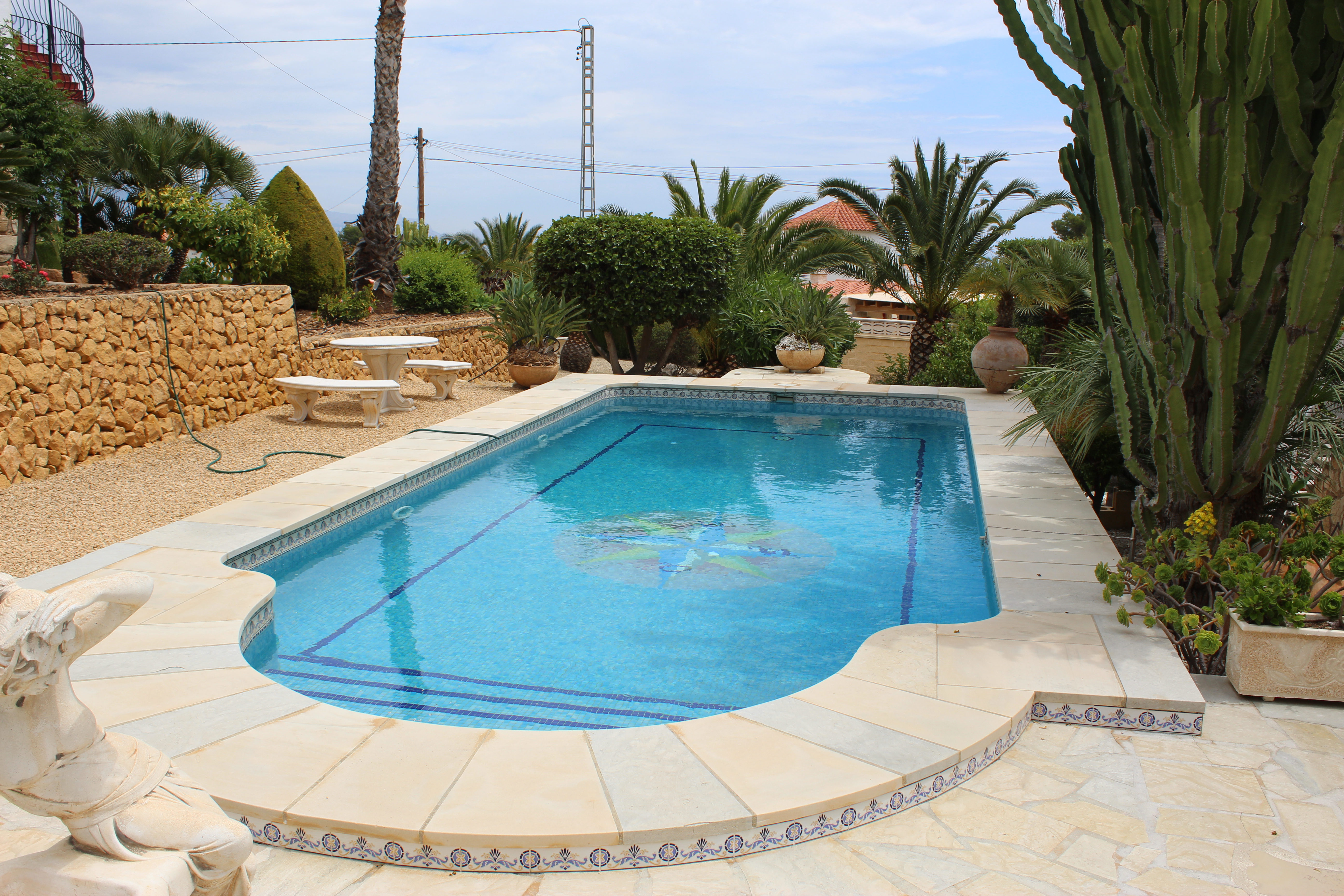 Boligen har en stor, dejlig veletableret have, der strækker sig omkring boligen, her finder du også en stor swimmingpool, der deles med den tilstødende villa.