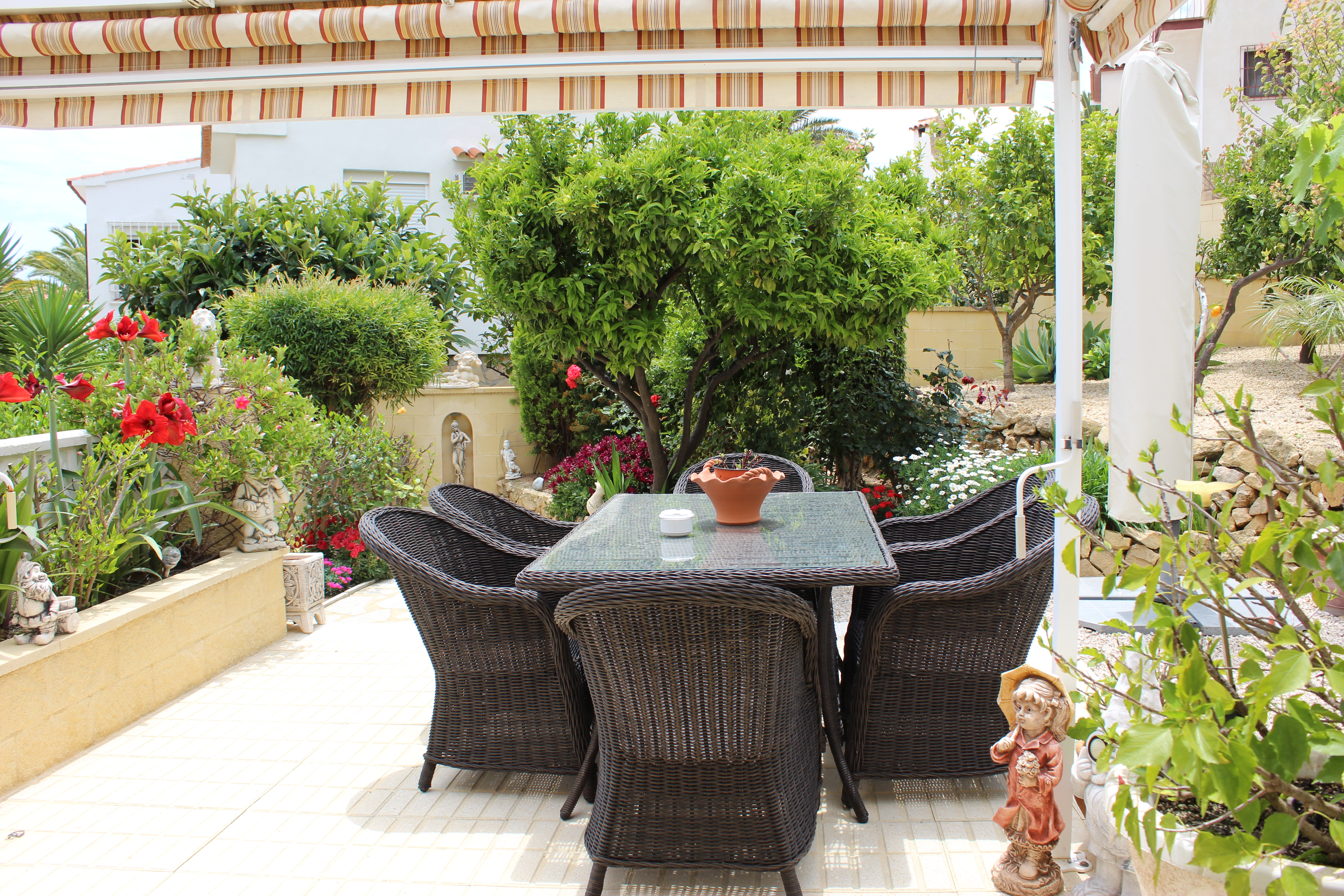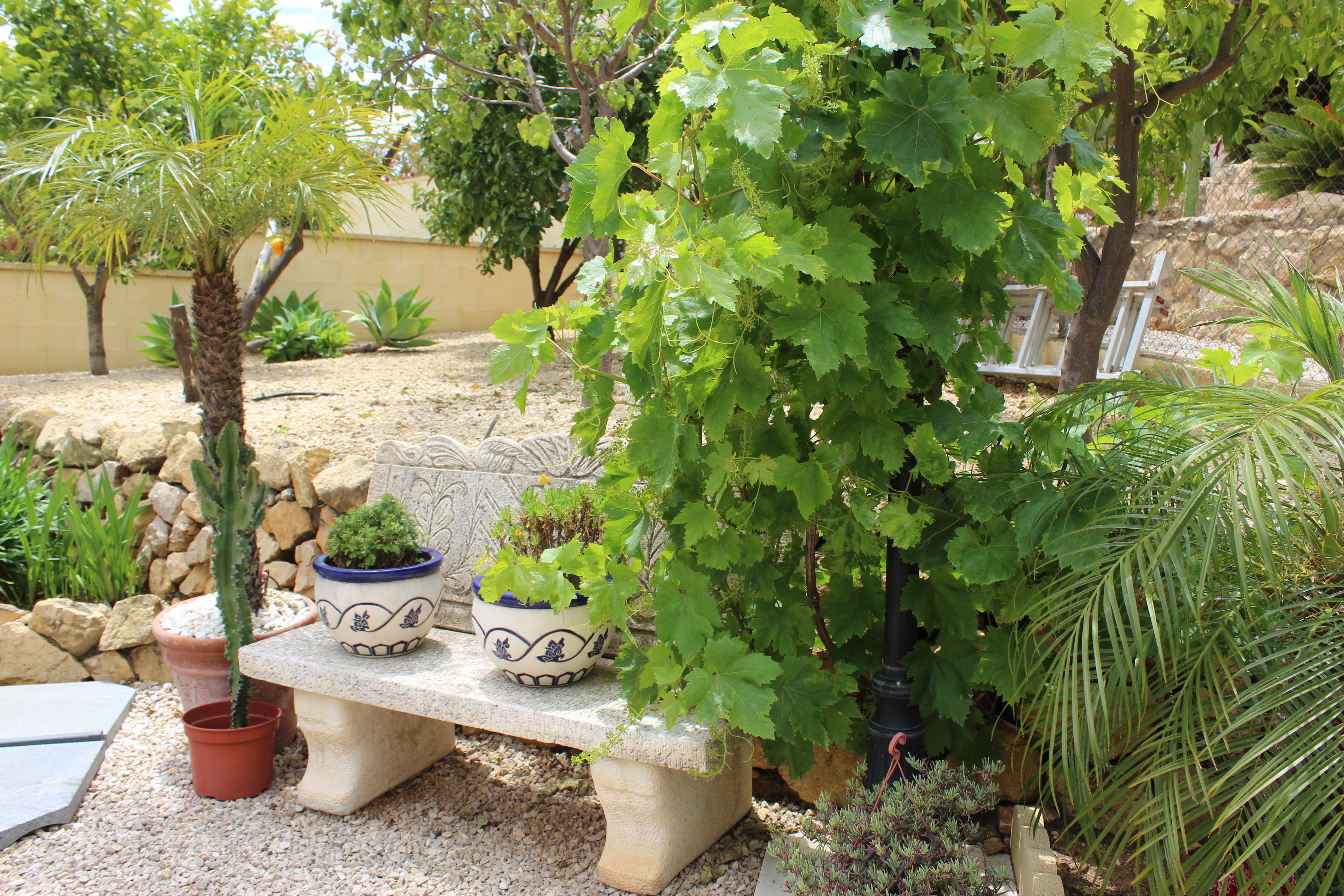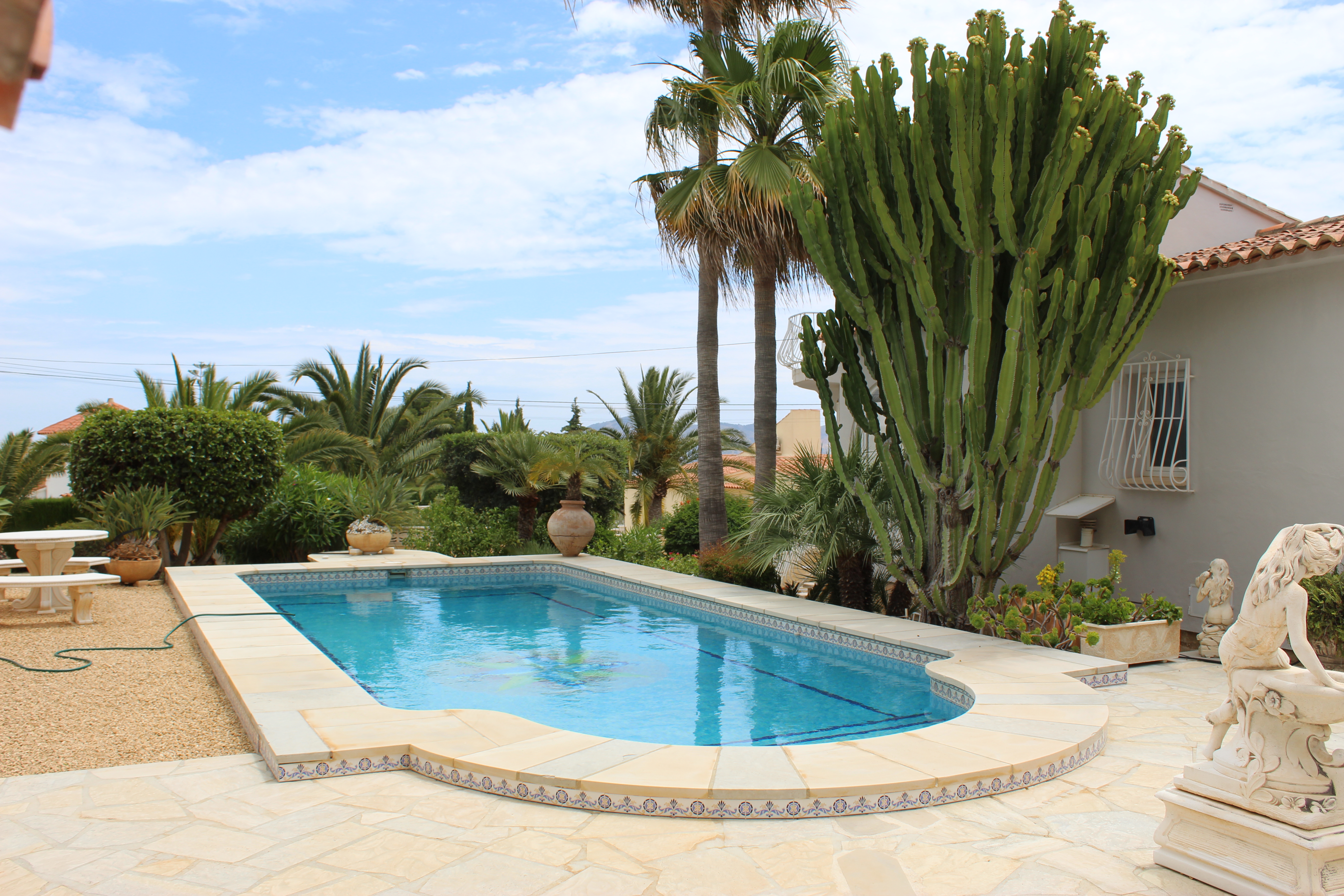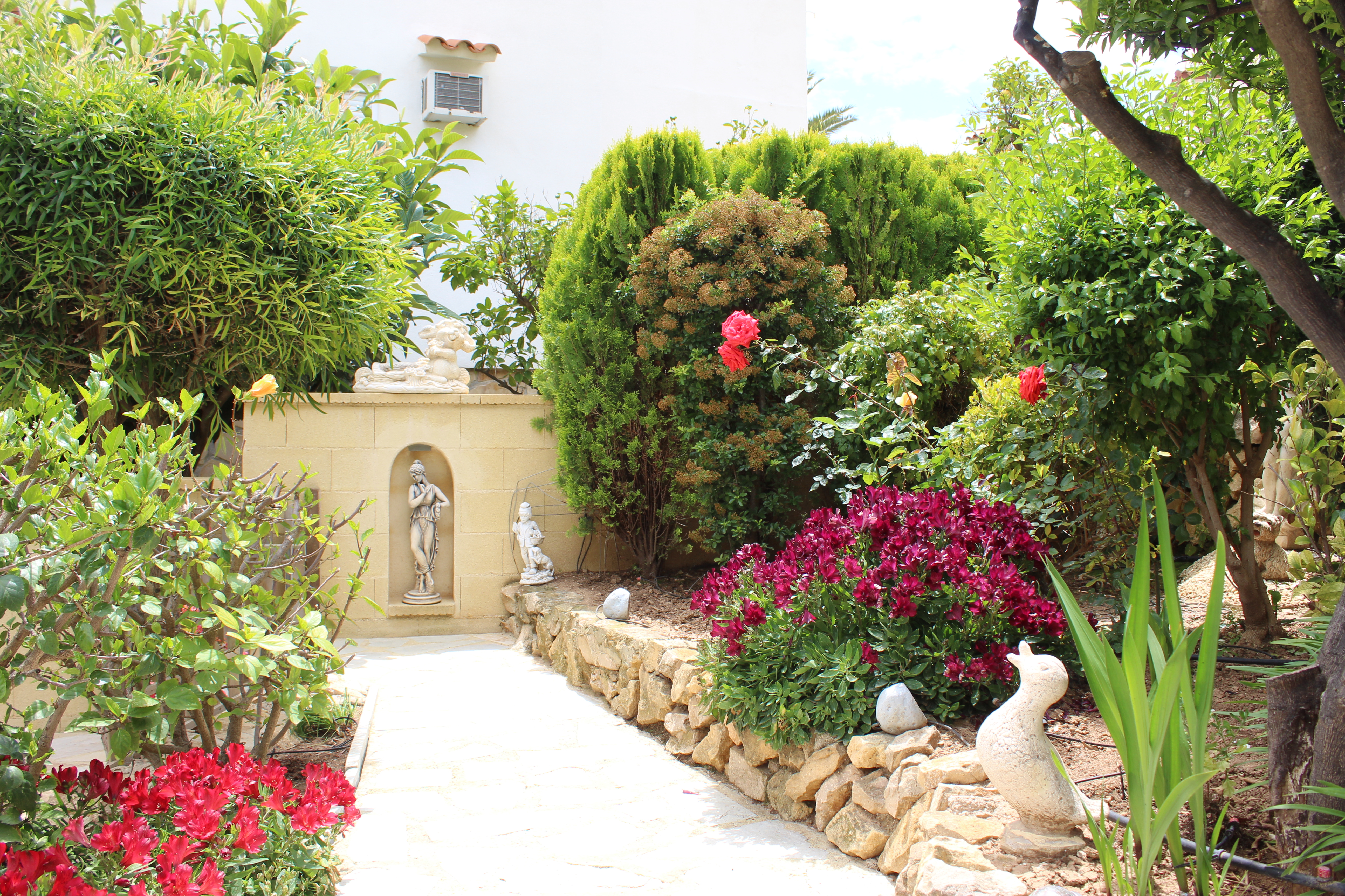 Boligen har en stor, dejlig veletableret have, der strækker sig omkring boligen, her finder du også en stor swimmingpool, der deles med den tilstødende villa.