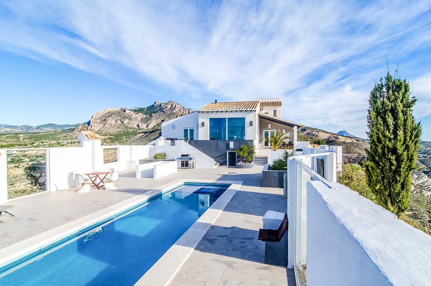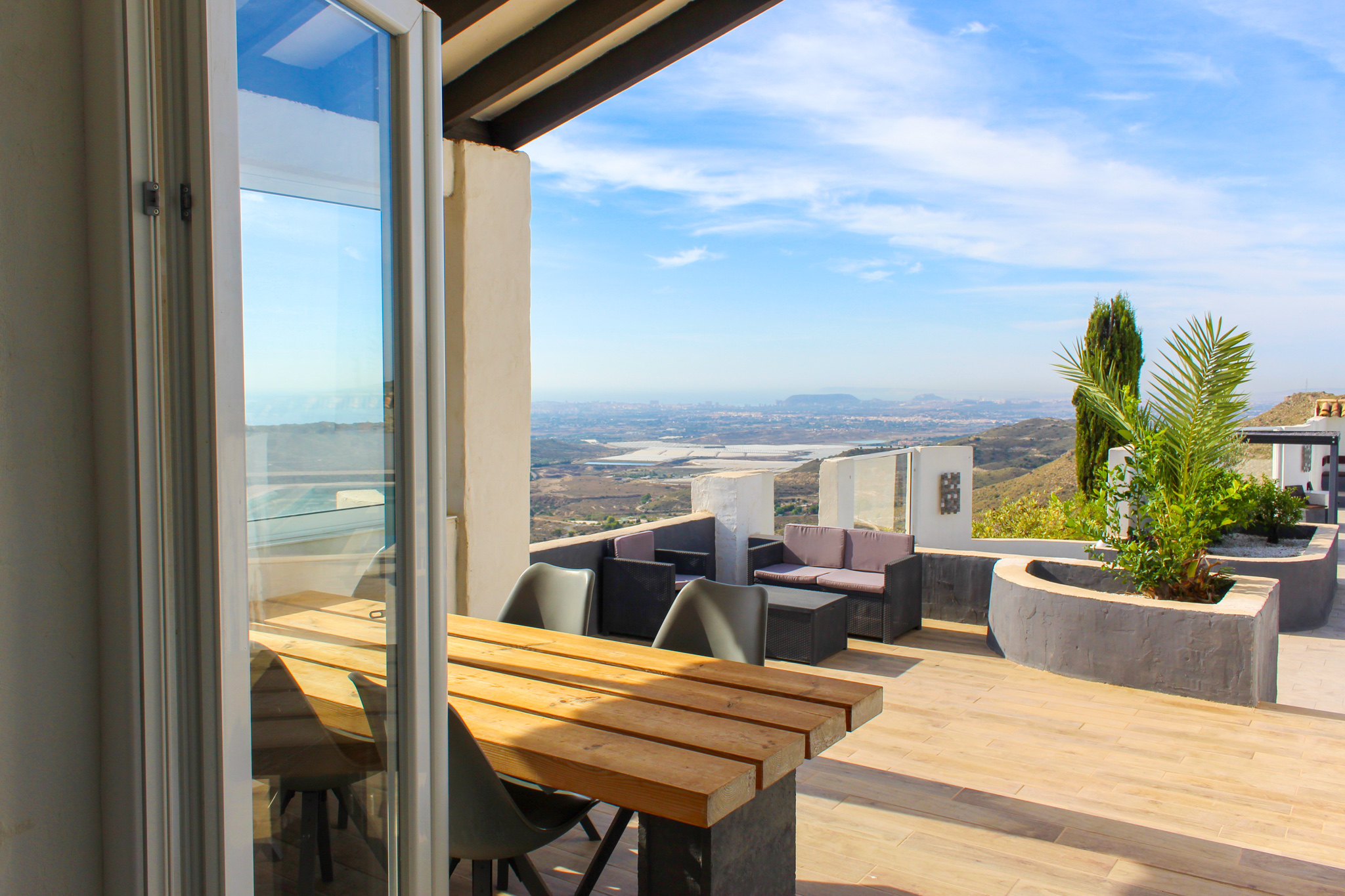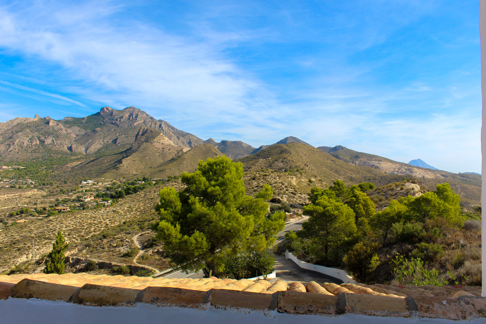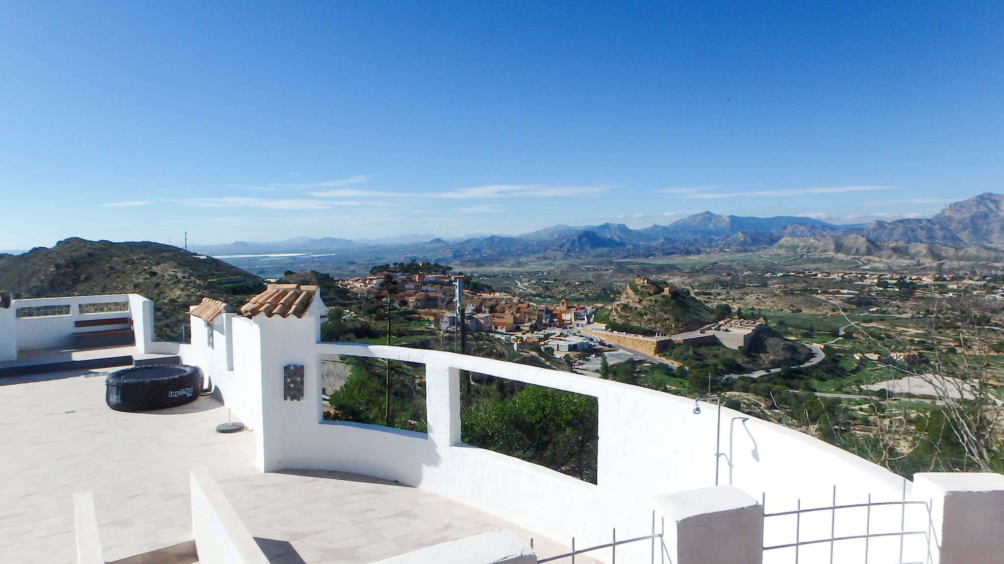 Denne fantastiske villa er med sin beliggenhed helt enestående, da man har ugeneret udsigt i alle retninger – uanset hvor i huset eller på grunden, man befinder sig. Der er smukke landskaber så langt øjet rækker, og man kan se hele vejen til Murcia og Cartagena. Om aftenen er der et spektakulært lys fra Alicante, som lyser hele kyststrækningen op.