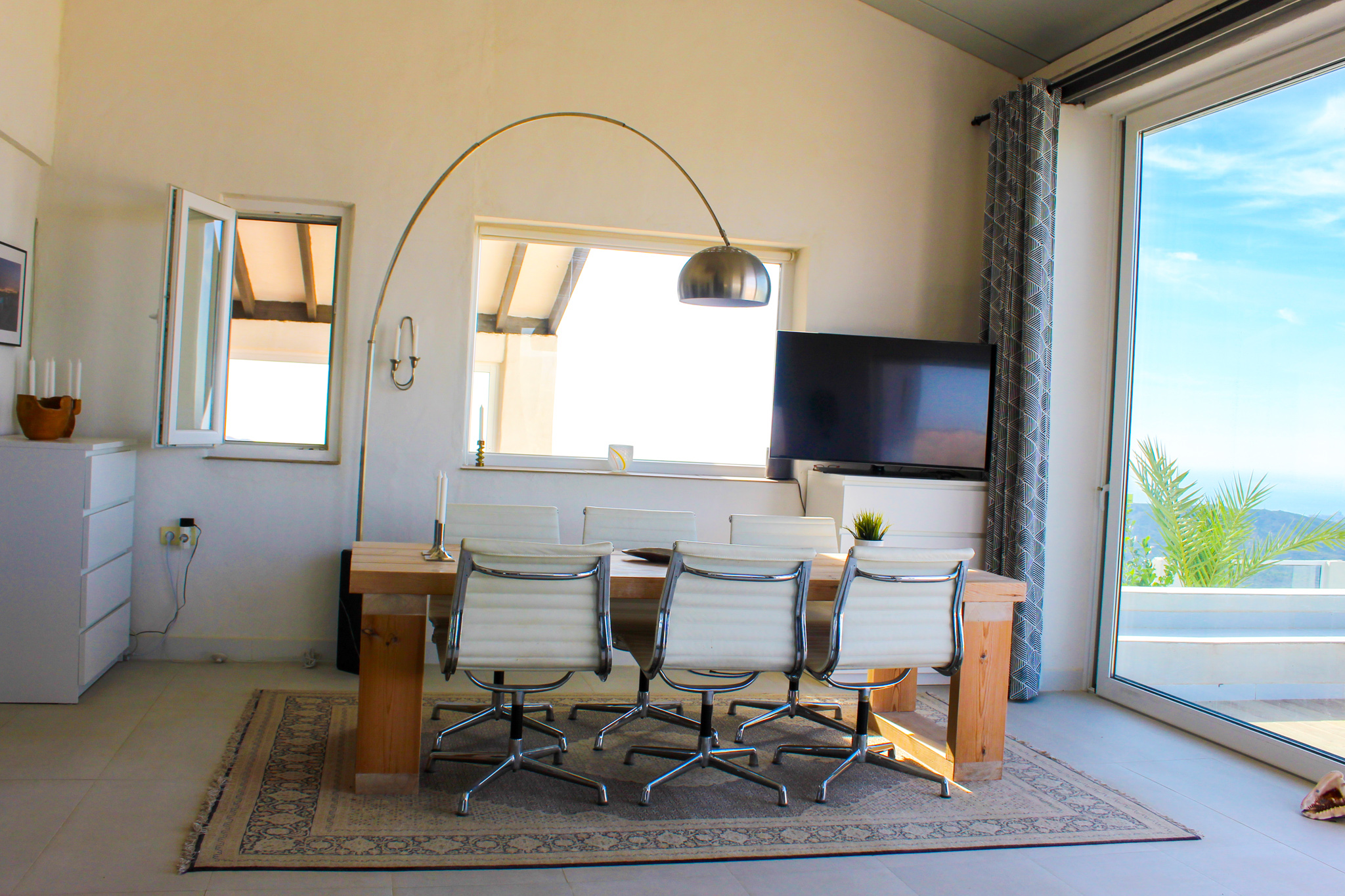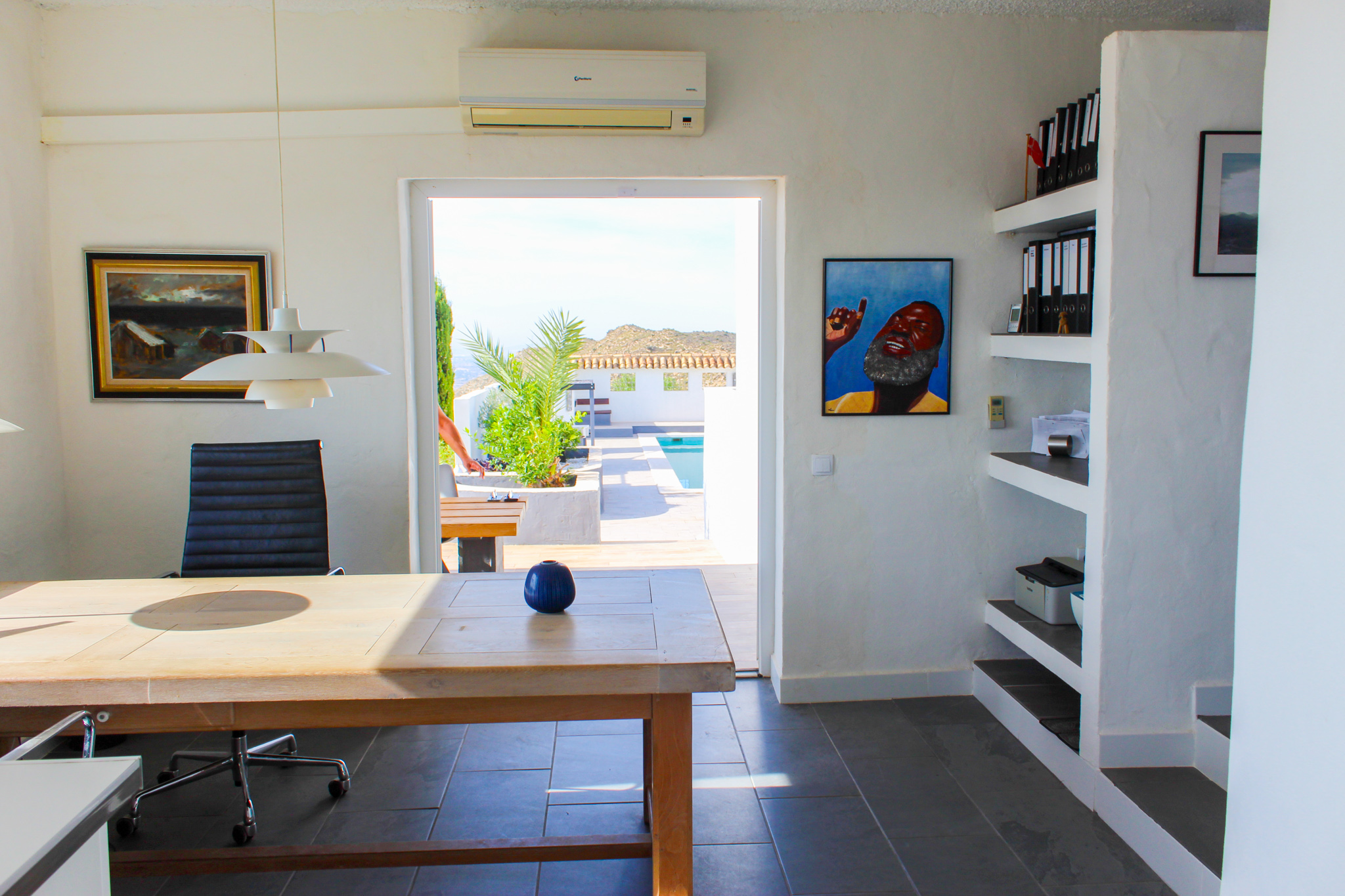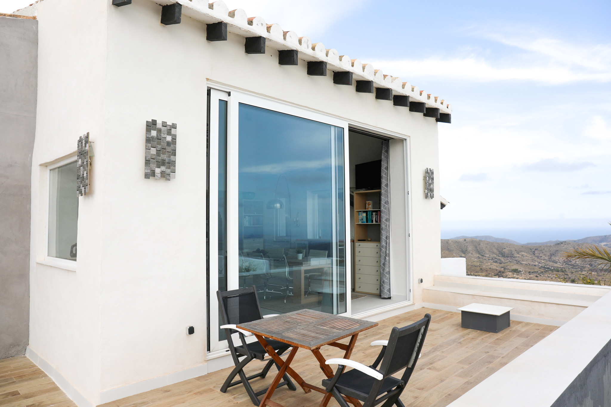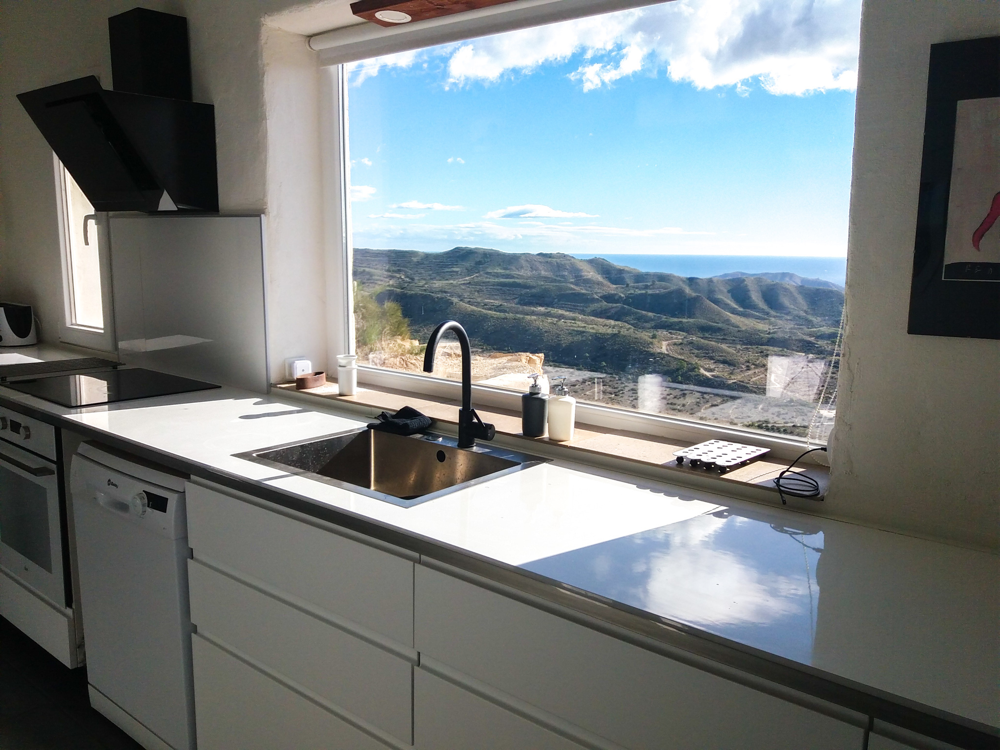 Denne fantastiske villa er med sin beliggenhed helt enestående, da man har ugeneret udsigt i alle retninger – uanset hvor i huset eller på grunden, man befinder sig. Der er smukke landskaber så langt øjet rækker, og man kan se hele vejen til Murcia og Cartagena. Om aftenen er der et spektakulært lys fra Alicante, som lyser hele kyststrækningen op.