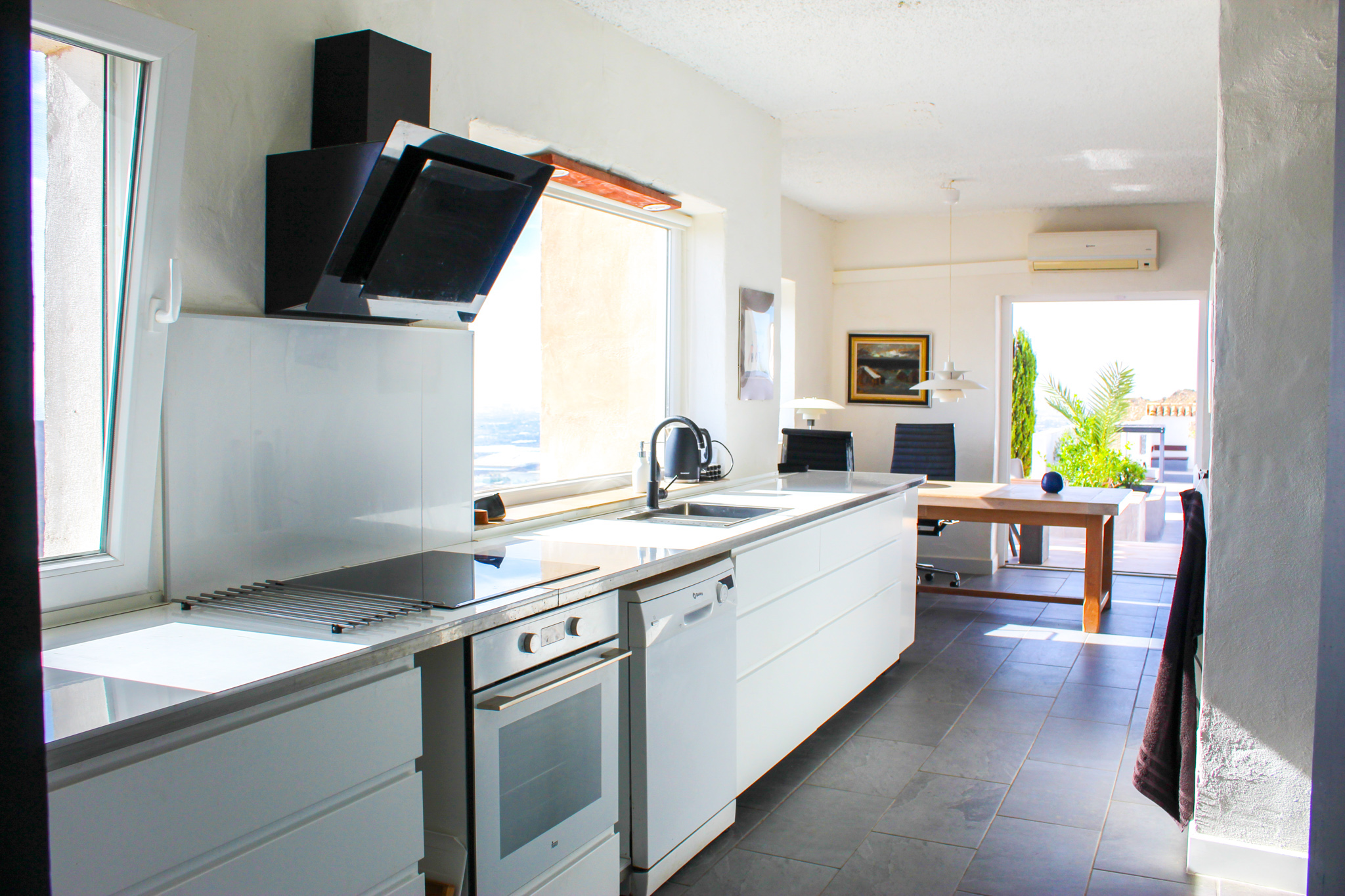 De nuværende ejere har totalrenoveret villaen med kvalitetsmaterialer og på en måde, der bevarer de charmerende detaljer fra villaens oprindelse kombineret med den skandinaviske stil, herunder store vinduer, som giver et godt lysindfald i hele boligen. De glaspartier, som bryder muren omkring poolområdet giver ligeledes en åbenhed med kig til hav, bjerge og landsbyen mens man stadig er i læ for vind og har privatliv på terrassen.