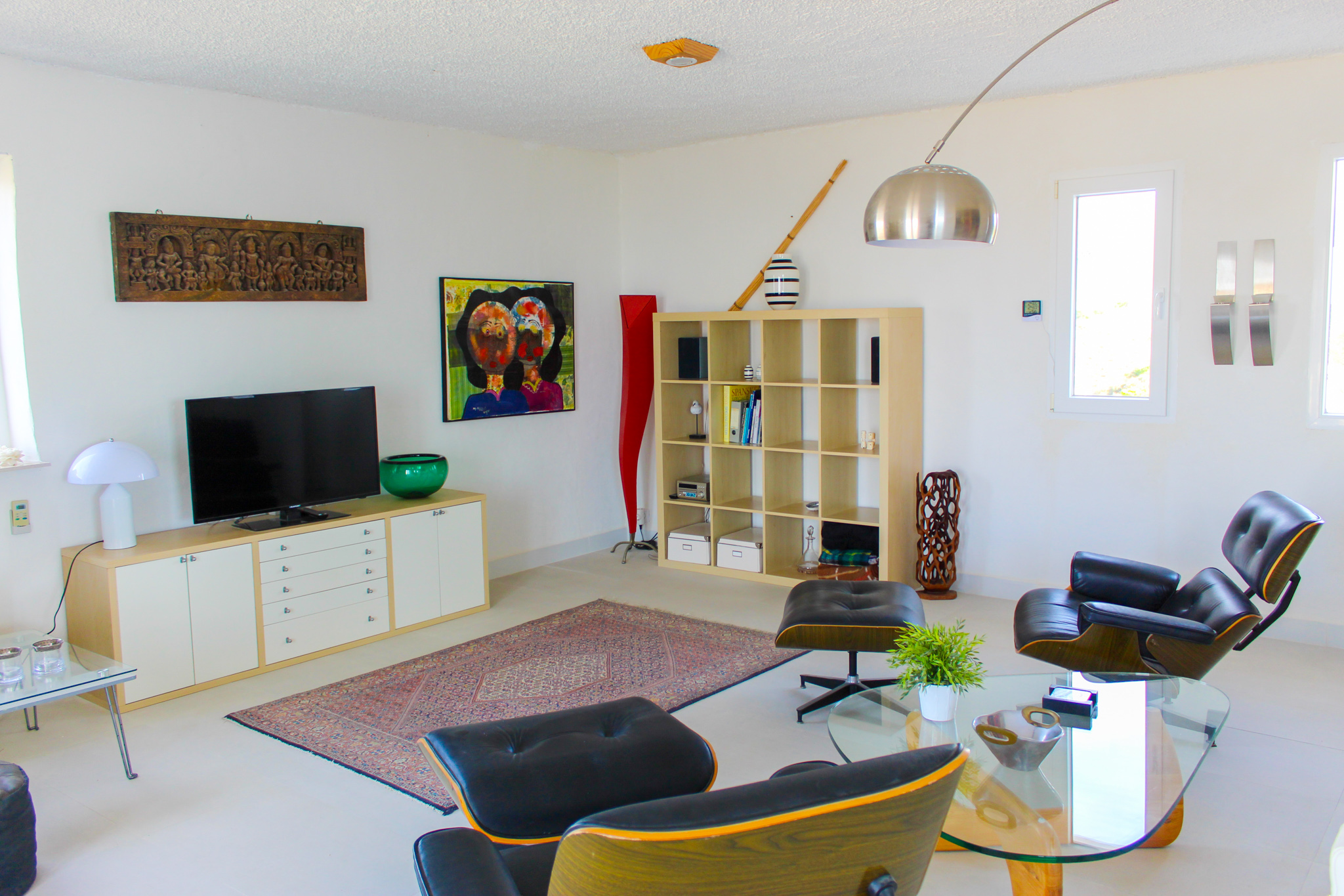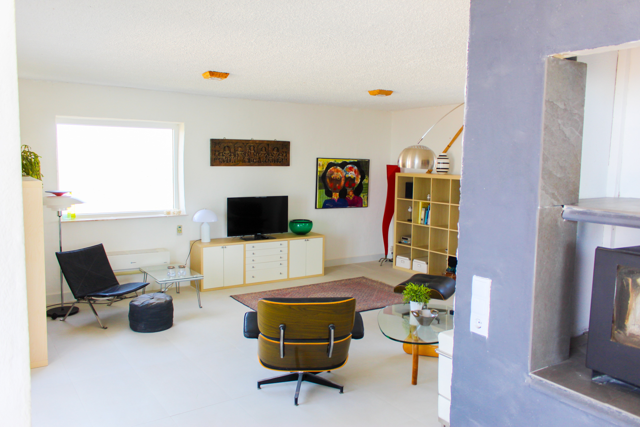 Fra boligens hovedindgang kommer man ind i en stor, lys entré med indgang til gæstebadeværelse samt opgang til et atelier som også kan benyttes som soveværelse. Fra entréen er der ligeledes adgang til køkken, spisestue og dagligstue. Fra det store, lyse køkken er der ligeledes adgang til bryggers og en stor, overdækket terrasse. I spisestuen med åben forbindelse til husets hyggelige dagligstue, er der et virkelig godt lysindfald takket være det store vinduesparti med skydedøre, som fører ud til endnu en stor terrasse med nedgang til poolområdet. Fra entréen og dagligstuen har man adgang til husets underetage, som består af 3 rummelige værelser hvoraf 2 af disse har badeværelse en-suite. Der er ligeledes en kælder med et stort opbevaringsrum, værksted og fritidsrum. Fra kælderen er der desuden adgang til det 5. værelse, som har egen indgang fra indkørslen.