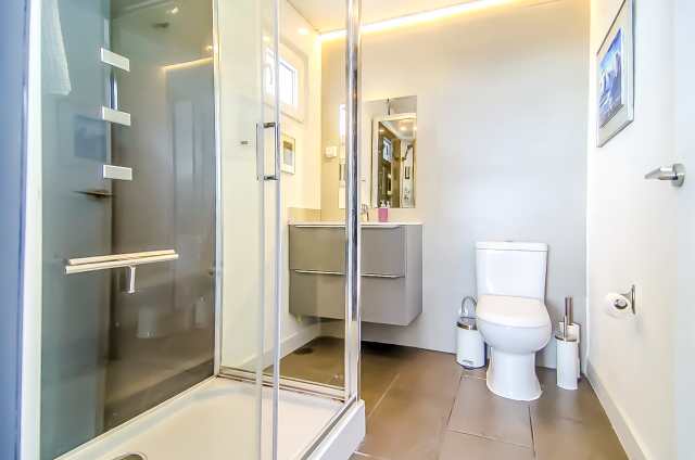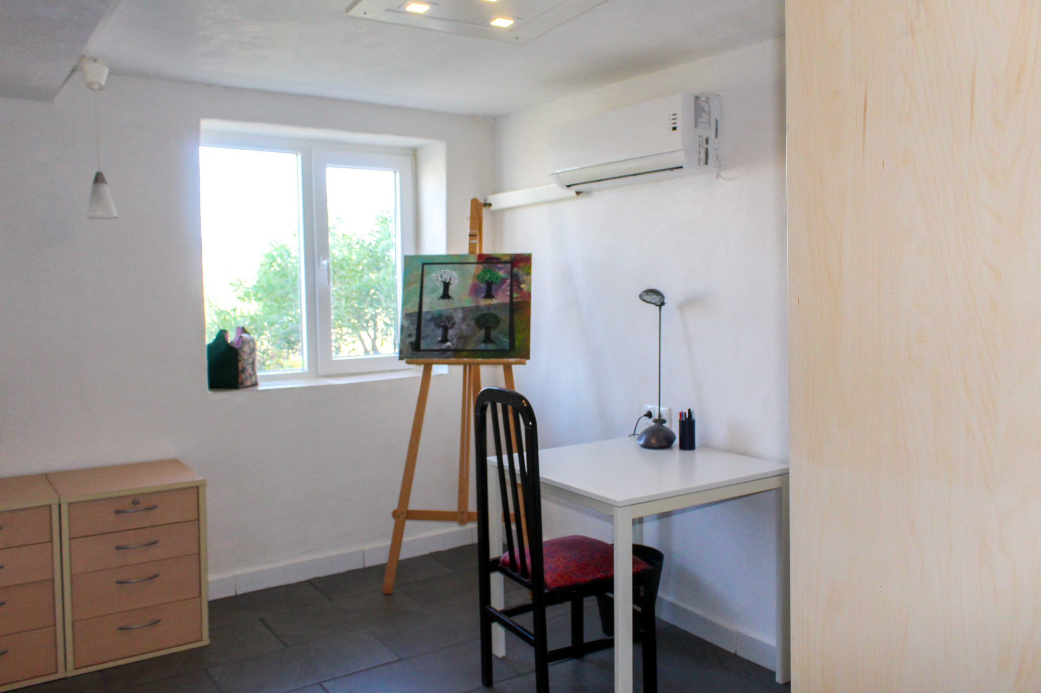Boligen består af en separat garage, 5 værelser hvoraf 2 af dem på nuværende tidspunkt fungerer som soveværelser med badeværelser en-suite og 3 ekstra værelser, som henholdsvis benyttes som atalier, kontor/opbevaring og et ’mødelokale’ som vil være oplagt at bruge som kontor, hvis man vil drive forretning herfra, da der er direkte indgang ude fra indkørslen. Der er 3 badeværelser i boligen, hvoraf 2 af disse er i forbindelse med soveværelserne. Det femte værelse, som pt. er ’mødelokalet’, kan nemt integreres med adgang fra det andet soveværelse og kan evt. benyttes som et stort walk-in-closet.