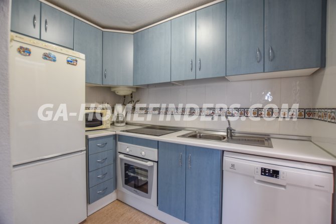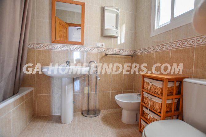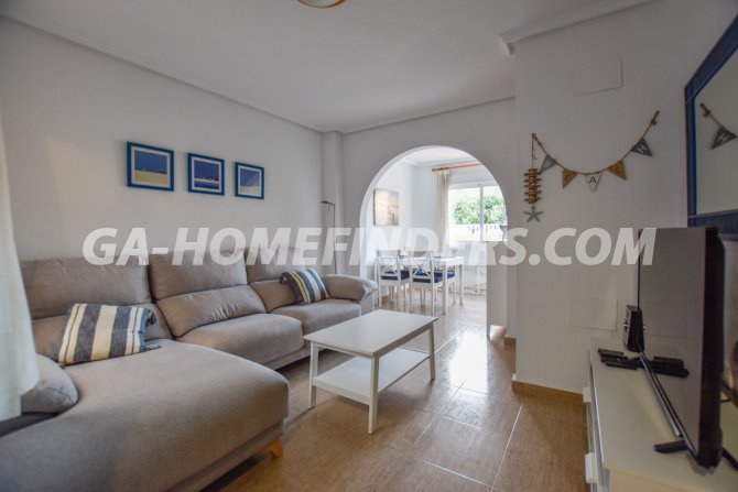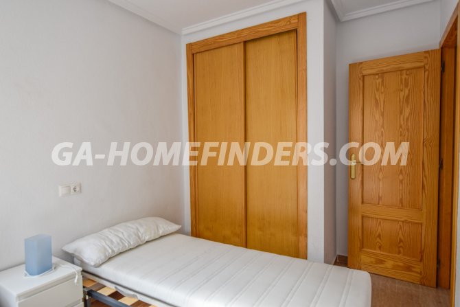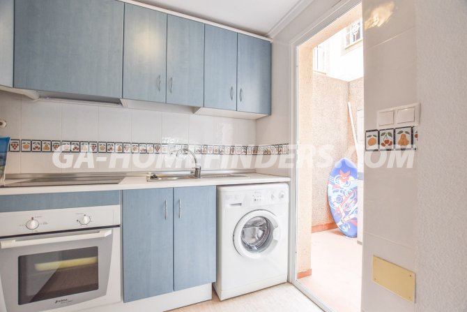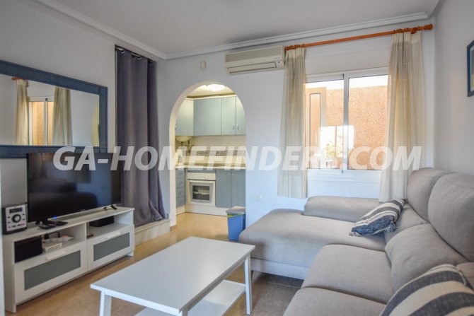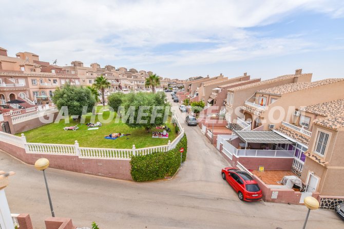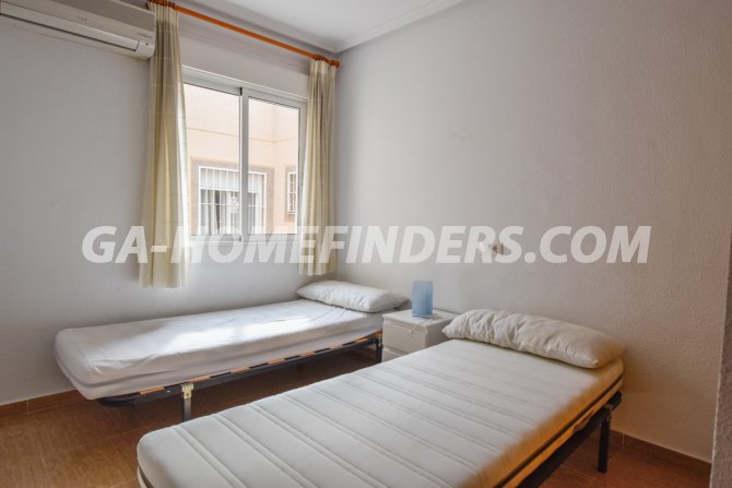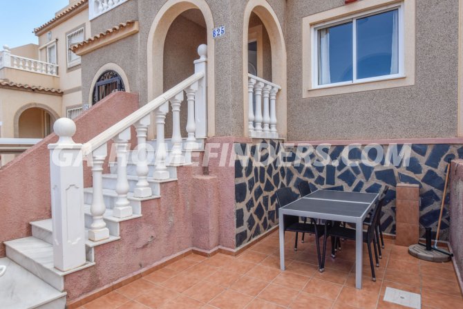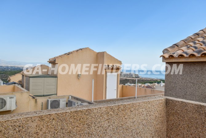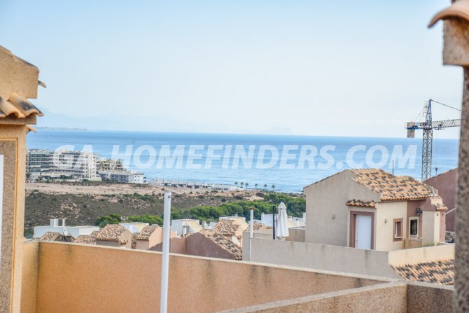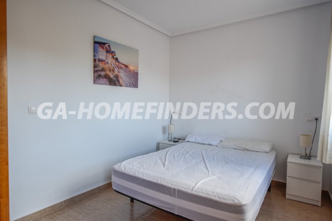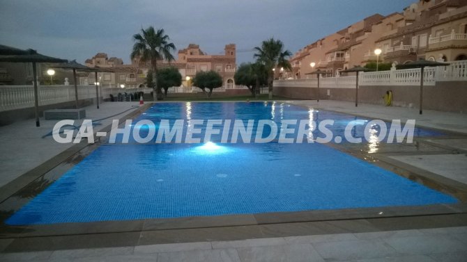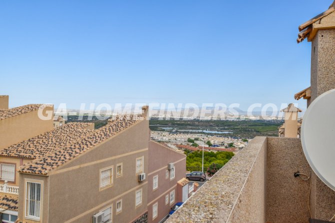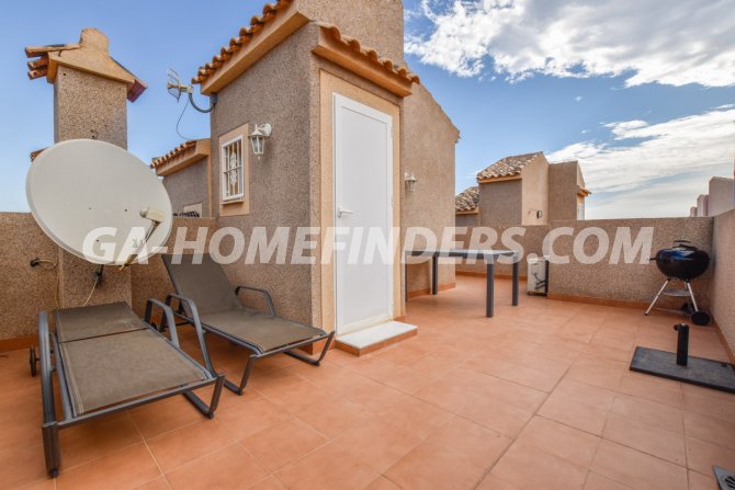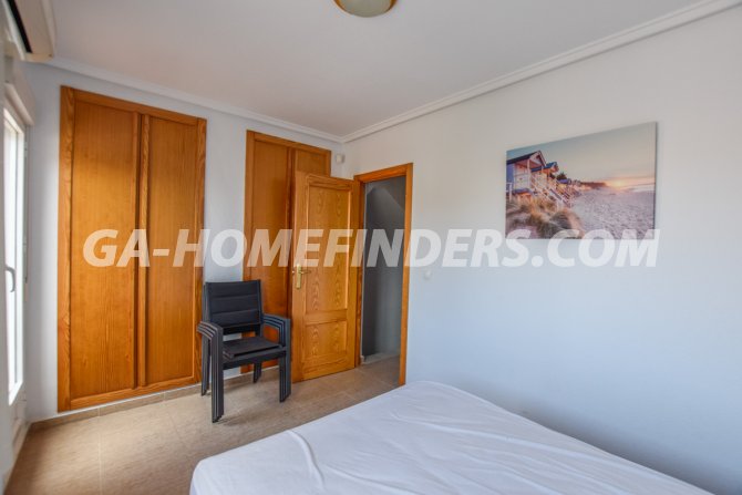 Townhouse with 2 bedrooms and 2 bathrooms, furnished and with kitchen appliances, air conditioning (hot and cold) in every room, built in wardrobes, american style open kitchen, utility room, understair lockable storage room, blinds on all the windows, solarium with views to the sea and mountains, conveniently situated in front of the communal swimming pool, near all the amenities. Located inside the urbanisation, quiet and well maintained urbanisation situated in the upper part of Gran Alacant, near the shops, restaurants, banks, local bus and train stop. Near the Carabassí beach with all its facilities, close to Alicante, Elche and Santa Pola, just a few kilometres away from Alicante/Elche airport.