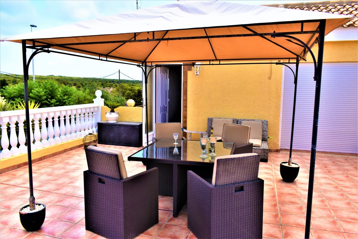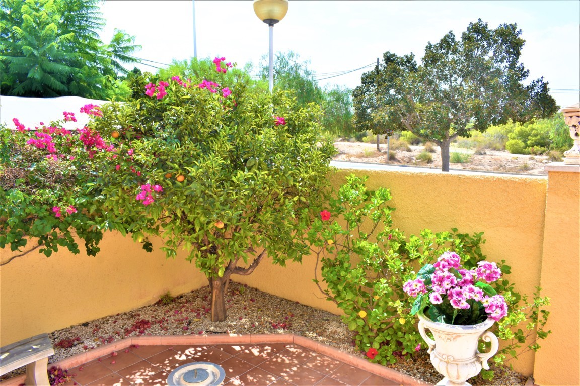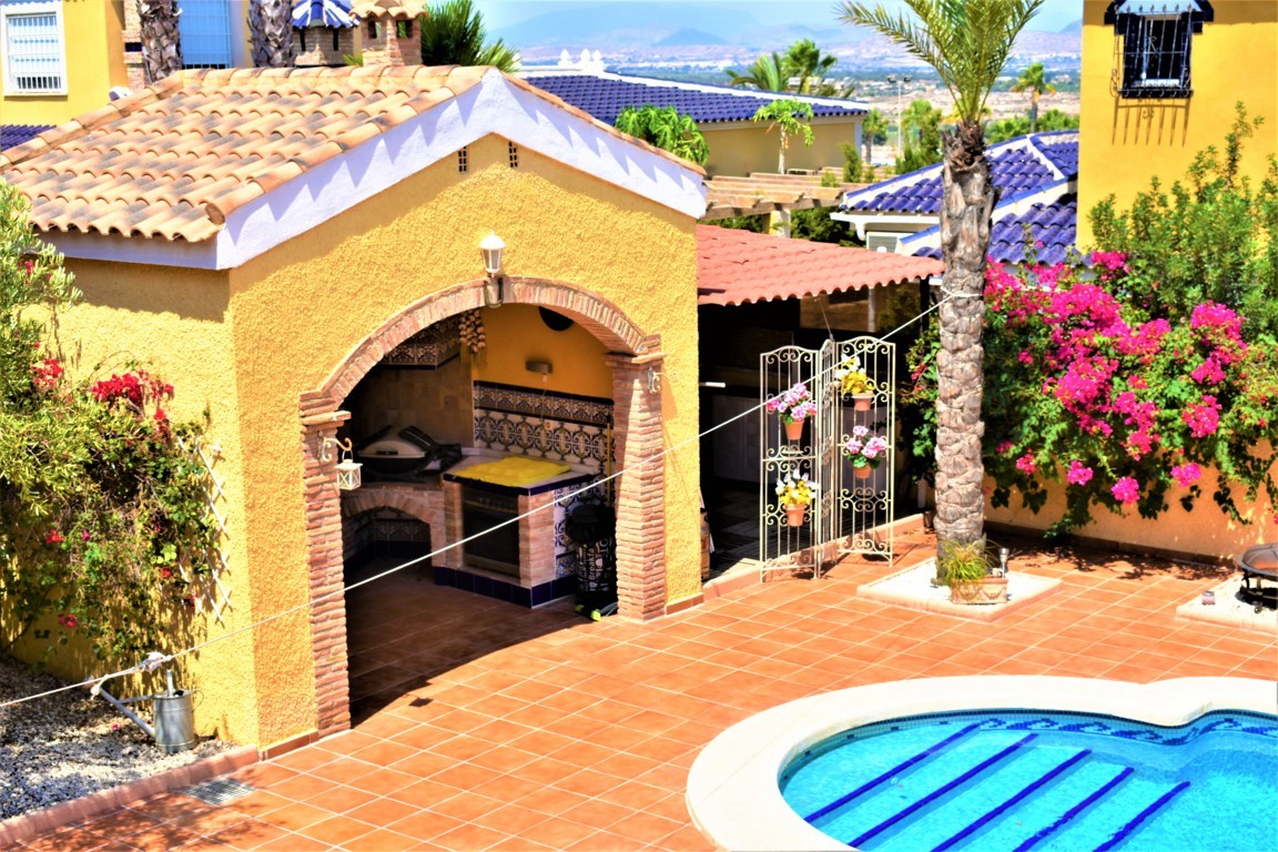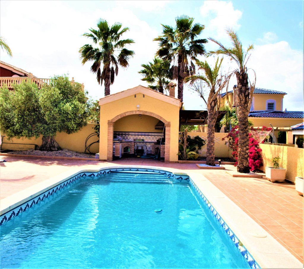 Omkring villaen er der en dejlig have, hvor det meste af arealet er belagt med klinker for at gøre det så vedligeholdelsesfrit som muligt. Havens centrum er en 10 meter lang pool, som er dyb på midten og lav i enderne. I den øvrige have er der masser af palmer, et appelsintræ, citrontræ, figentræ og et 500 år gammelt oliventræ samt en urtehave og automatisk vanding. En ting, der er værd at fremhæve ved villaens terrasseareal, er uden tvivl det store udekøkken, som består af komfur med 4 gasblus og ovn, Weber gasgrill, håndvask og køleskab – alt hvad der er brug for i et køkken. Desuden er der mur rundt om hele grunden, som nogle steder er forhøjet ekstra for mere privatliv.