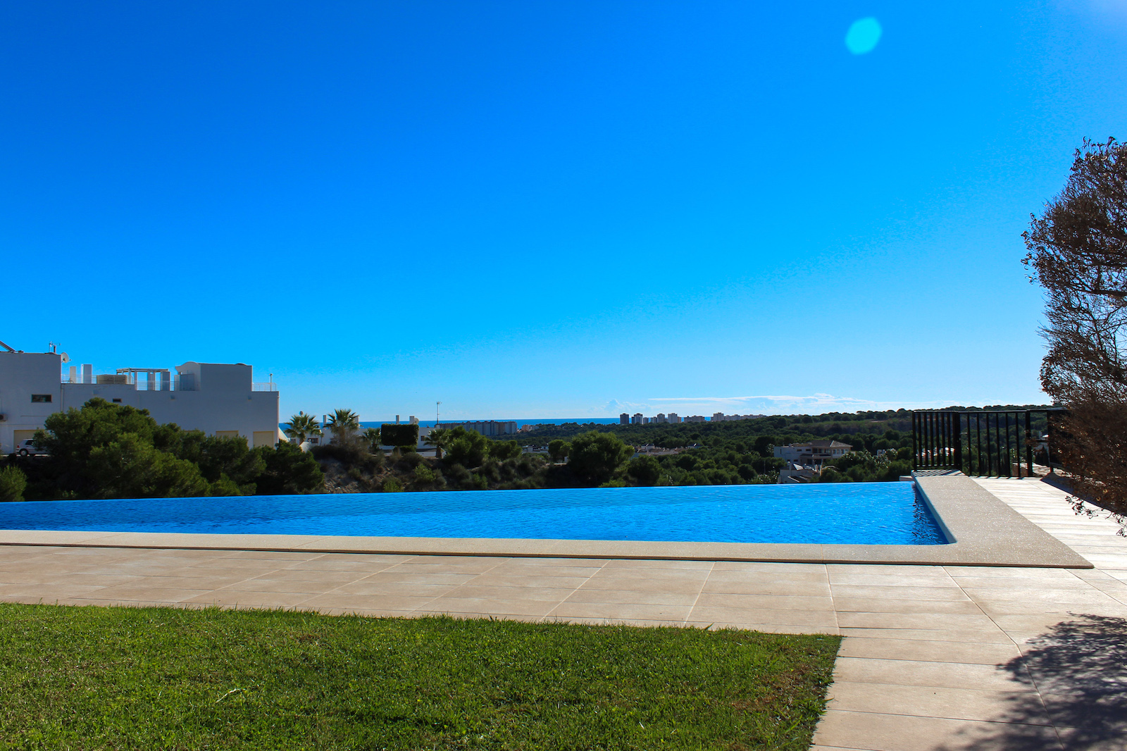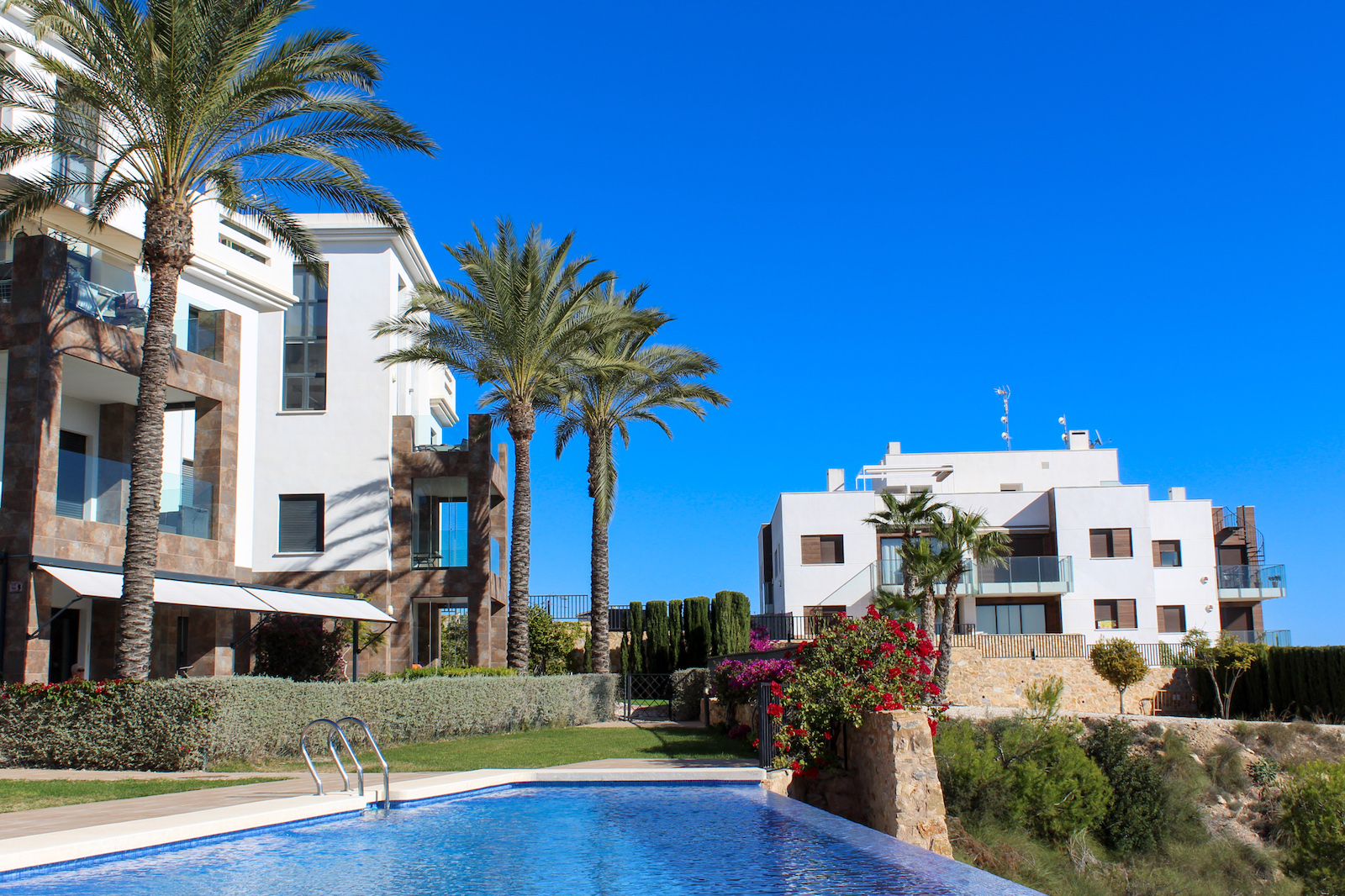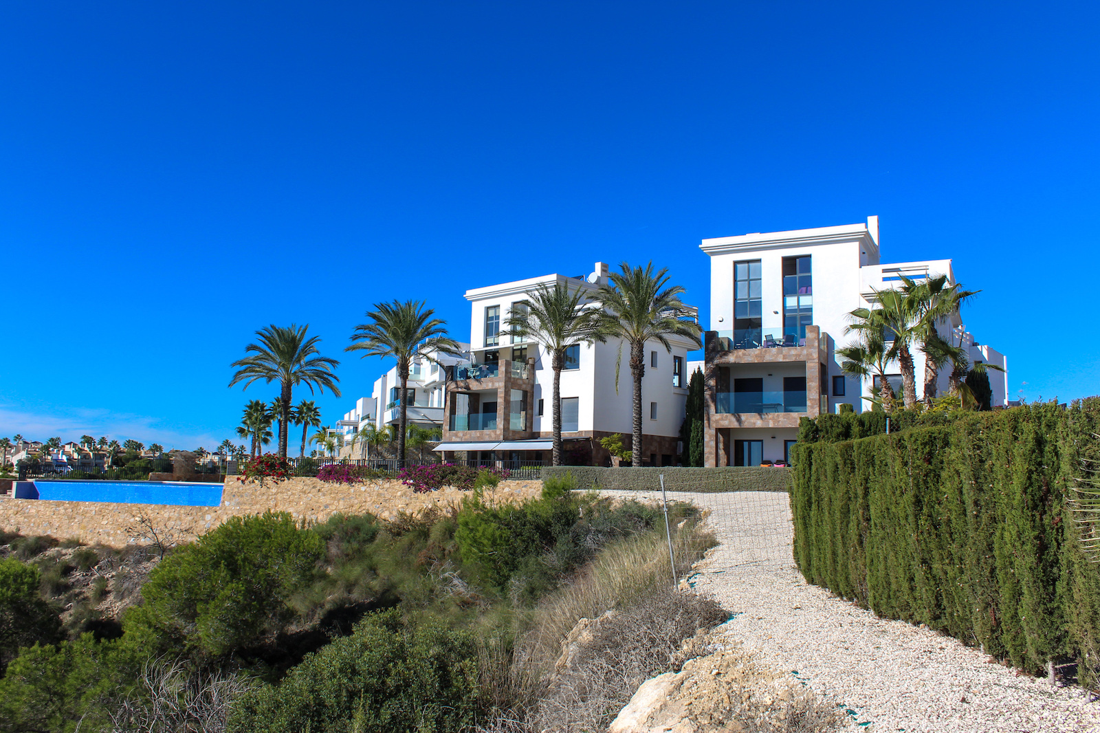 Komplekset er en del af et gated community, som består af flere komplekser, men dette specifikke kompleks udmærker sig ved, blot at bestå af 15 enheder, som er fælles om den store infinity-pool samt det grønne haveområde. Fra poolen er der en fuldstændig fantastisk og åben udsigt over lunden af pinjetræer og kysten samt Middelhavet i baggrunden. Fra boligen har man desuden gåafstand til flere restauranter og barer; der er blot 10 min. gang til restauranten på Las Ramblas Golf, samt 20 min. gang til La Fuente, som er et ’center’ med mange forskellige restauranter, barer og caféer. I samme område ligger der en Aldi og en Mercadona, så der er gode indkøbsmuligheder. Blot 10 minutters kørsel fra boligen, finder man desuden en perlerække af gode strande.