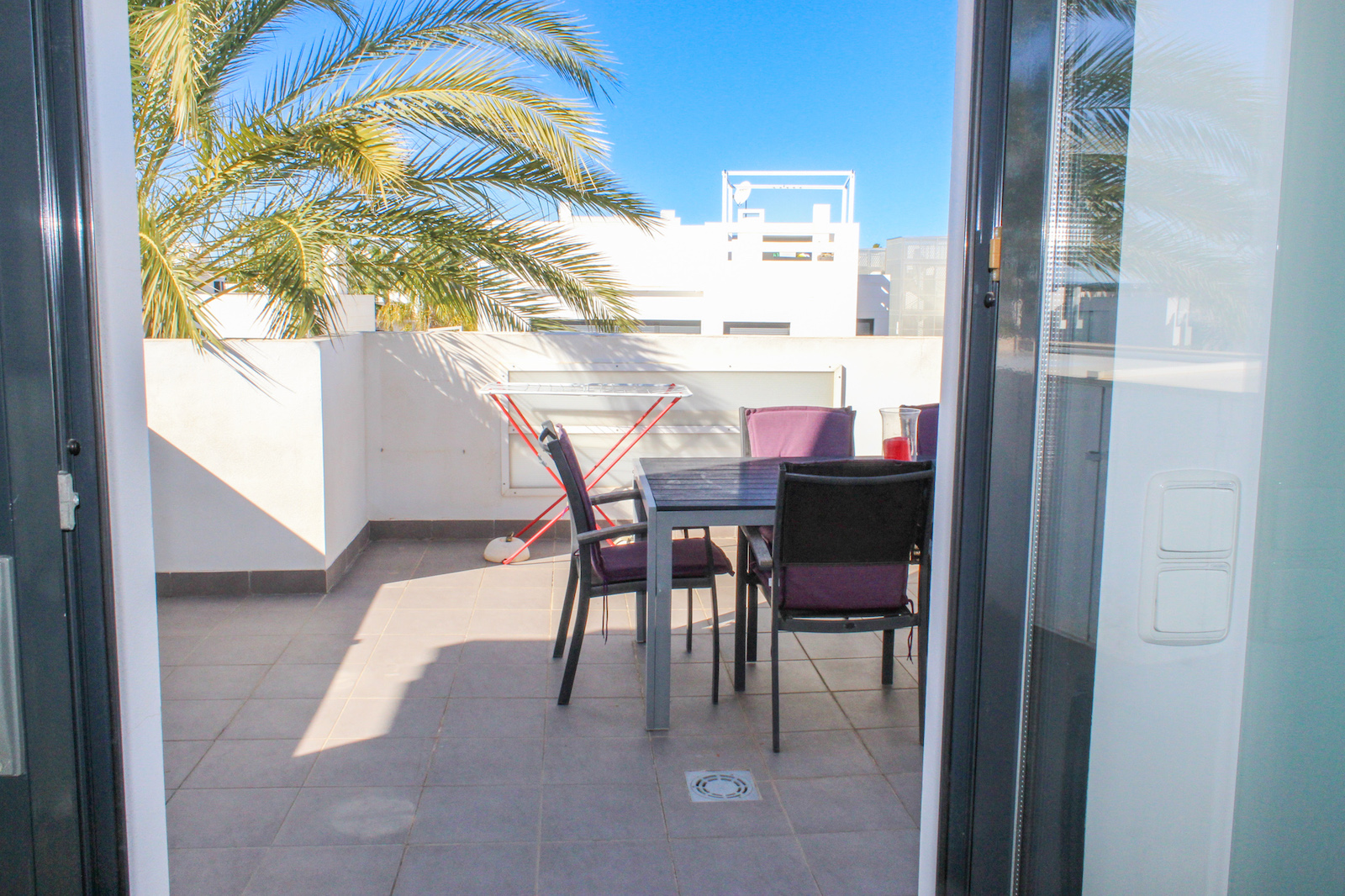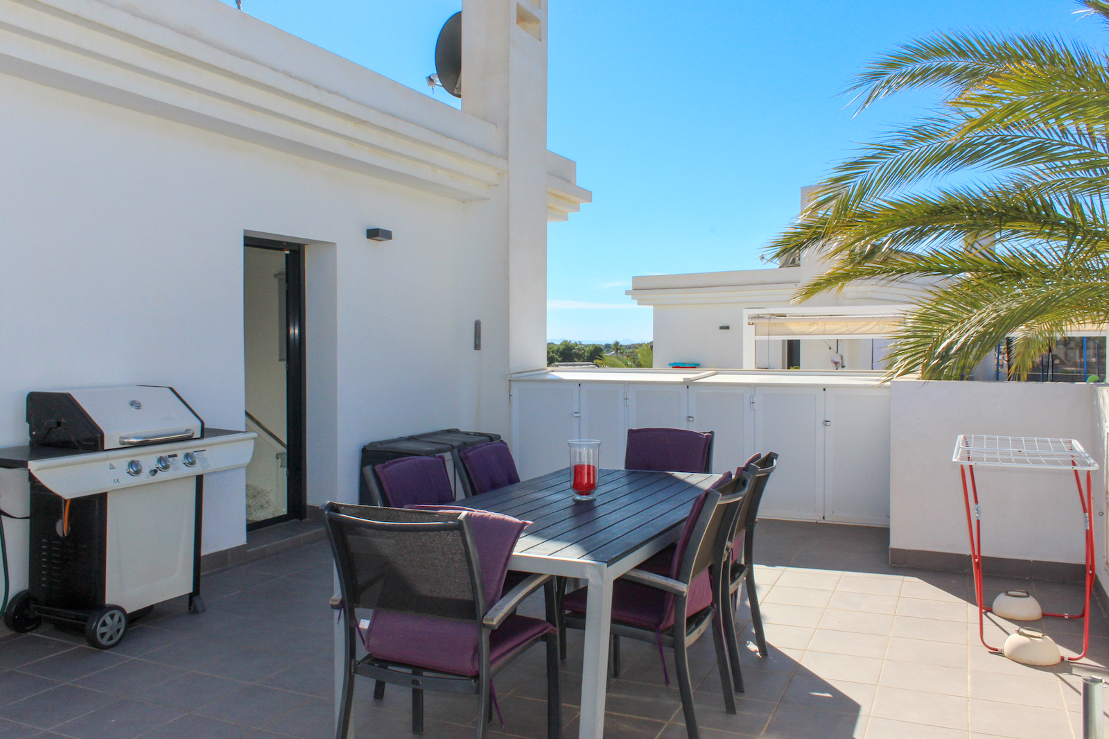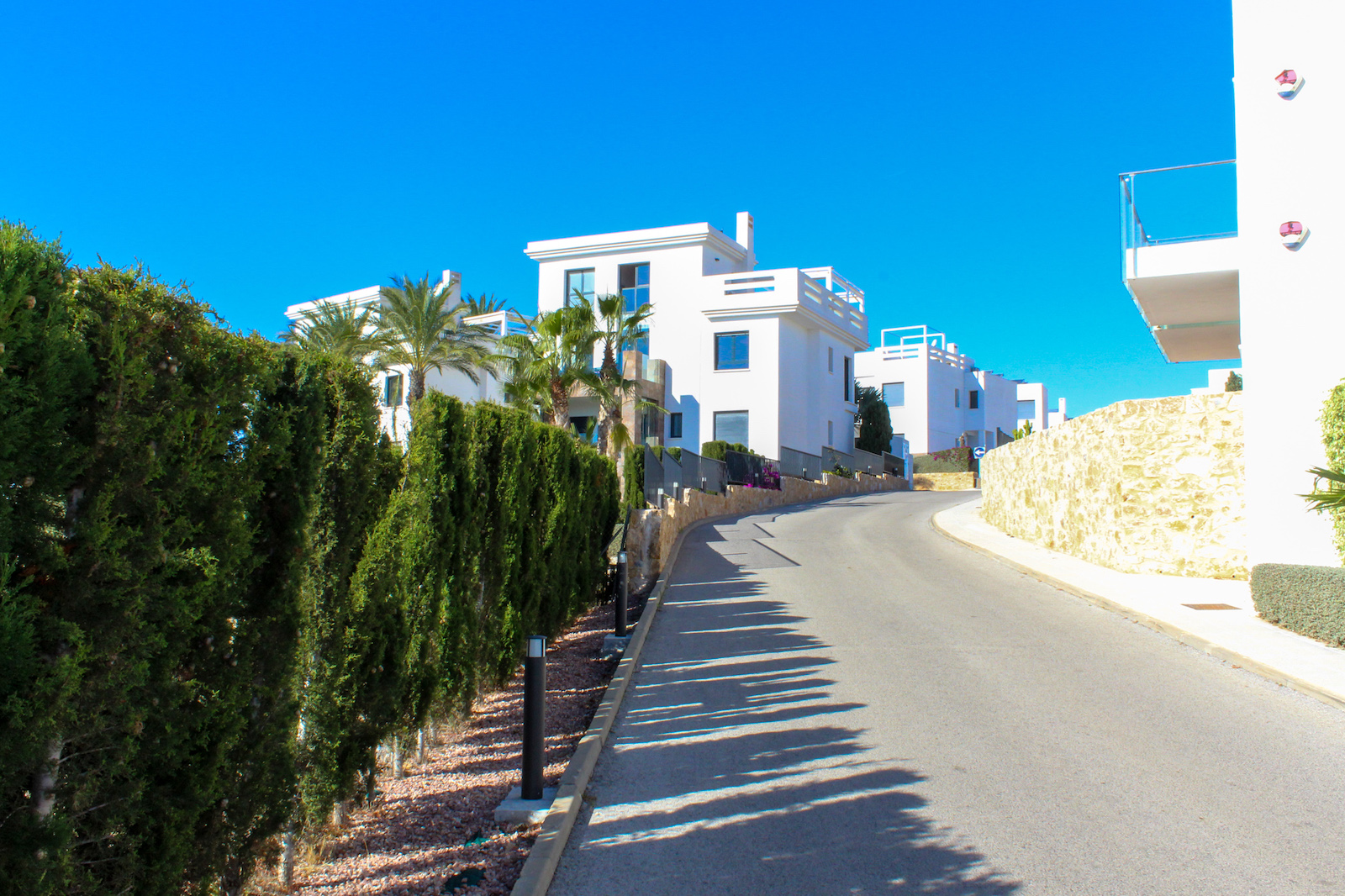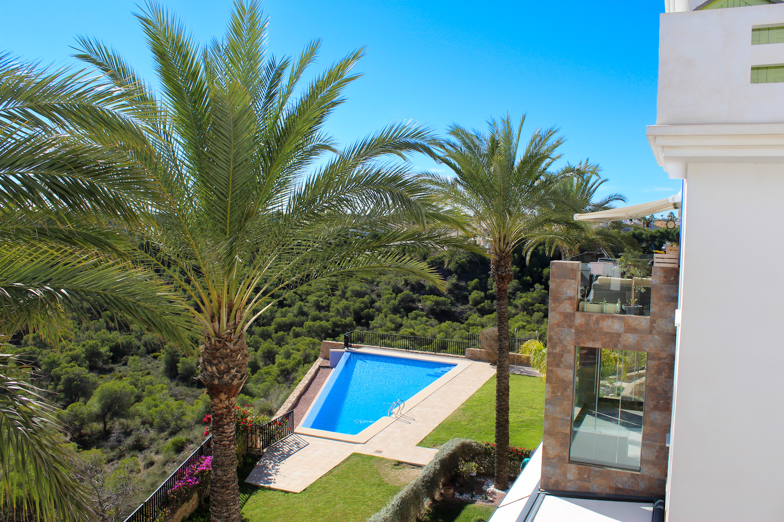 Komplekset er en del af et gated community, som består af flere komplekser, men dette specifikke kompleks udmærker sig ved, blot at bestå af 15 enheder, som er fælles om den store infinity-pool samt det grønne haveområde. Fra poolen er der en fuldstændig fantastisk og åben udsigt over lunden af pinjetræer og kysten samt Middelhavet i baggrunden. Fra boligen har man desuden gåafstand til flere restauranter og barer; der er blot 10 min. gang til restauranten på Las Ramblas Golf, samt 20 min. gang til La Fuente, som er et ’center’ med mange forskellige restauranter, barer og caféer. I samme område ligger der en Aldi og en Mercadona, så der er gode indkøbsmuligheder. Blot 10 minutters kørsel fra boligen, finder man desuden en perlerække af gode strande.