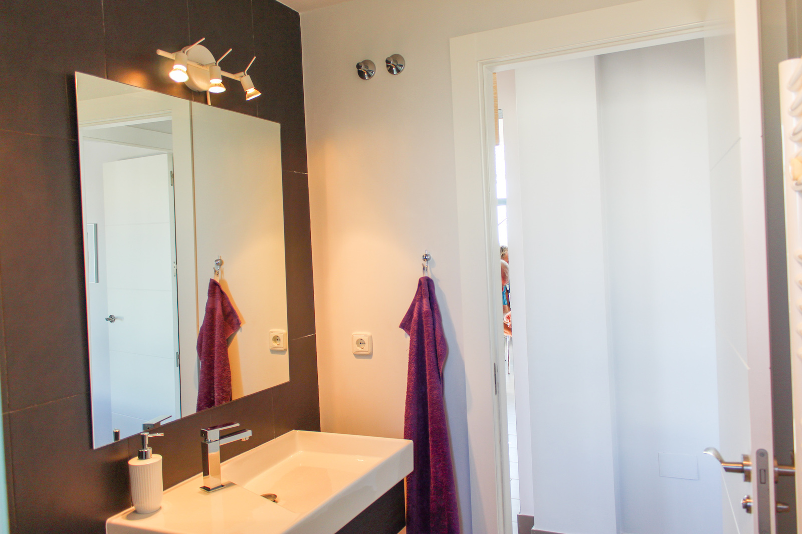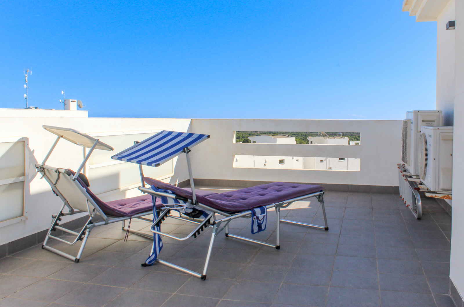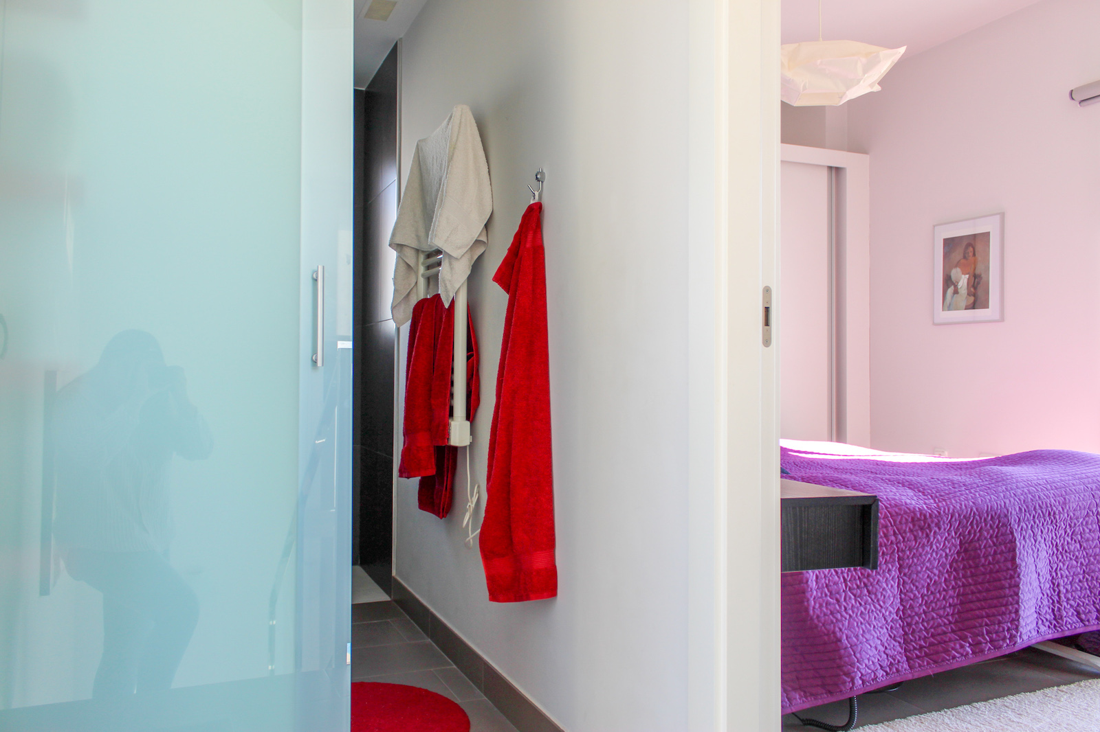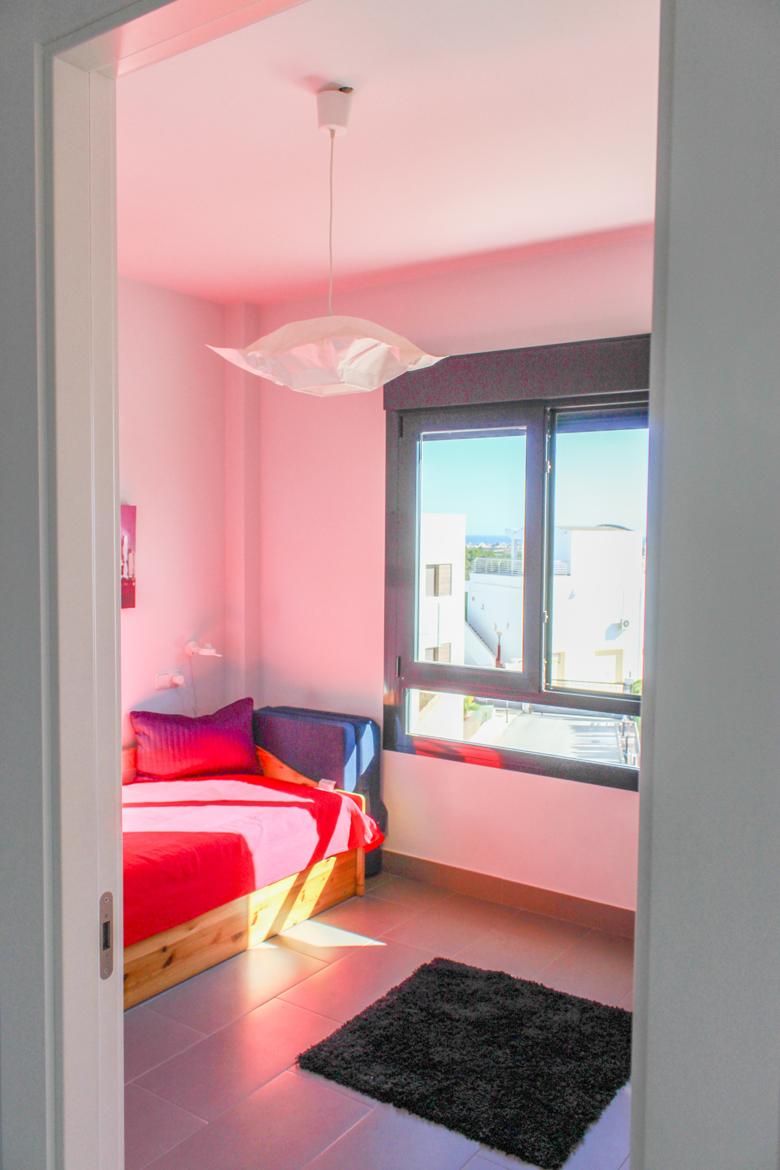 På førstesalen finder man boligens master bedroom, hvorfra man ligeledes har en fantastisk udsigt over Middelhavet, samt et badeværelse og den 69 m2 store tagterrasse. På tagterrassen har sælger lavet opbevaringsrum langs hele den ene side, hvor der også er installeret køleskab. De har ligeledes installeret pergola, som giver mulighed for at lukke såvel siderne som toppen, når man trænger til skygge fra den bagende sol – eller læ for vinden. Dette gør at tagterrassen kan bruges året rundt. Der er aircondition i hele boligen og den sælges møbleret og er derfor fuldstændig indflytningsklar!