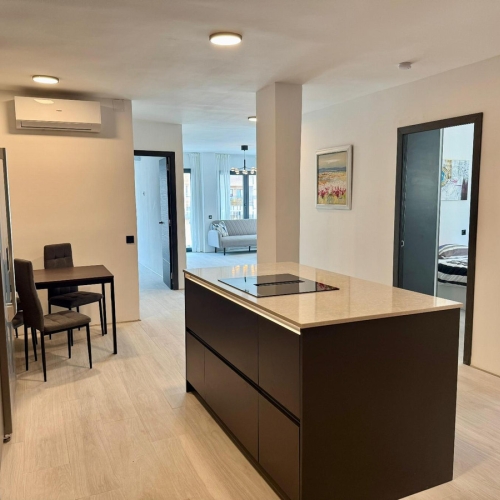 The apartment is equipped with central air condition, underfloor heating in both bathrooms and living rooms, ventilation rails in all windows and osmosis filter in the kitchen. It is sold completely furnished.