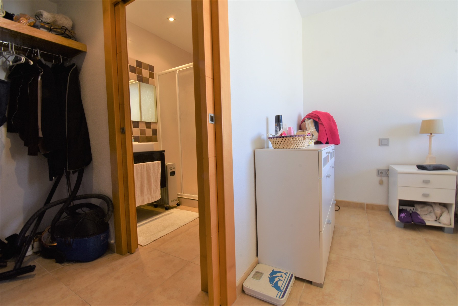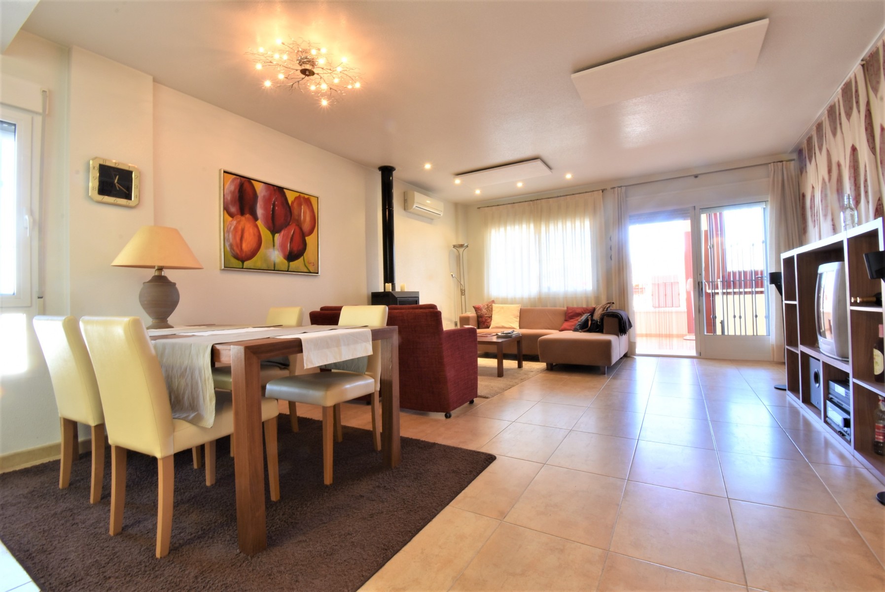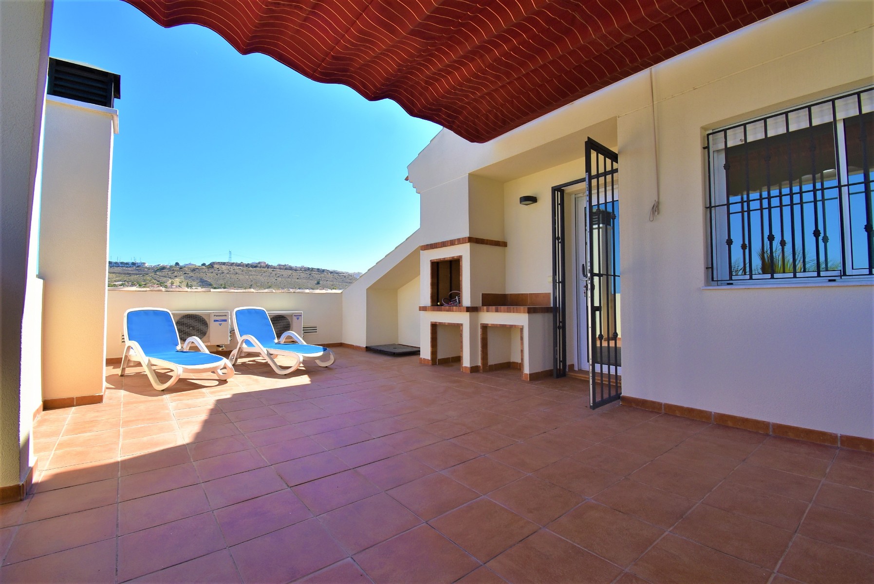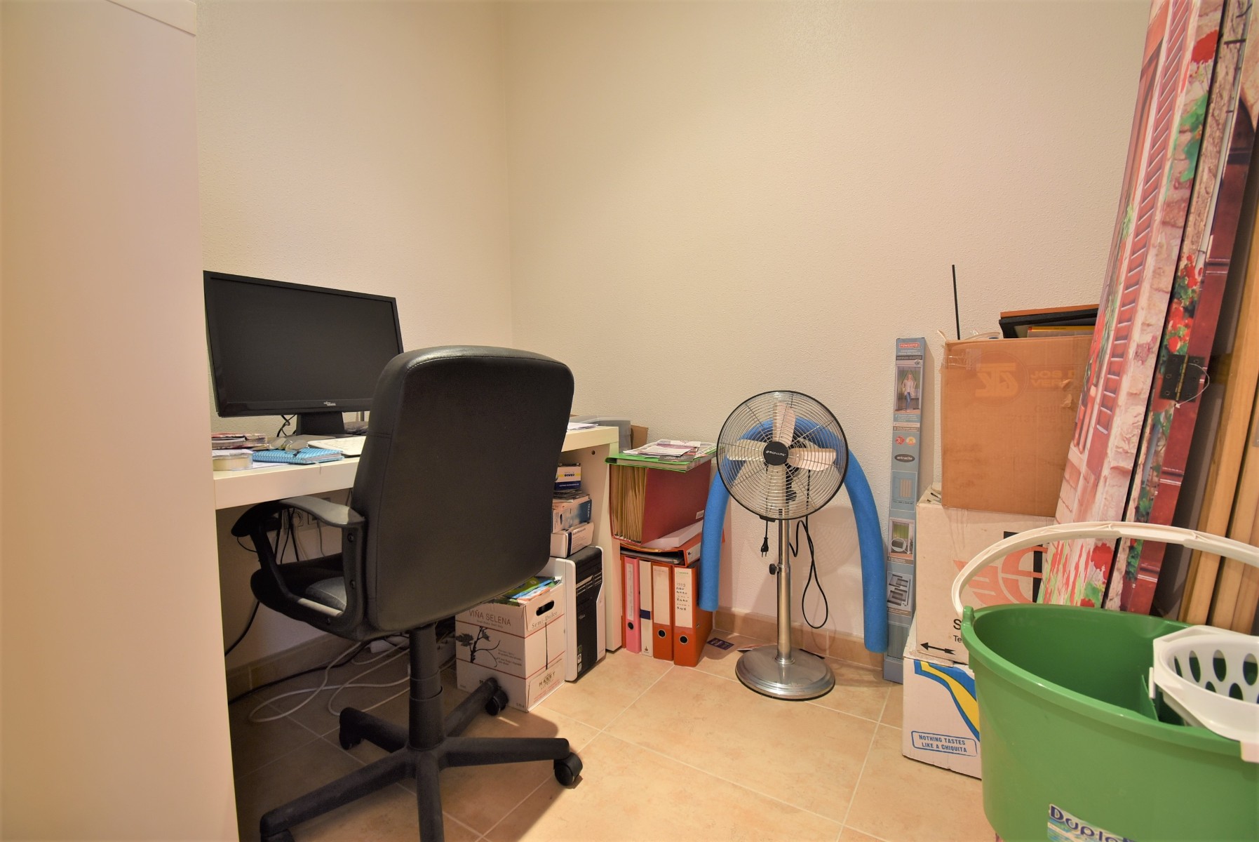 På første sal har du et anden stort åbent køkken alrum og stue med indbygget pejs, et fuldt udstyret, moderne amerikansk køkken, kontor og soveværelse med en-suite brusebad og walk-in garderobe. Fra stuen kan du få adgang til den store balkon, hvor du kan nyde den fantastiske udsigt over parken og Vega Baja. Der er solafskærmninger, der giver skygge for solen og skærmer mod vinden.