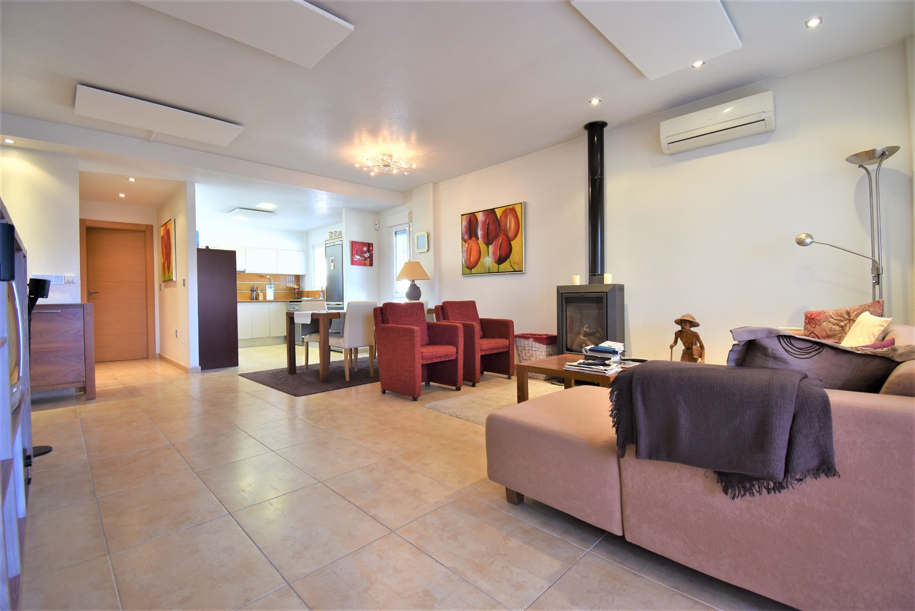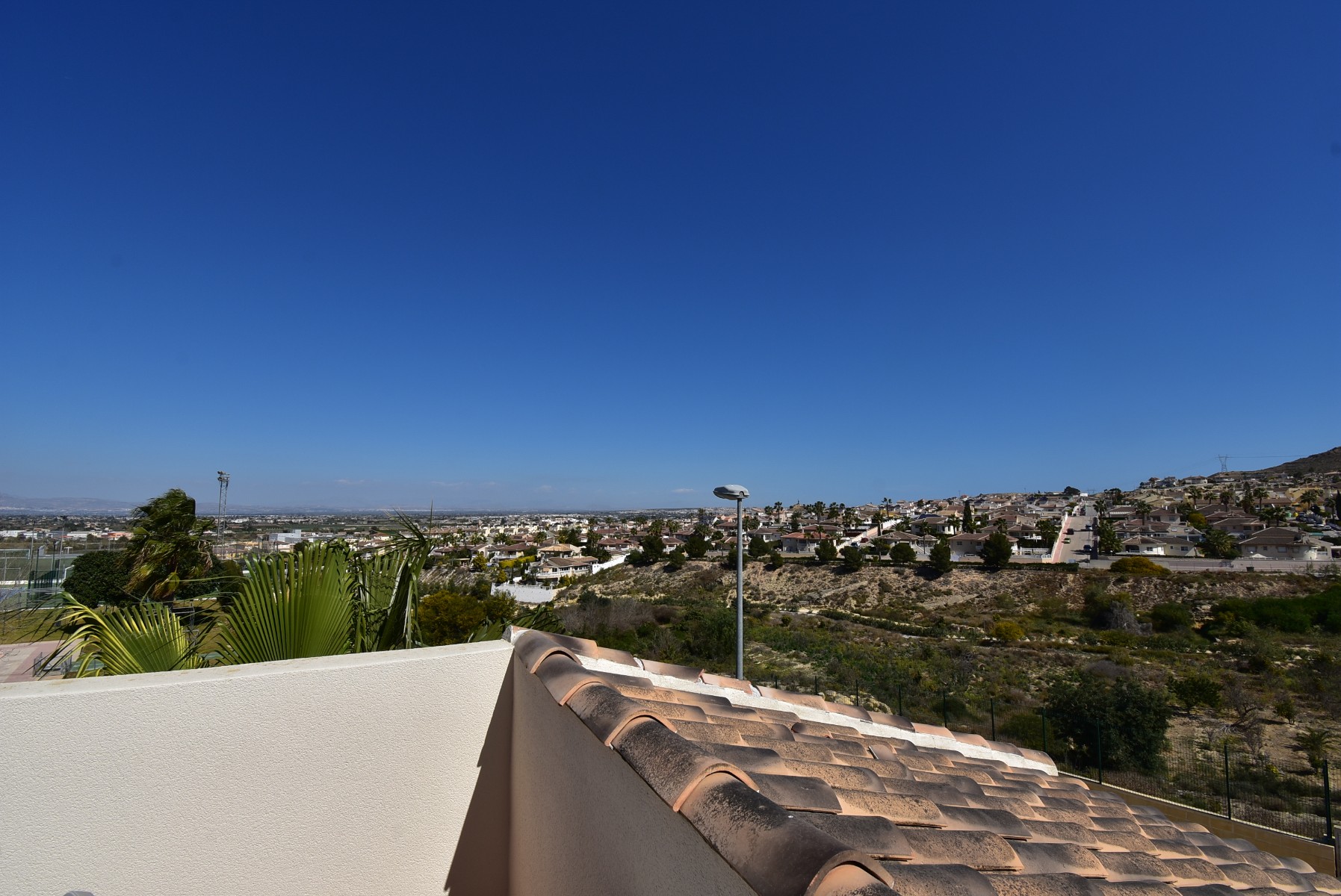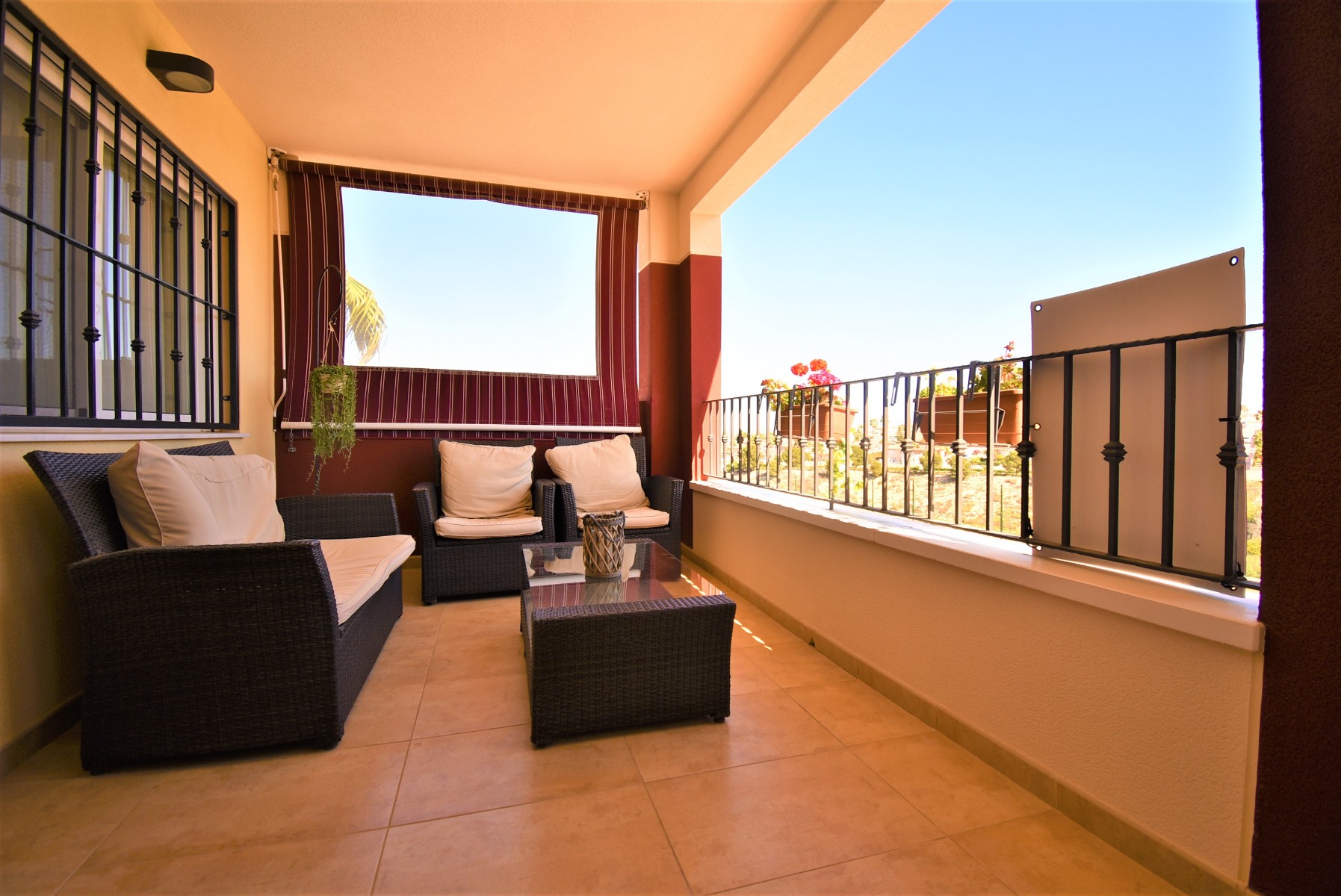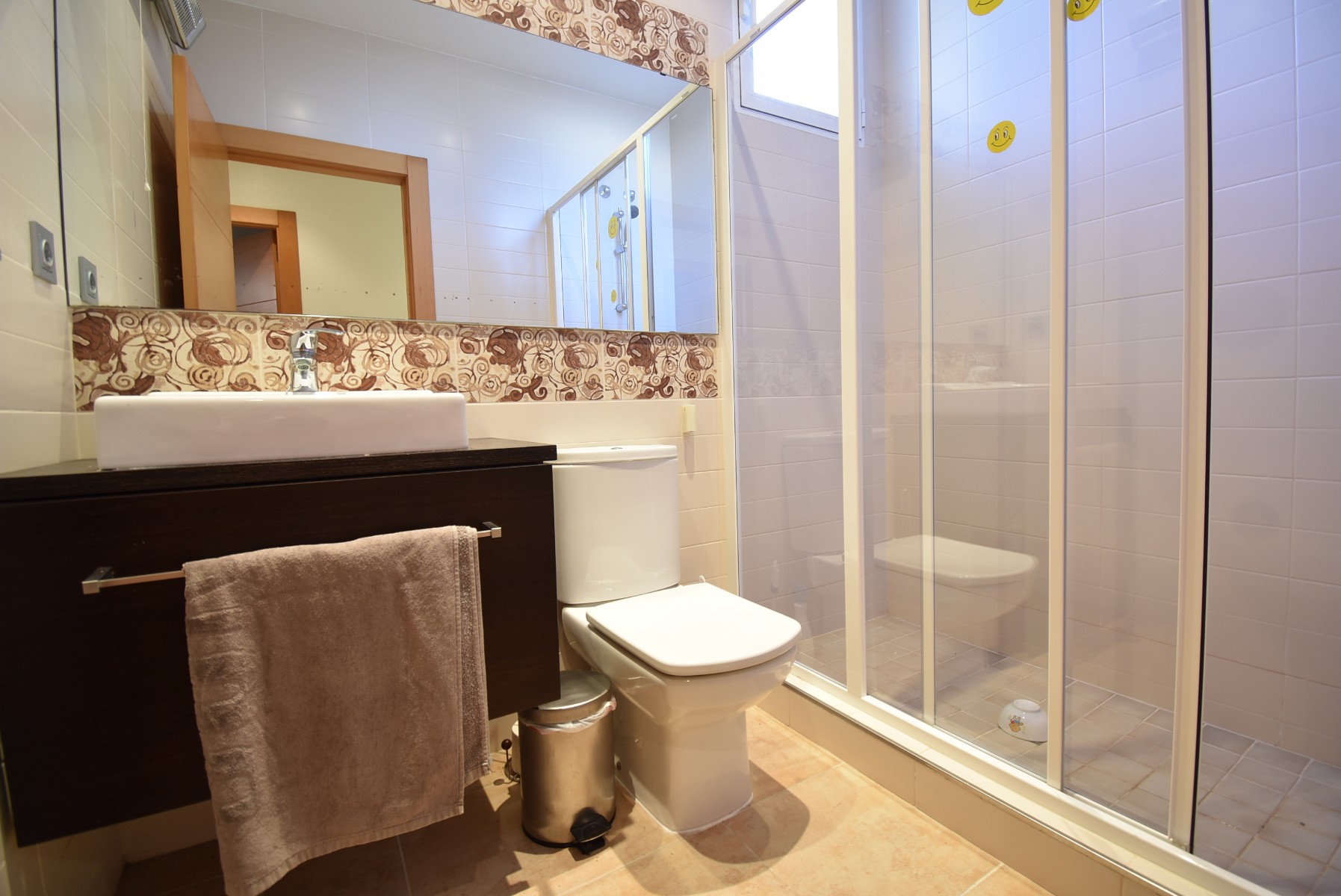 På første sal har du et anden stort åbent køkken alrum og stue med indbygget pejs, et fuldt udstyret, moderne amerikansk køkken, kontor og soveværelse med en-suite brusebad og walk-in garderobe. Fra stuen kan du få adgang til den store balkon, hvor du kan nyde den fantastiske udsigt over parken og Vega Baja. Der er solafskærmninger, der giver skygge for solen og skærmer mod vinden.