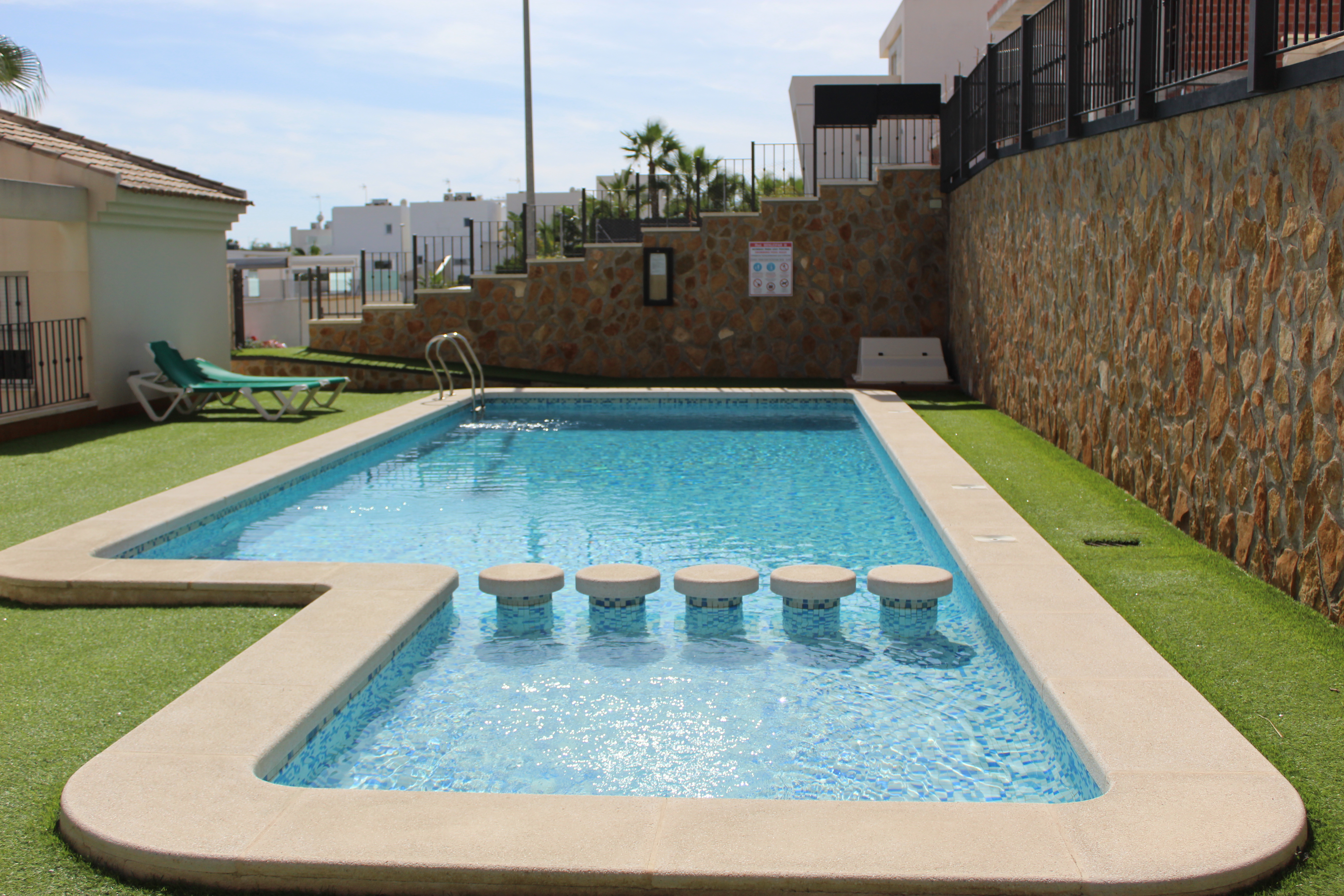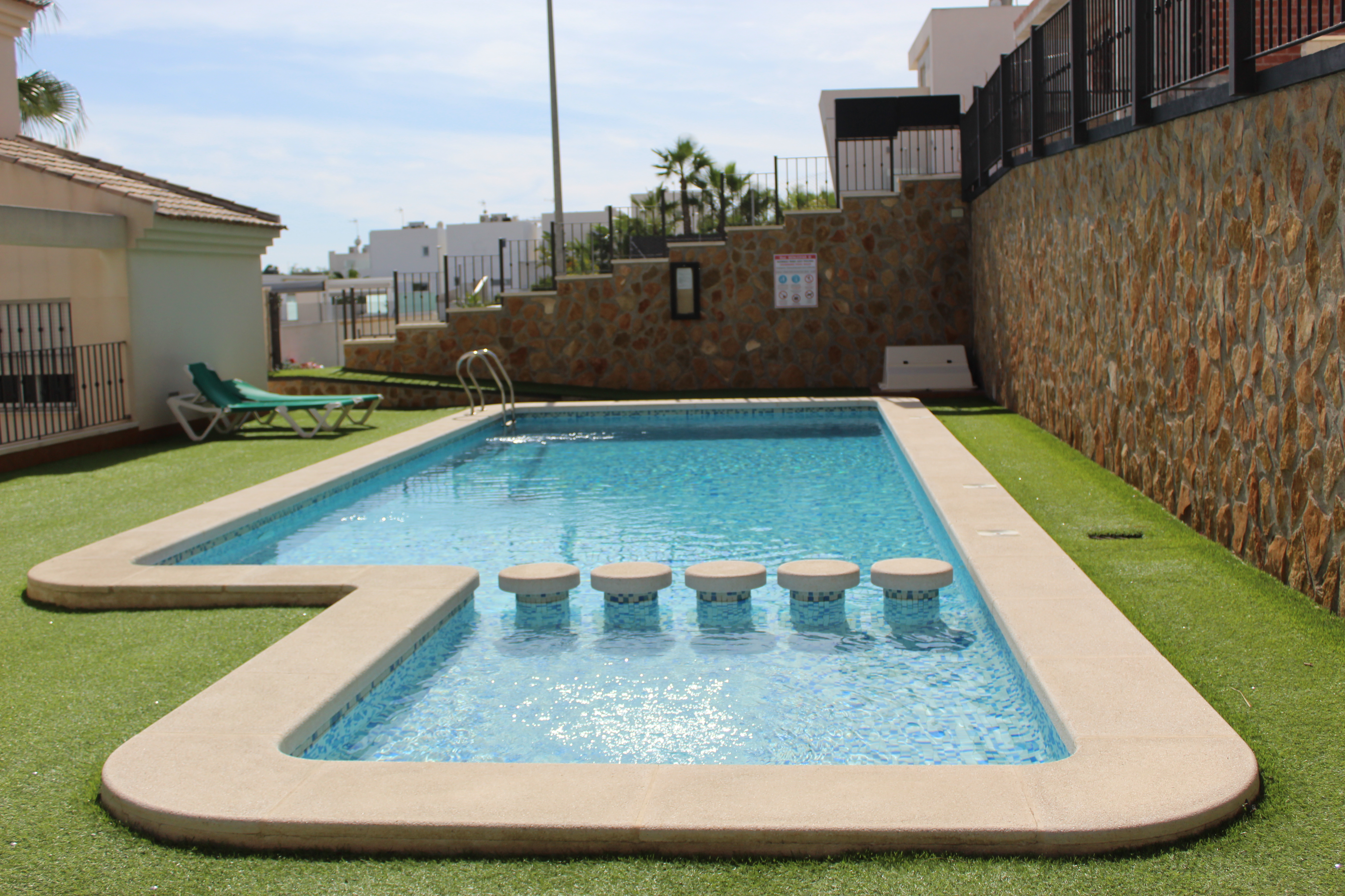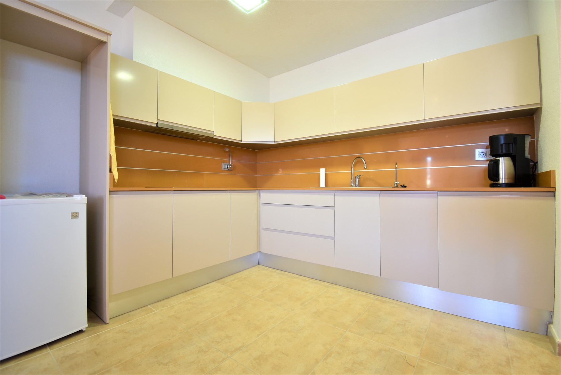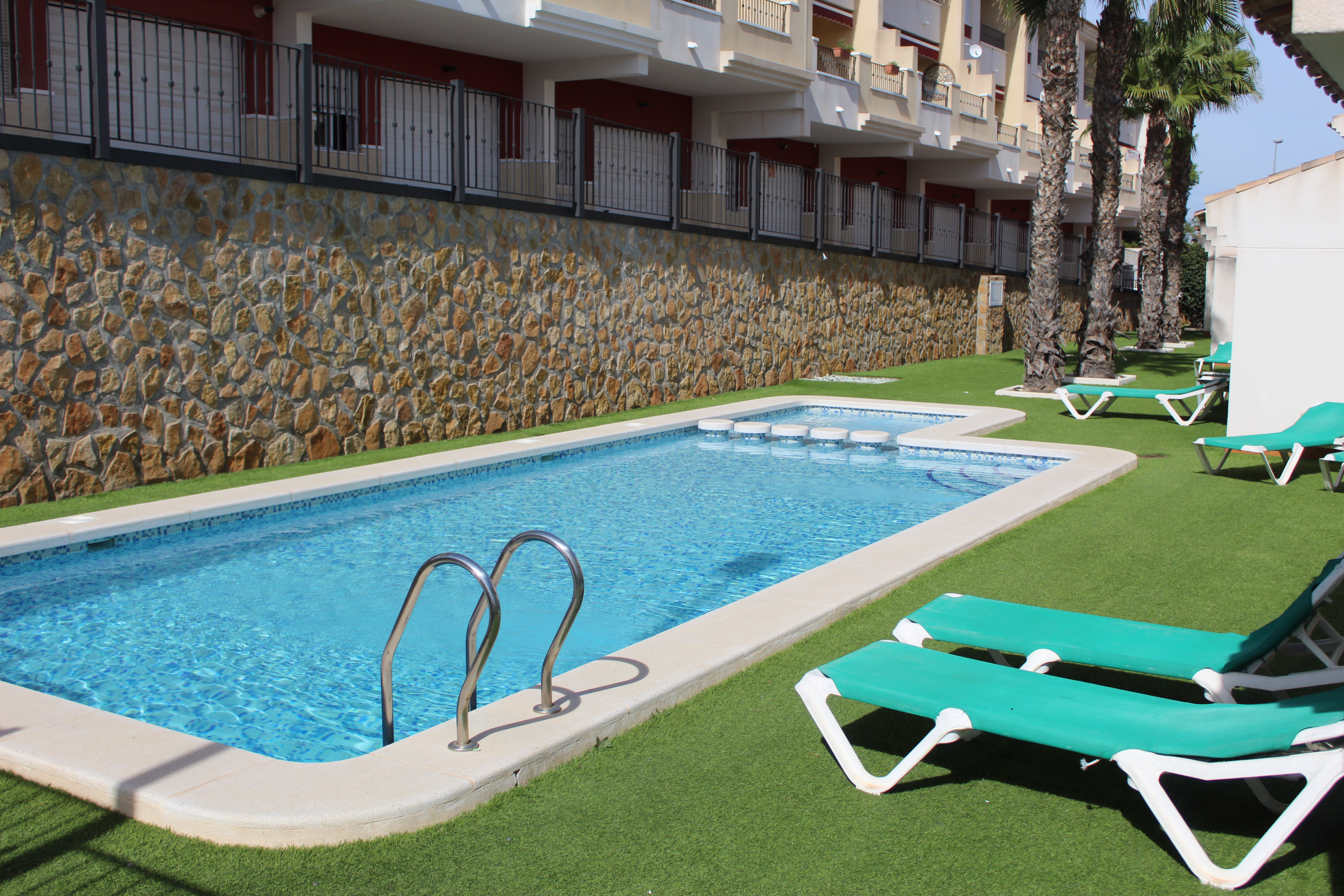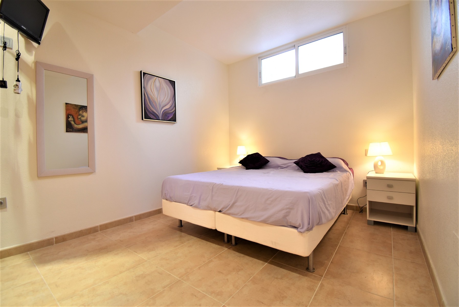 I stueetagen på ejendommen finder du den udvendige have, der enten kan bruges som parkering eller som en ekstra terrasse, haven forsætter omkring ejendommen, hvor du finder citrus- og palmetræer. Når du kommer ind i ejendommen, har du et stort åbent køkken alrum med et fuldt udstyret amerikansk køkken, komplet med moderne apparater og finish, to store soveværelser med dobbeltsenge og et badeværelse.