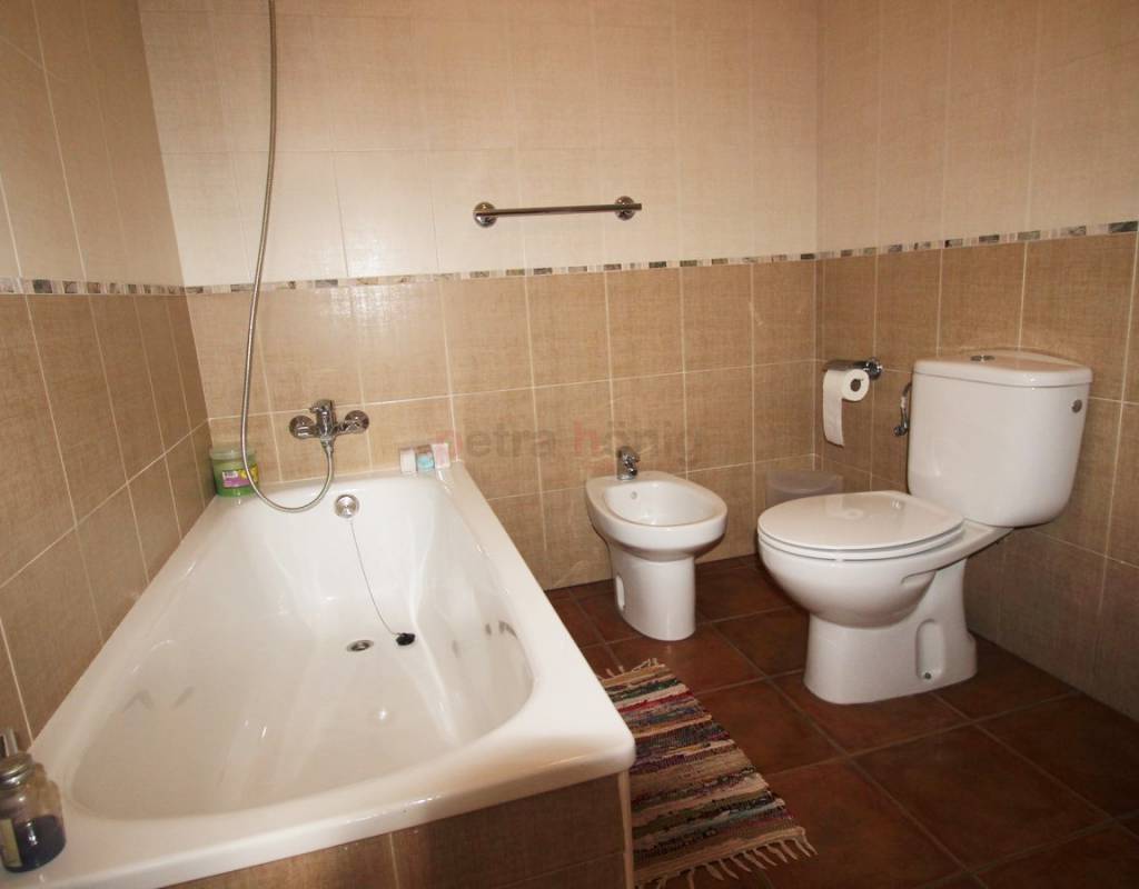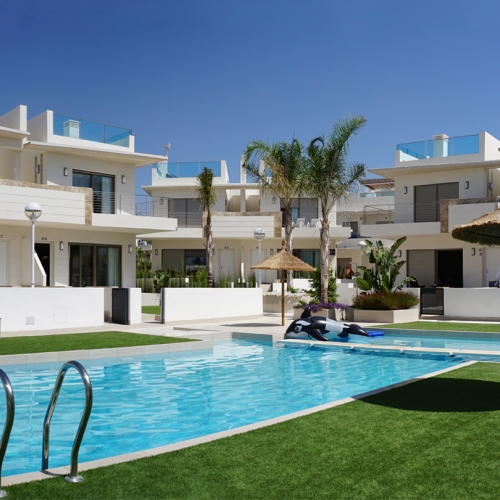 This nice south facing townhouse is situated in Ciudad Quesada and has a living area of 101 sqm. The house consists of three bedrooms, two bathrooms, a toilet, large living room with lounge area, spacious and fully furnished kitchen, an utility room and a storage room.The house has air conditioning and fitted wardrobes. OUTDOOR AREA The townhouse is located in a complex with 16 houses. Here you will find a large swimming pool which can only be used by the residents. The townhouse has a 142 sqm plot, with an area for parking, nice seating areas and a lovely balcony on the first floor with fantastic views over the surrounding area. AREA The property is located in Ciudad Quesada, a charming place on the Costa Blanca. Here you will find an 18-hole golf course, tennis courts, spa, water park, bowling, mini golf, shops, bars, restaurants and much more. The beautiful beaches of Guardamar and La Mata is just a 10 minute drive from Quesada. Torrevieja, a cozy city with a vibrant city life, is only a 10 minute drive away. The airports in Alicante and San Javier / Murcia are about 40 minutes away.