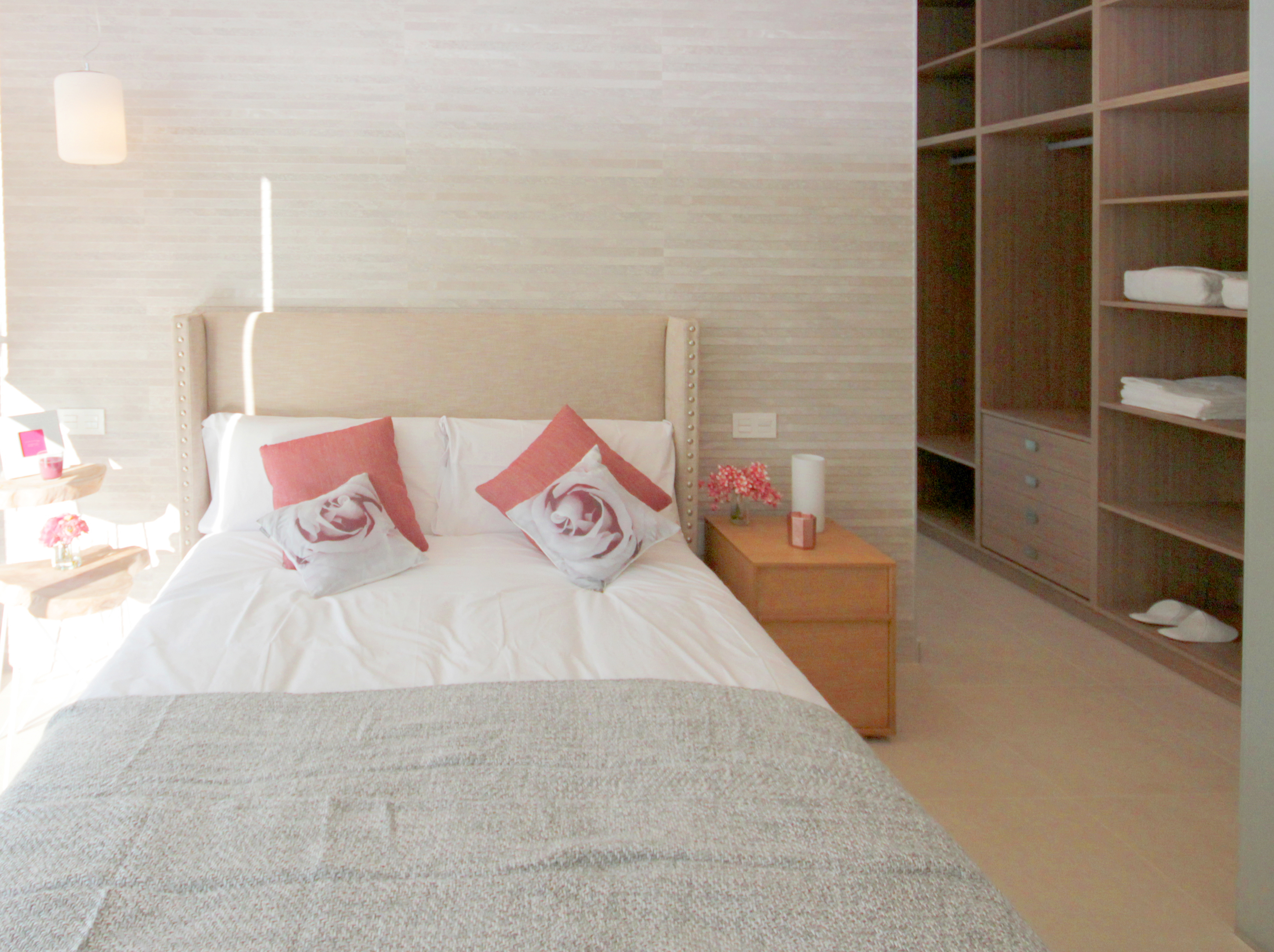 Det luksuriøse soveværelse har ikke kun en stor walk-in garderobe, men også et unikt eget badeværelse med gulvvarme.