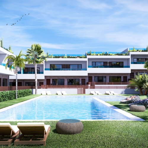 Rækkehus med 2 soveværelser og fælles swimmingpool.