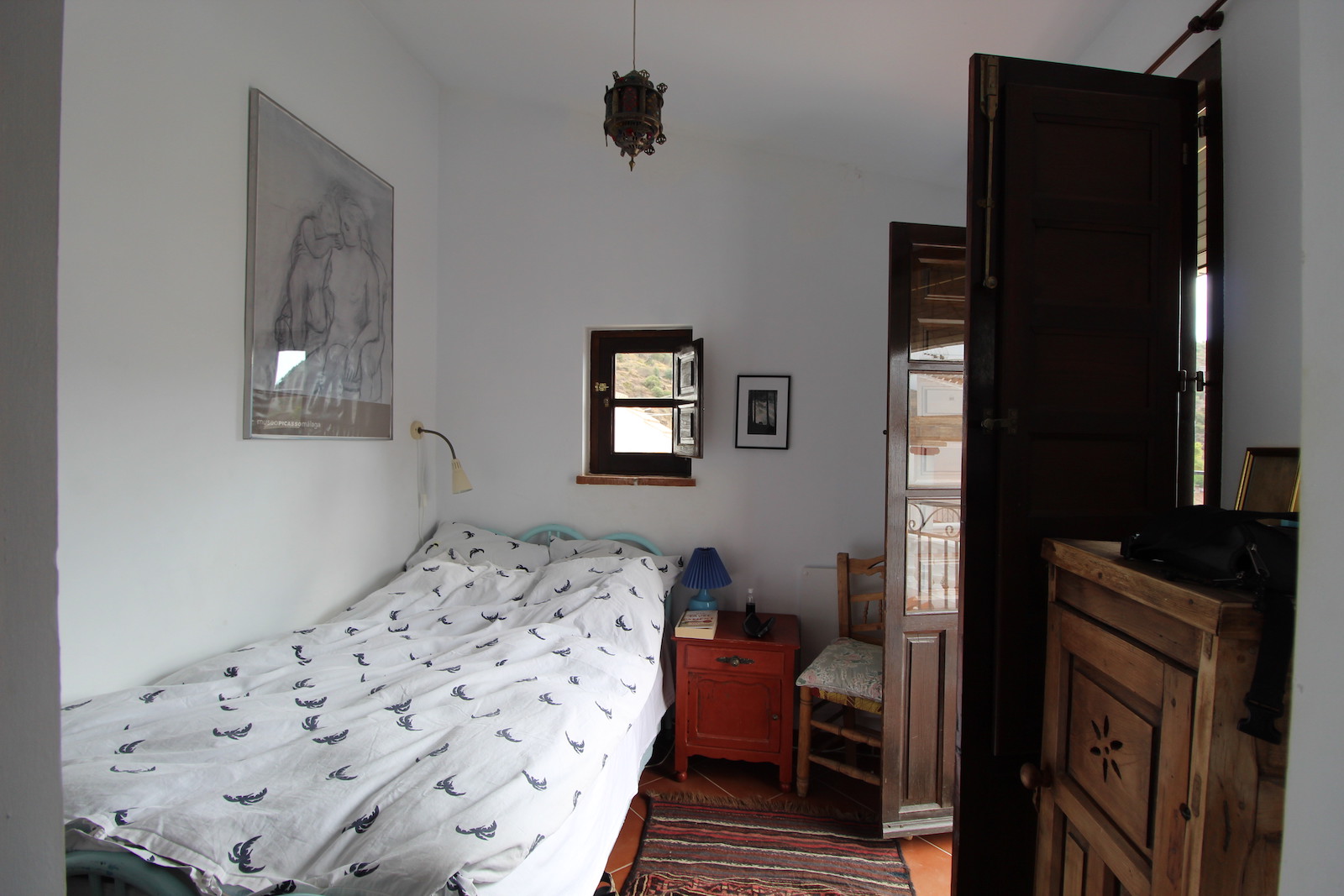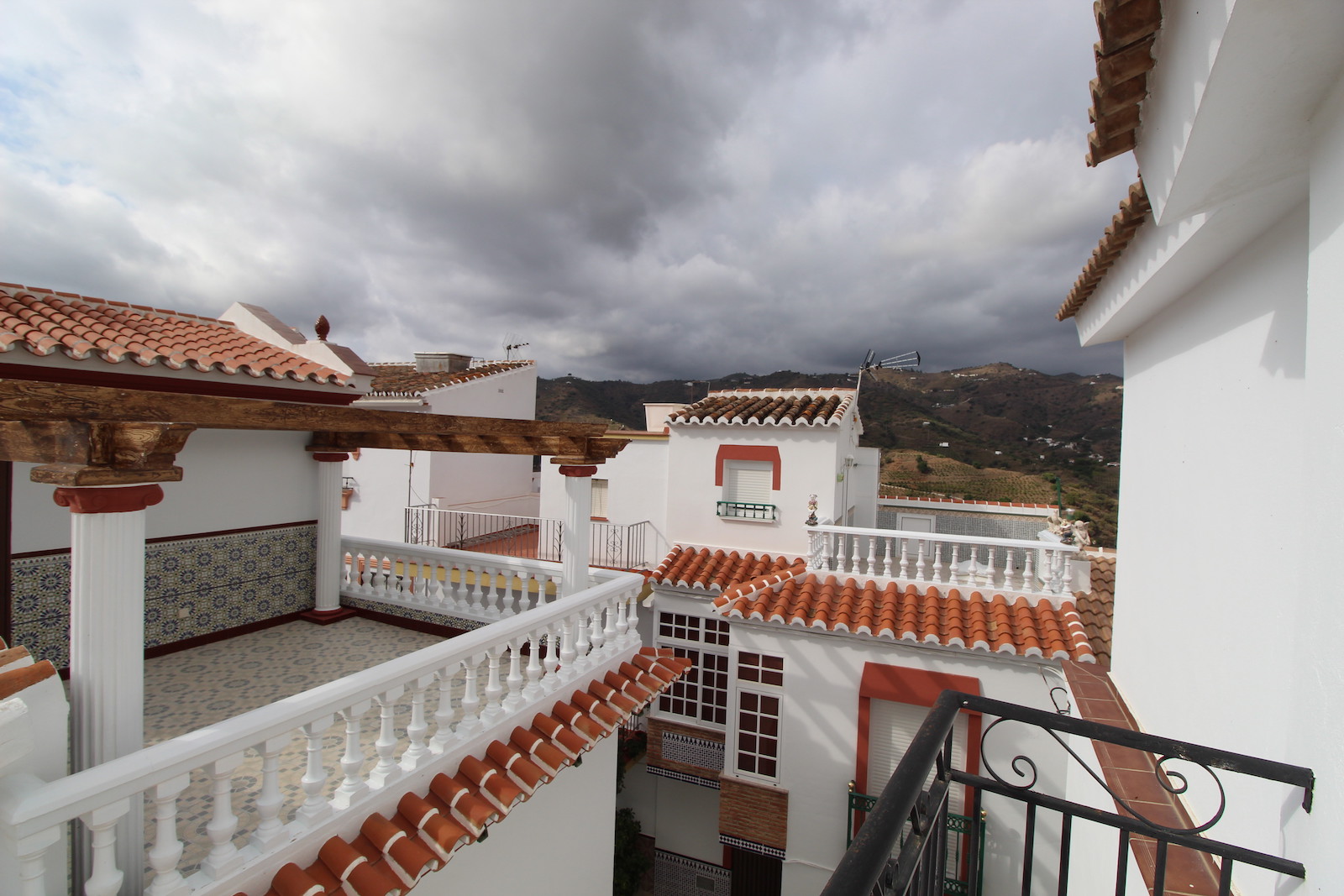 Vi er kun 15 min kørsel fra stranden i Algarrobo costa og 12 min kørsel fra Baviera Golf klub, som gør denne beliggenhed attraktiv. Byhuset er beliggende frit og har fantastisk udsigt til bjergene og mod kysten. Planløsningen er rigtig fin med indgang fra gaden direkte ind i det autentiske spanske køkken, en lille trappe fører op til det første soveværelse og derfra fører endnu en trappe op til første sal, som er blevet bygget på senere, med en dejlig stue med højt til loftet, nye vinduer samt dejlig Morsø brændeovn. Her finder du også huset store badeværelse, som kunne omdannes til et stort lyst soveværelse, da dette rum også har juliet balkon.På anden sal er der yderligere et dejligt soveværelse med en juliet balkon med flot udsigt mod kysten.