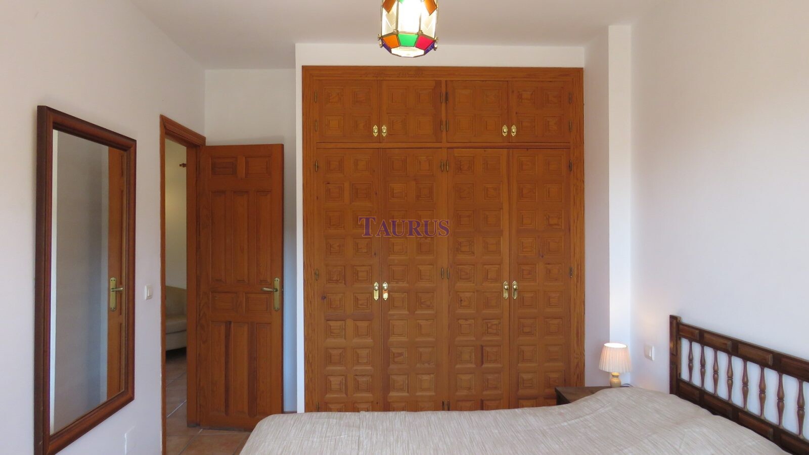 This rustic style property built in ‘99 has 172 m2 accommodation distributed over two floors, and includes an integrated garage. The top floor consists of an entrance area and landing leading to 3 bedrooms, two of which lead out onto a sunny balcony terrace, a guest bathroom and the garage. Stairs lead down to the living / dining area and kitchen, a fourth bedroom and second bathroom.
