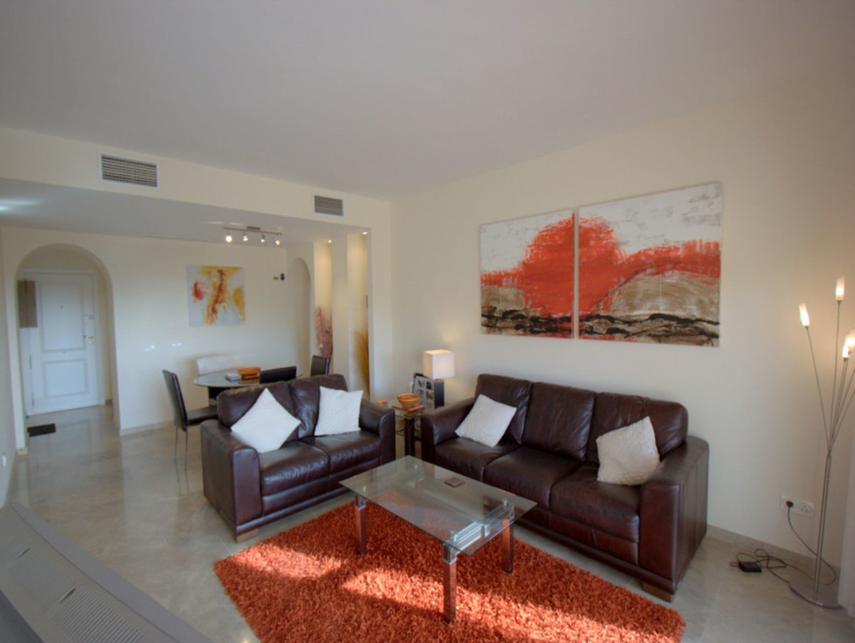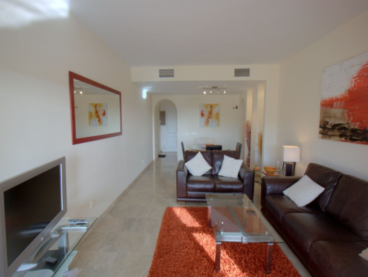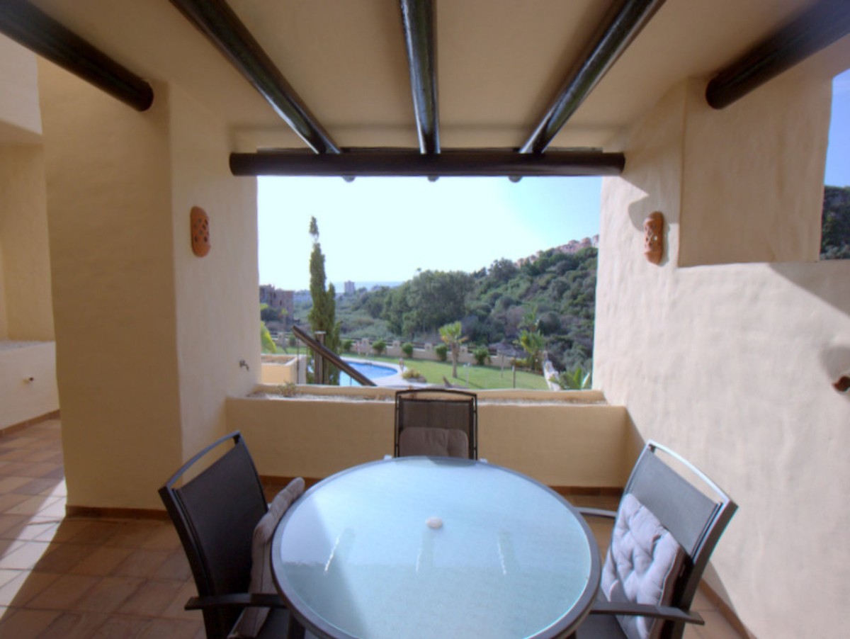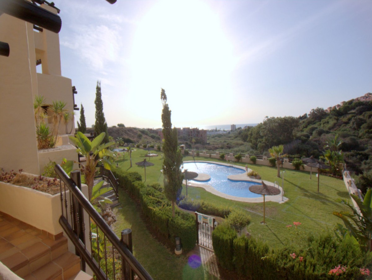 Pool & Sea View with 40msq Terrace. Coto Real, Duquesa is an established urbanisation within easy reach of all amenities and a short walk to the busy and vibrant local shopping area of Sabinillas. Situated in the first phase is this exceptional apartment with direct access to the gardens and communal pools. The entrance opens to a spacious hallway with a fully equipped kitchen and utility/laundry room. Further along the hallway is the main living area with it´s feature alcoves, nice decor and patio doors leading out to the south east facing terrace with views of the pool and towards the coast. There are two very spacious bedrooms with ample wardrobe storage and a family bathroom. The master bedroom benefits from a full en-suite and also patio doors out to the terrace. The terrace is a fantastic size and a great orientation to catch the sun as well as having direct access down to the communal pool/gardens. The property comes with hot & cold air-conditioning, underground parking, separate storage room and is in a highly desirable community in Duquesa. A perfect property for holidays or long-term coastal life.