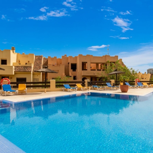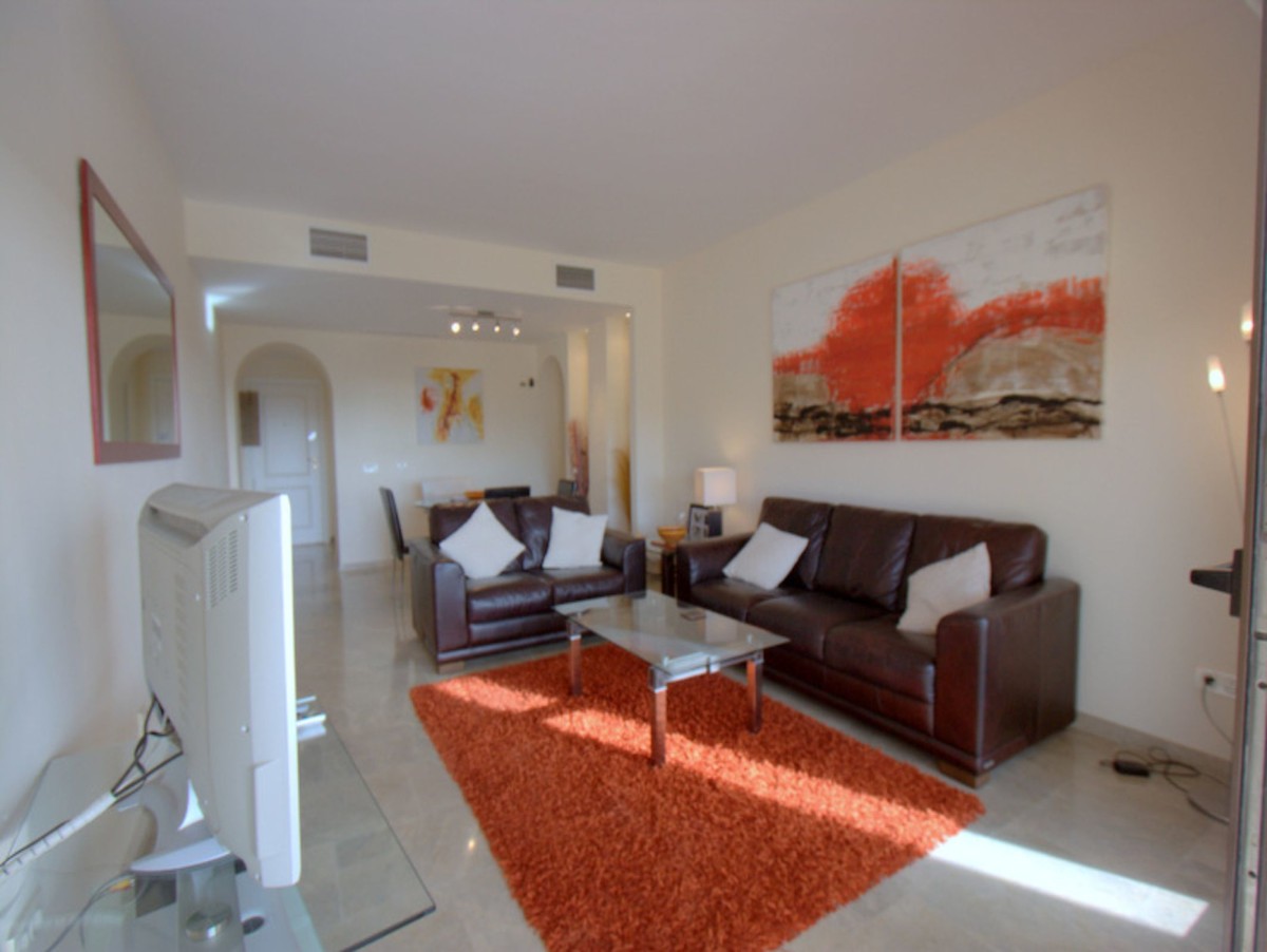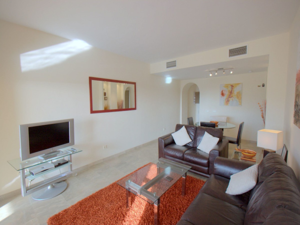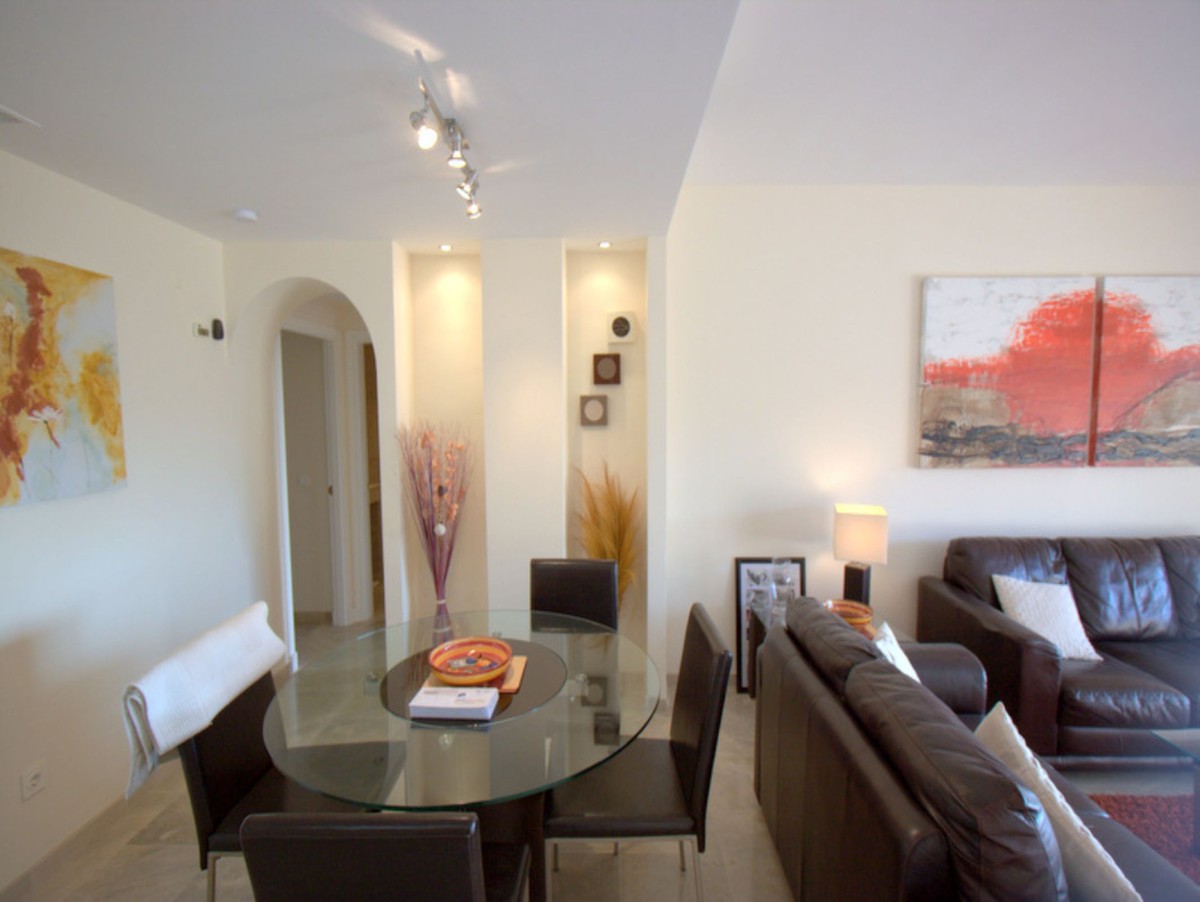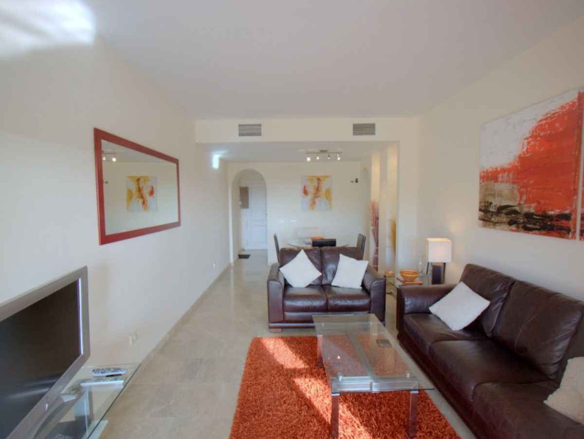 Pool & Sea View with 40msq Terrace. Coto Real, Duquesa is an established urbanisation within easy reach of all amenities and a short walk to the busy and vibrant local shopping area of Sabinillas. Situated in the first phase is this exceptional apartment with direct access to the gardens and communal pools. The entrance opens to a spacious hallway with a fully equipped kitchen and utility/laundry room. Further along the hallway is the main living area with it´s feature alcoves, nice decor and patio doors leading out to the south east facing terrace with views of the pool and towards the coast. There are two very spacious bedrooms with ample wardrobe storage and a family bathroom. The master bedroom benefits from a full en-suite and also patio doors out to the terrace. The terrace is a fantastic size and a great orientation to catch the sun as well as having direct access down to the communal pool/gardens. The property comes with hot & cold air-conditioning, underground parking, separate storage room and is in a highly desirable community in Duquesa. A perfect property for holidays or long-term coastal life.