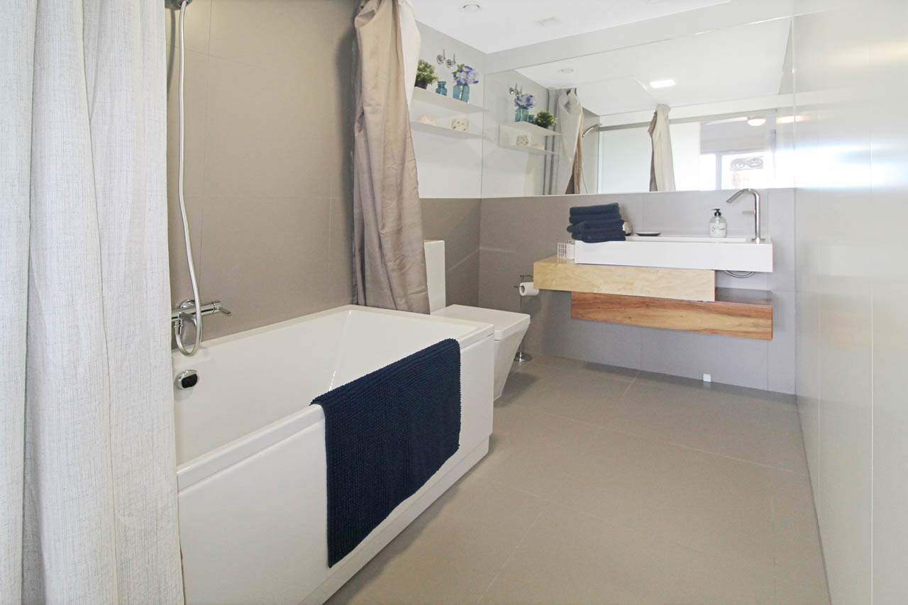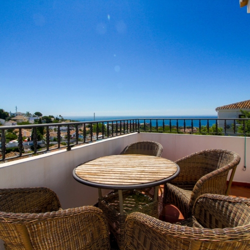 I ejendommen har du 2 soveværelser og badeværelser - fra det ene har du også adgang til den store 40m2 terrasse med udsigt til havet.