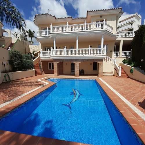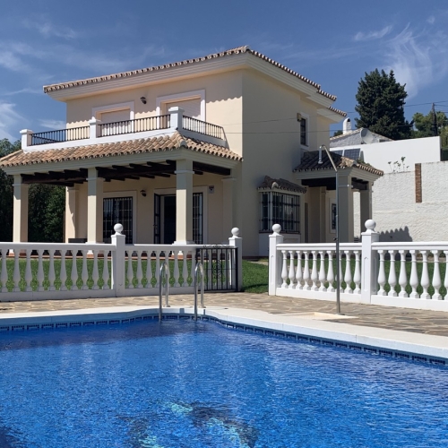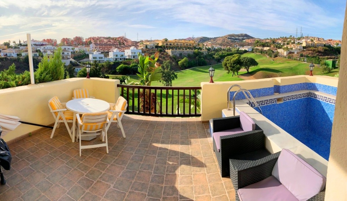 You will not be disappointed with this stunning setting on the front line to Miraflores Golf. The ample lounge diner has access to the sunny terrace with simply outstanding views plus your very own plunge pool. On this floor you also have the good size kitchen, a separate utility room, cloakroom and a guest bathroom. The first floor has the 2 large guest bedrooms, full family bathroom and huge main en suite bedroom with more breathtaking views. Some of the neighbours here in Las Cabanas have also utilised the space underneath the house to make extra rooms, more storage space or even a separate apartment. Come long and have your socks blown off