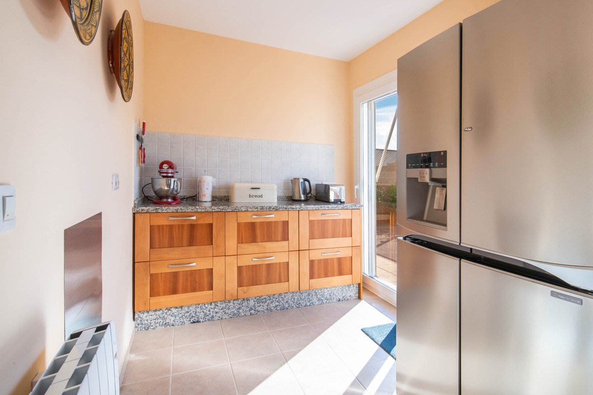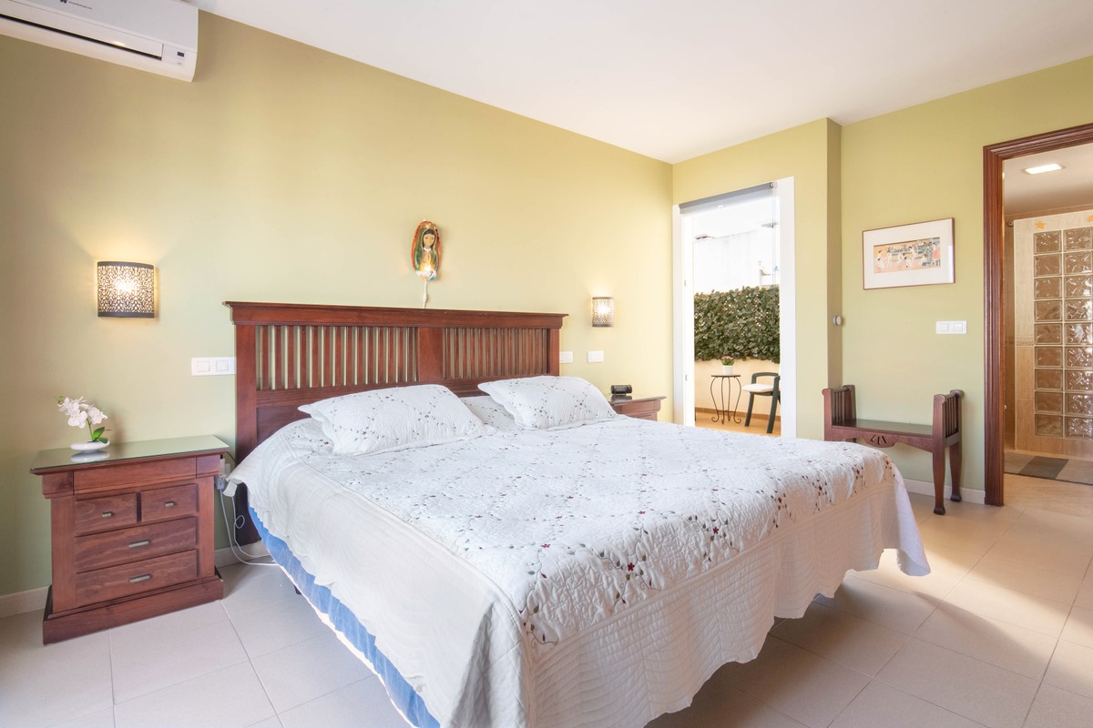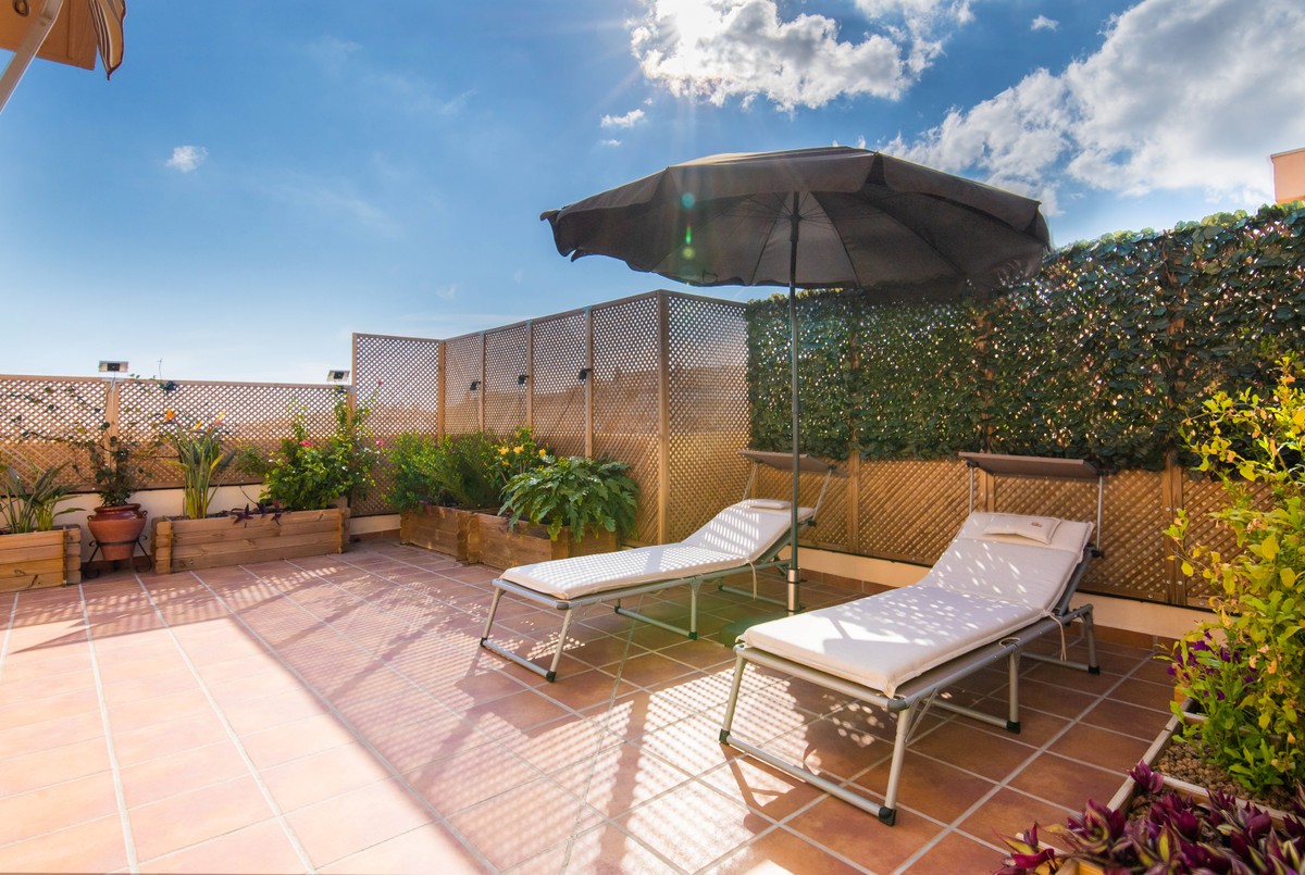 Denne penthouse byder på masser af privatliv og udendørs plads, hvor du kan få adgang til den store terrasse fra alle værelser i lejligheden.
