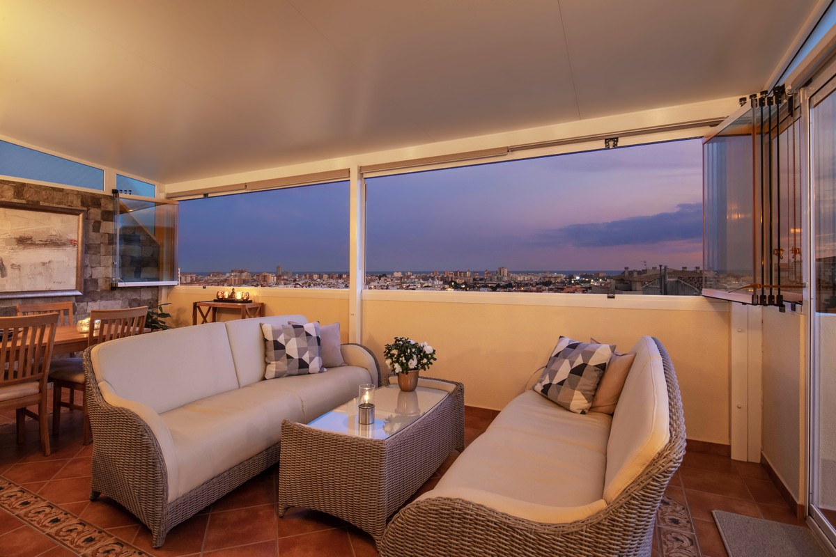 Fra alle dele af terrassen har du udsigt enten mod havet, Fuengirola eller bjergene i Mijas.