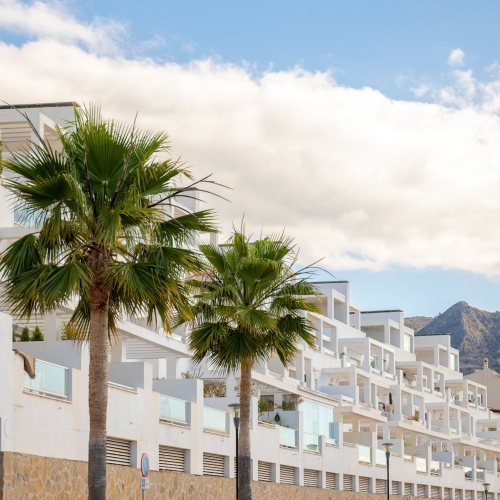 Velkommen indenfor i denne moderne arkitekttegnede lejlighed, beliggende i det meget populære og prisvindende område ”Higueron West 217”.
