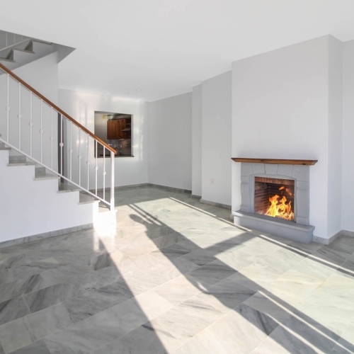 Smukt rækkehus med storslået udsigt beliggende i populære El Mirador de Rancho Domingo i Benálmadena Pueblo.