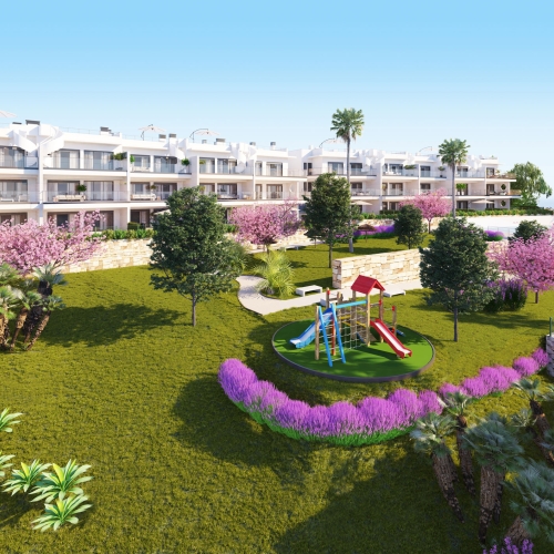A beautiful penthouse with, among other things, open roof terrace / solarium with views of the Mediterranean, mountains and golf course.