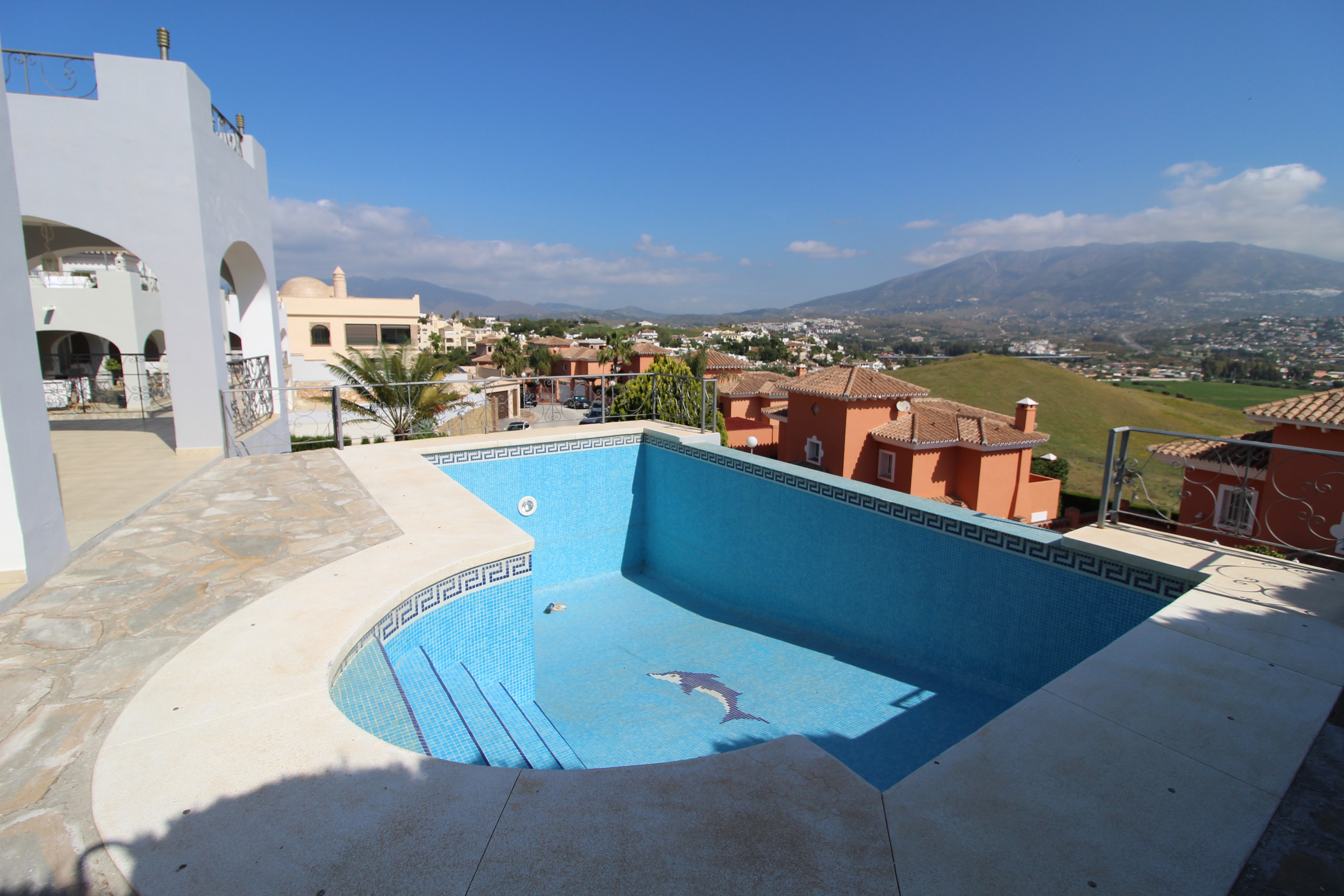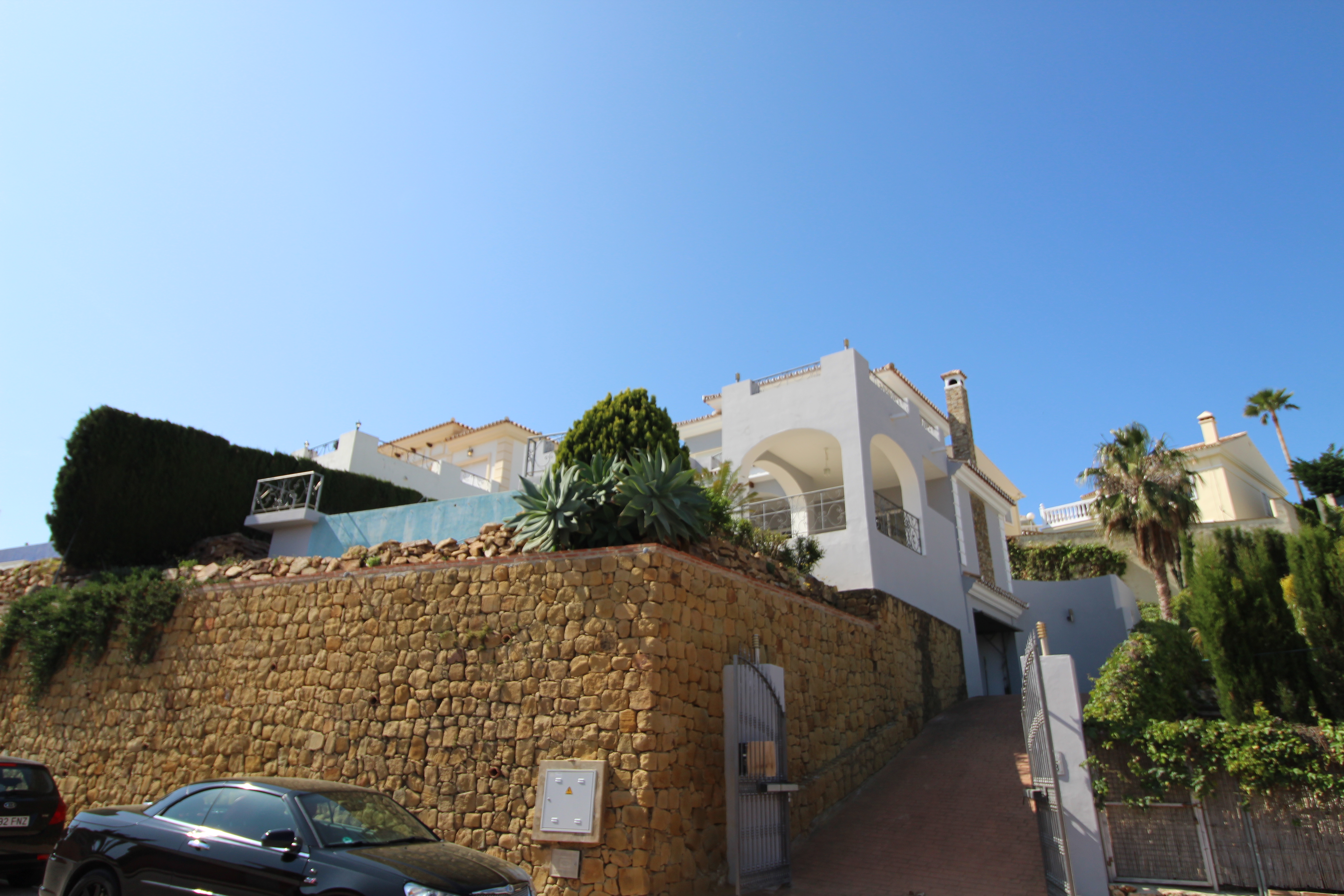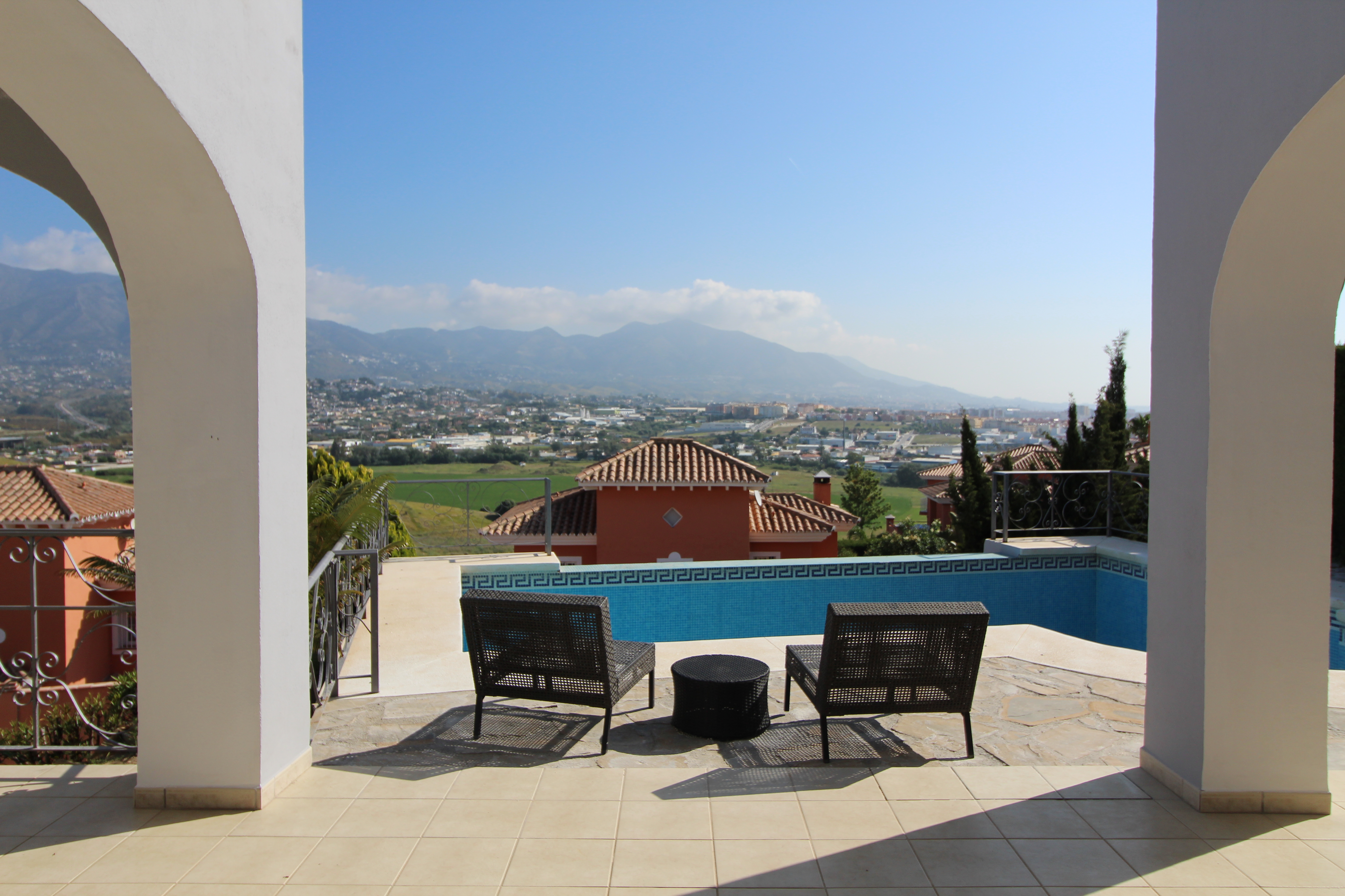 Smuk villa beliggende lige udenfor Fuengirola med udsigt til Mijas bjerge, havet og Fuengirola by.