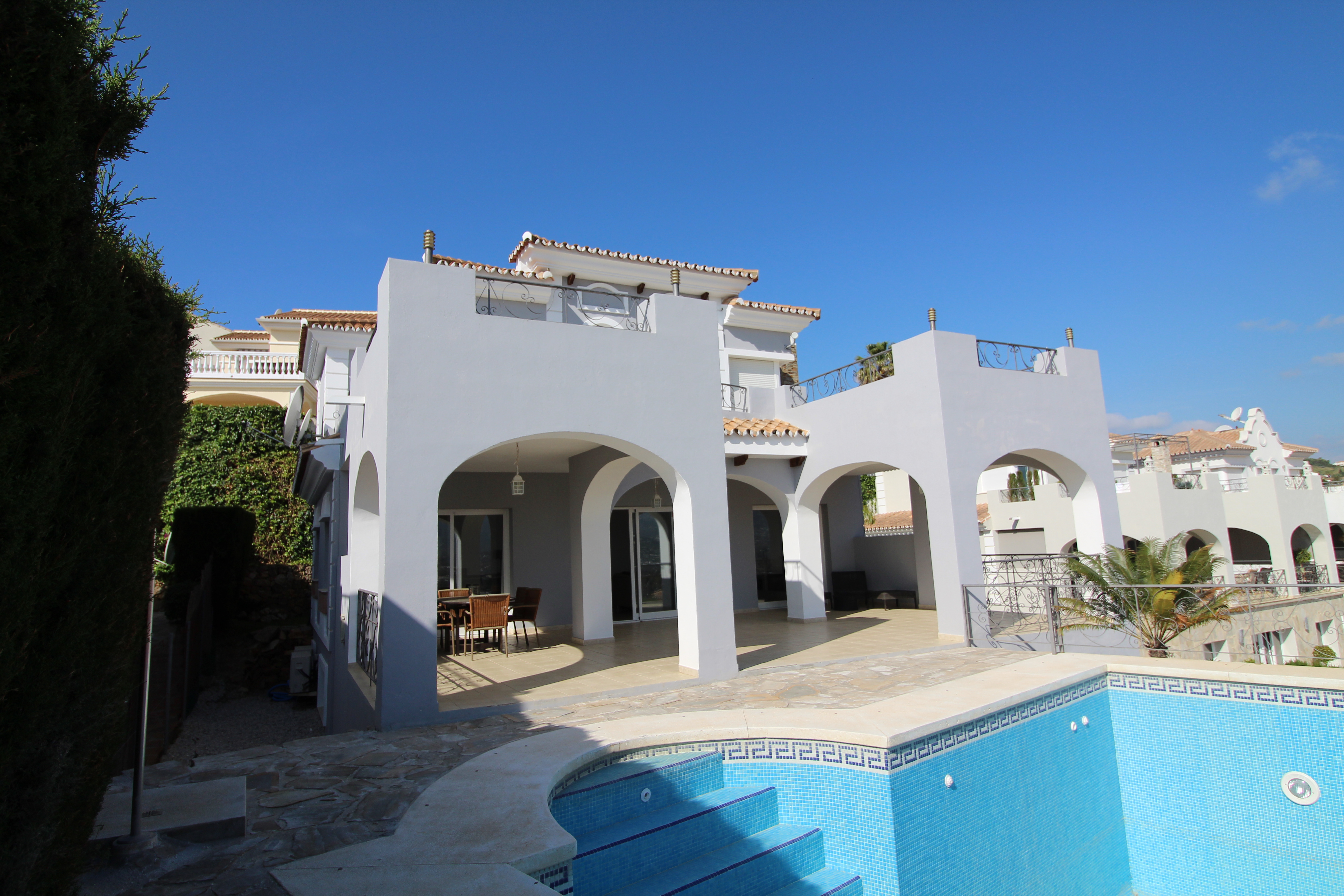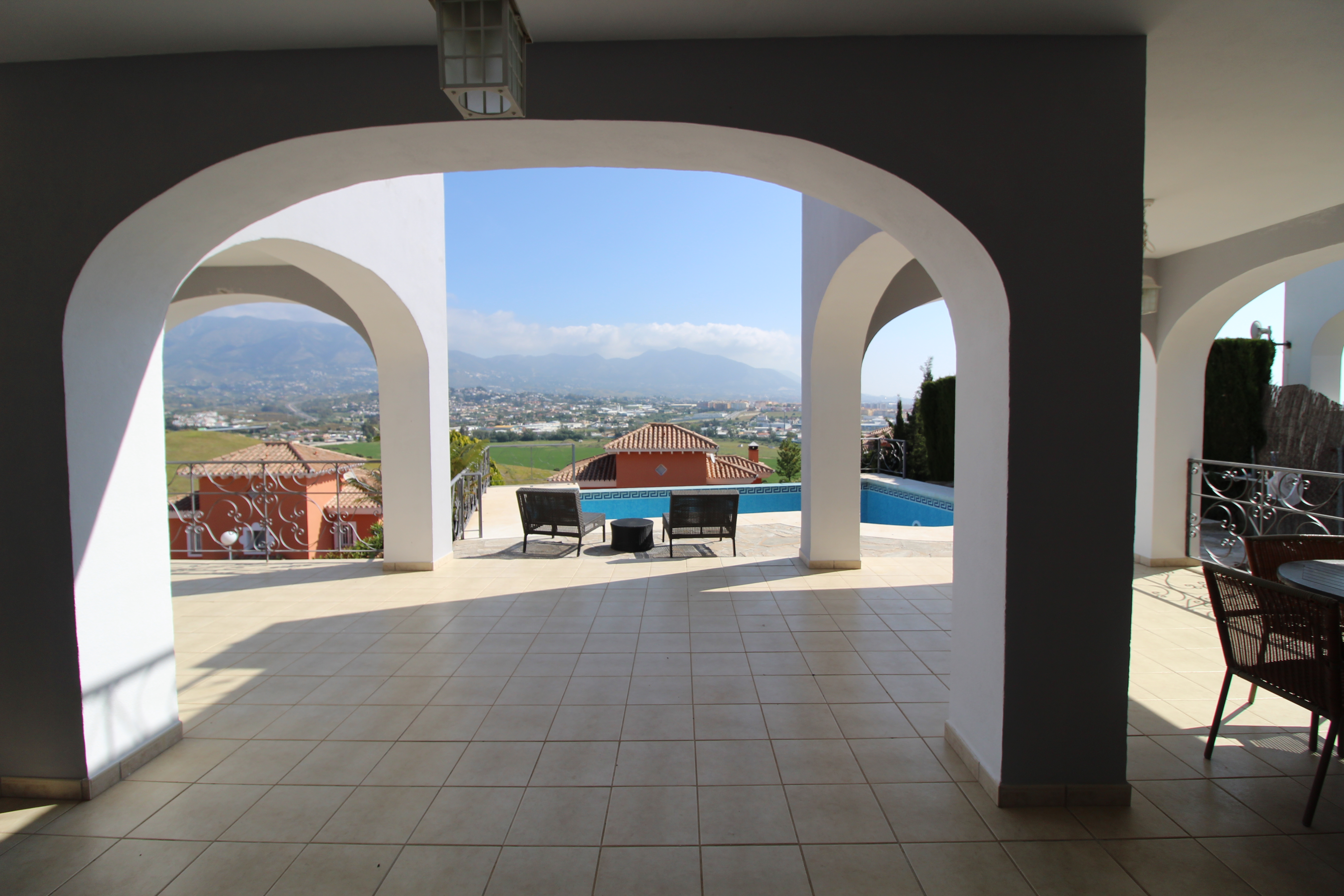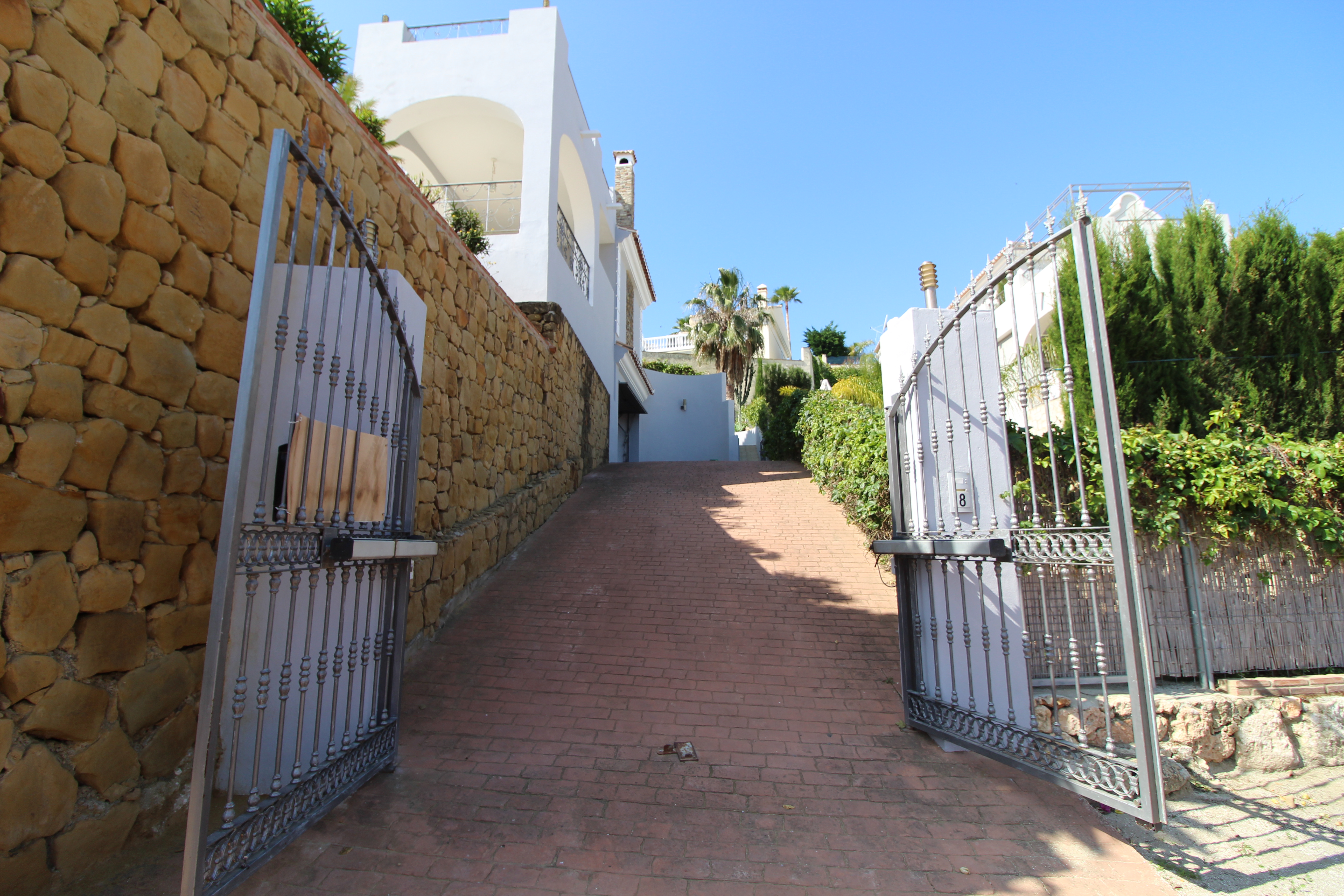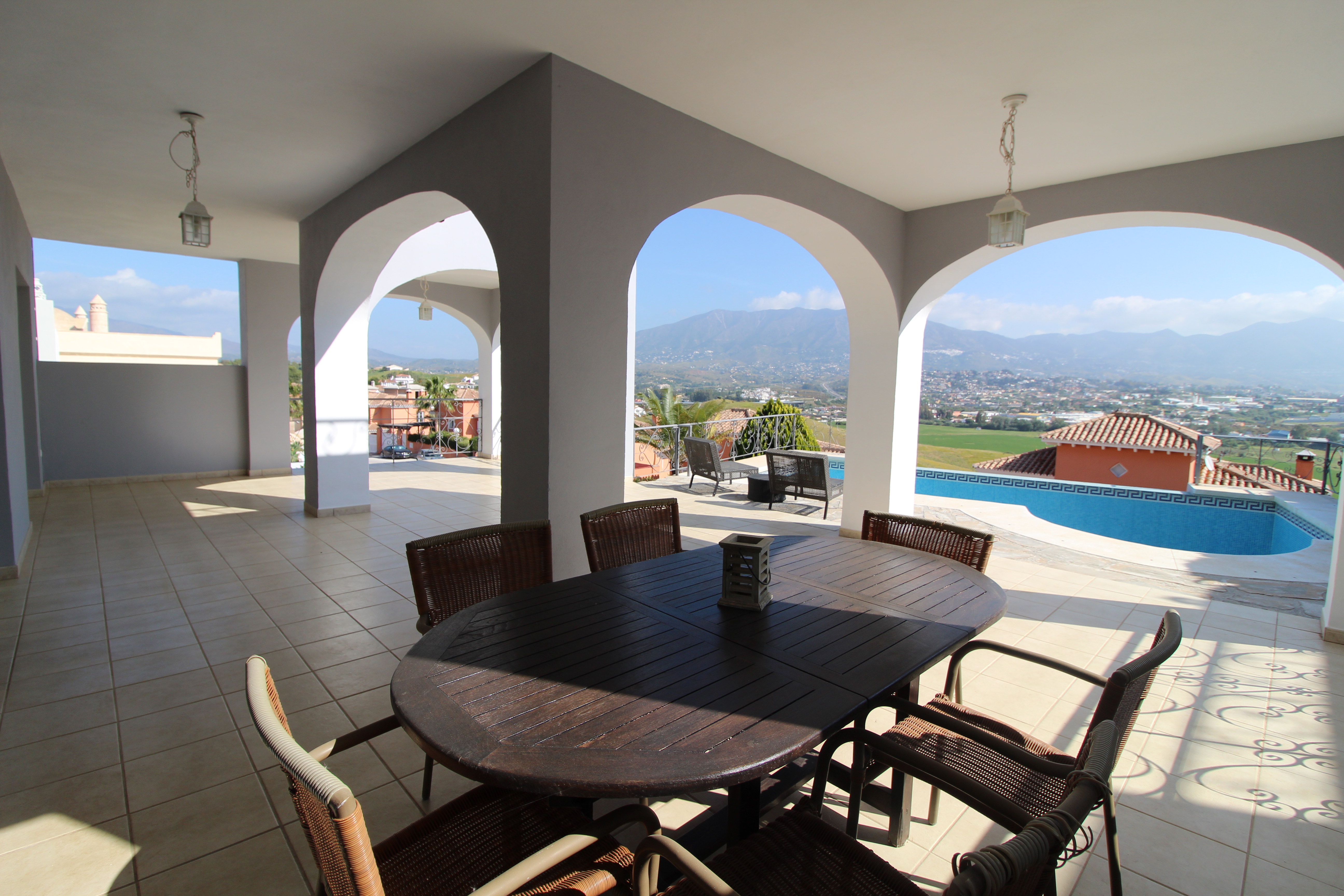 Smuk villa beliggende lige udenfor Fuengirola med udsigt til Mijas bjerge, havet og Fuengirola by.
