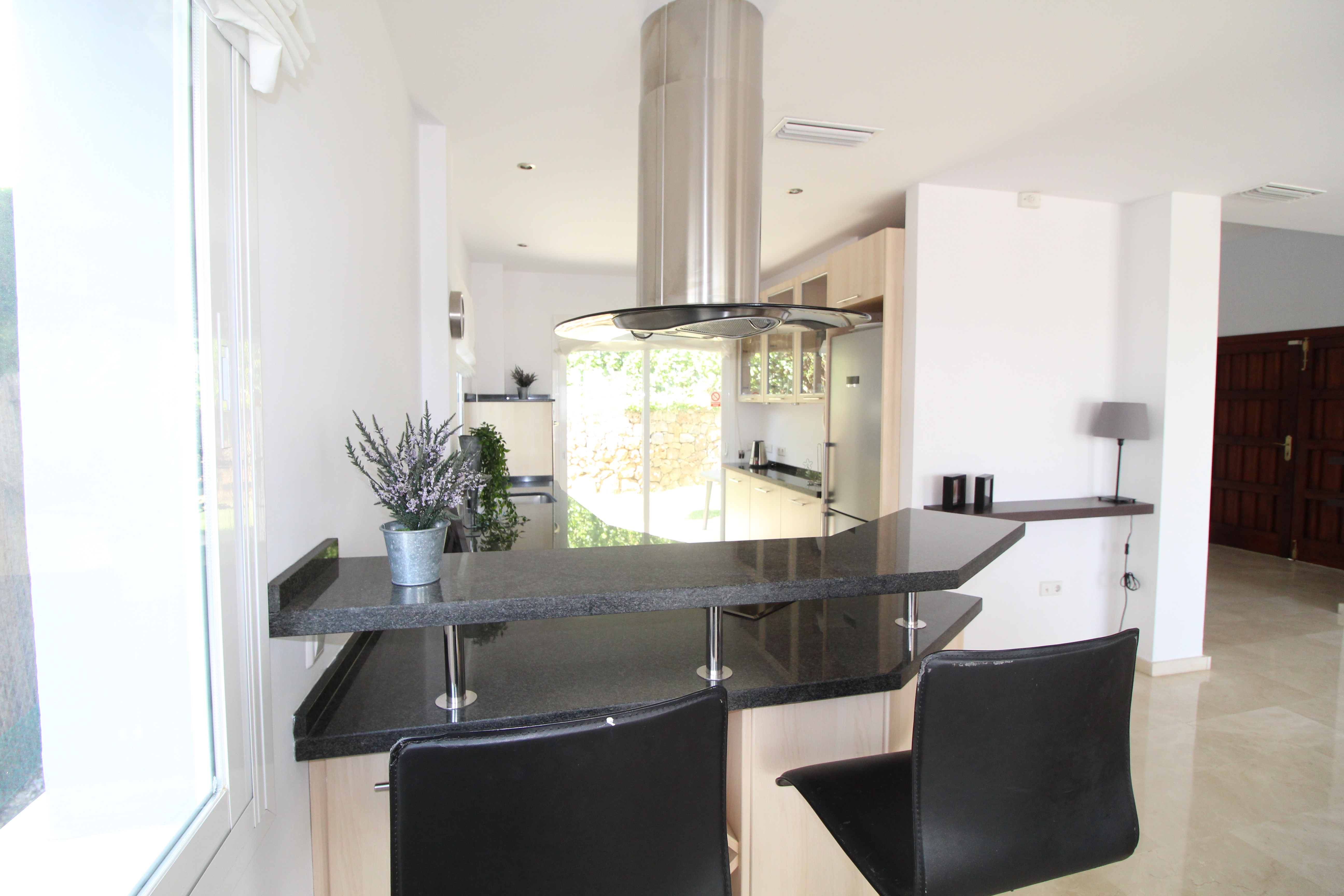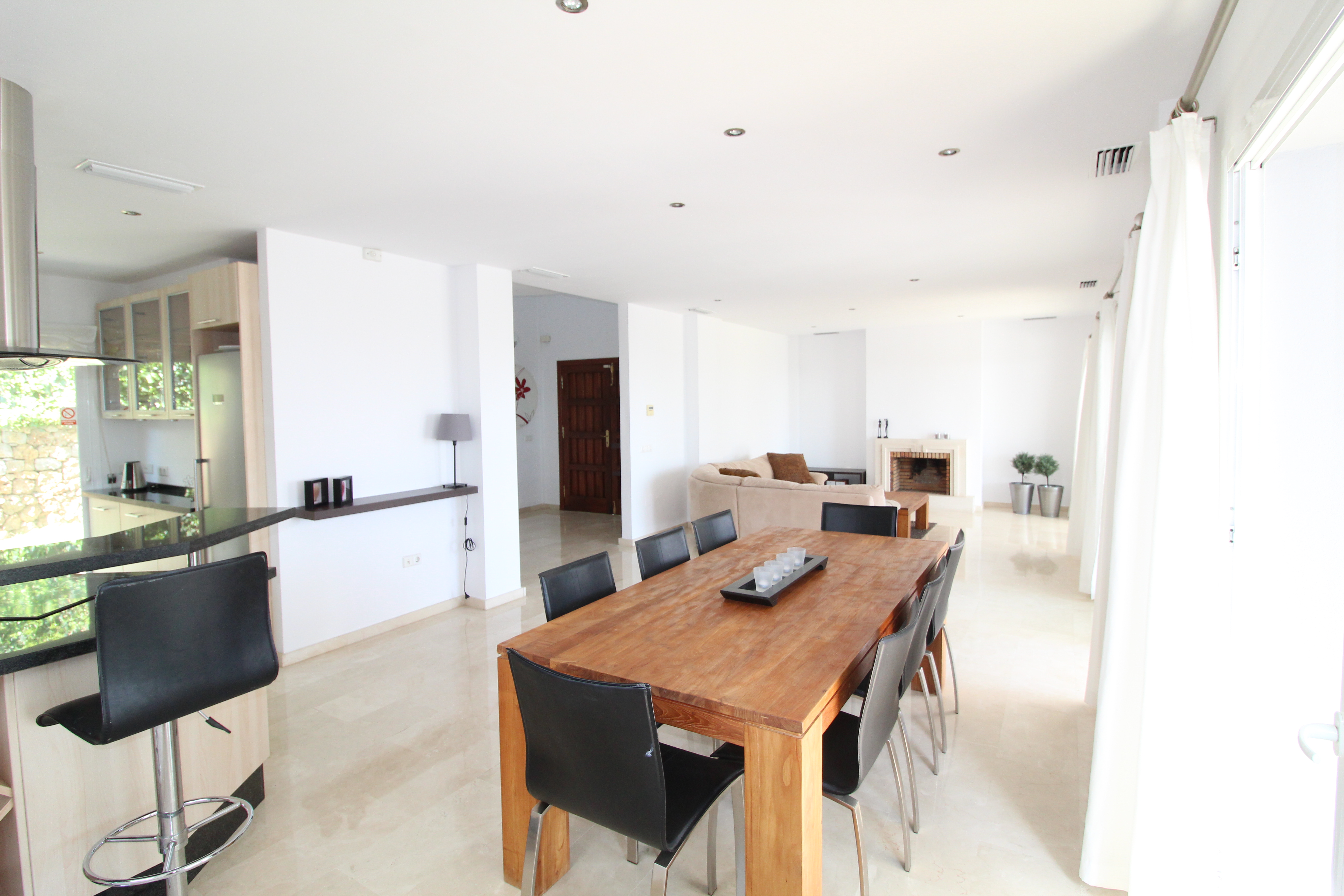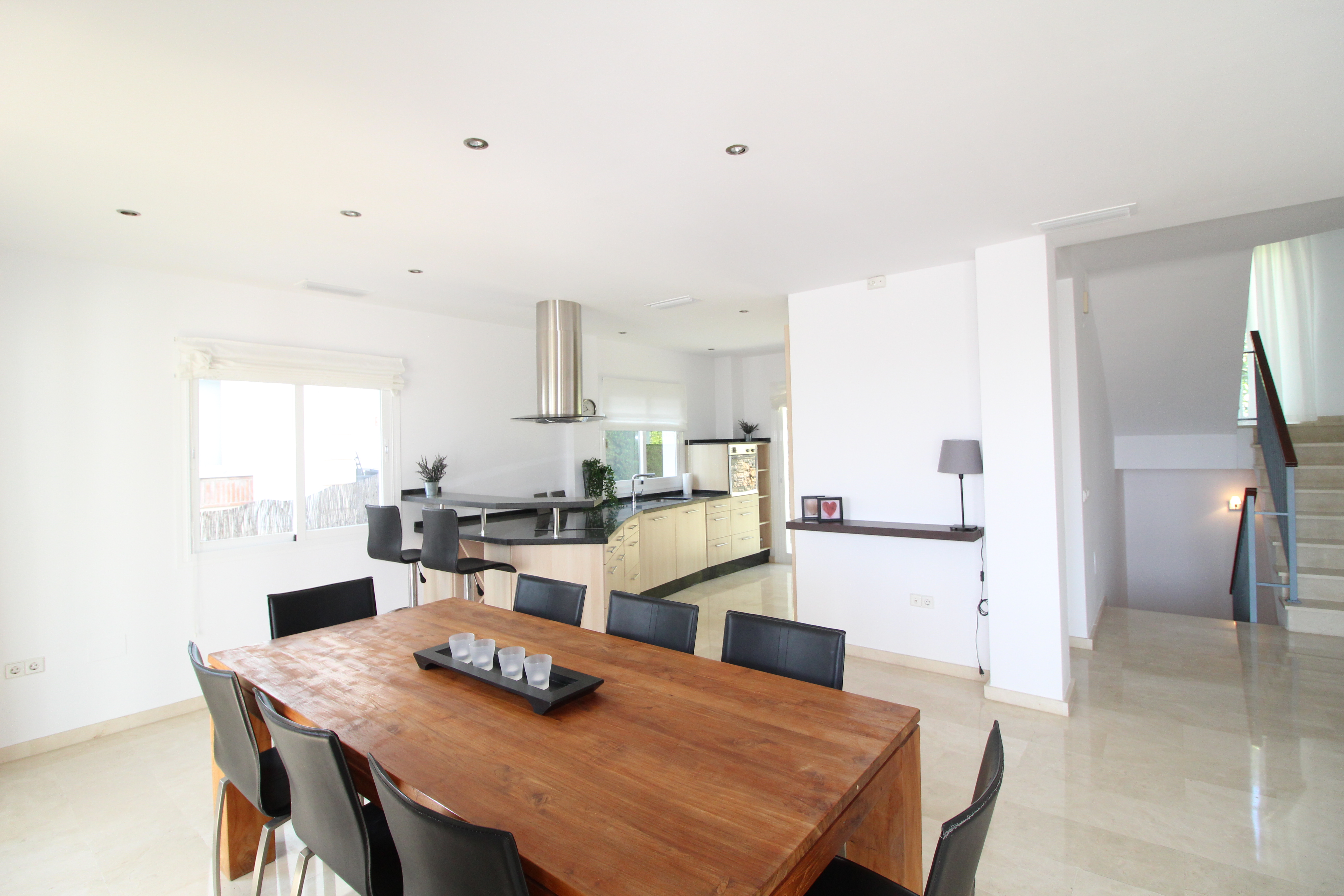 Villaen er fordelt på 3 etager - stueetagen har et skandinavisk inspireret åbent køkken og stue med gæstetoilet. Fra køkkenet og stuen har du 4 adgange til terrassen, hvor du finder en ”infinity” pool med udsigt over bjergene.
