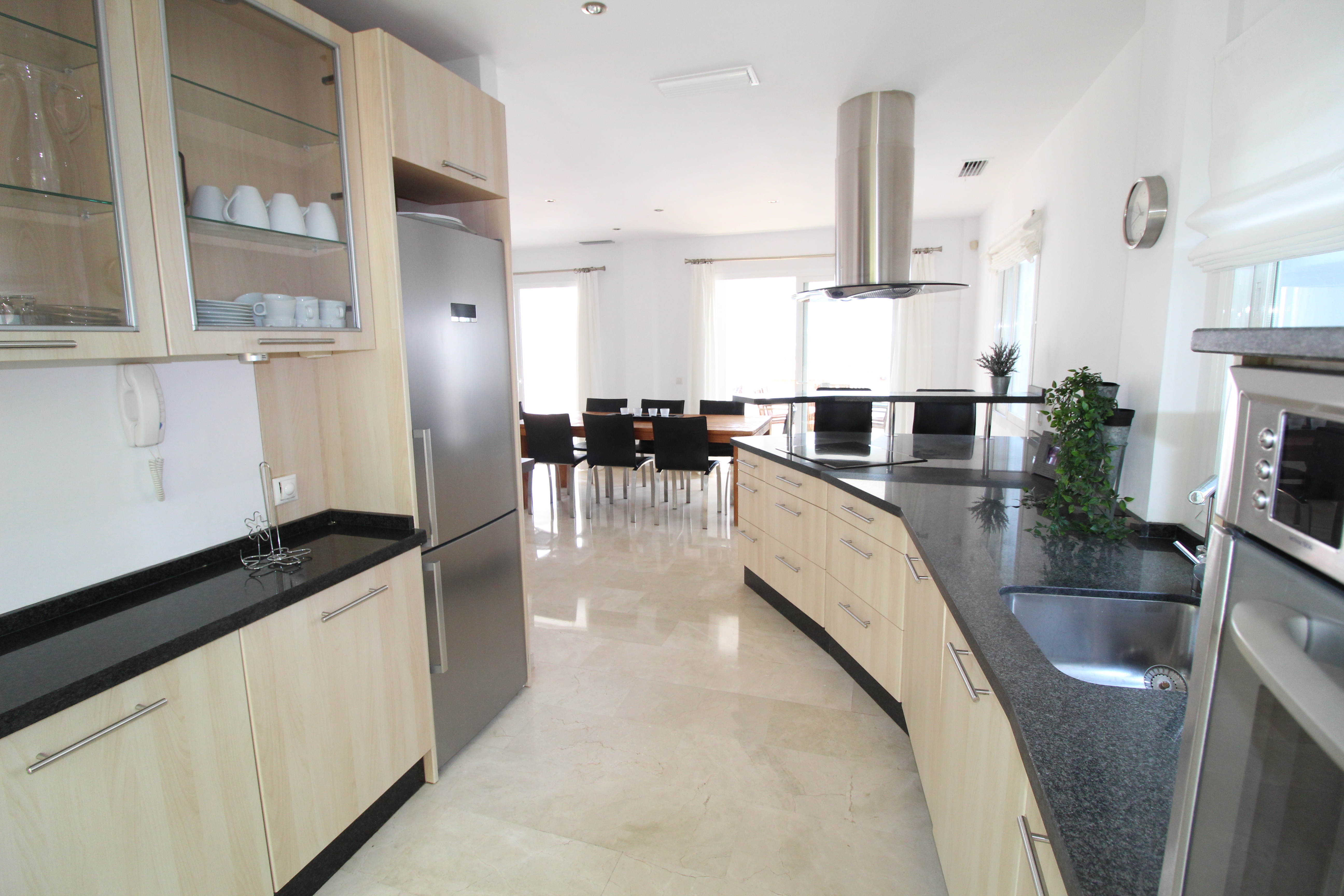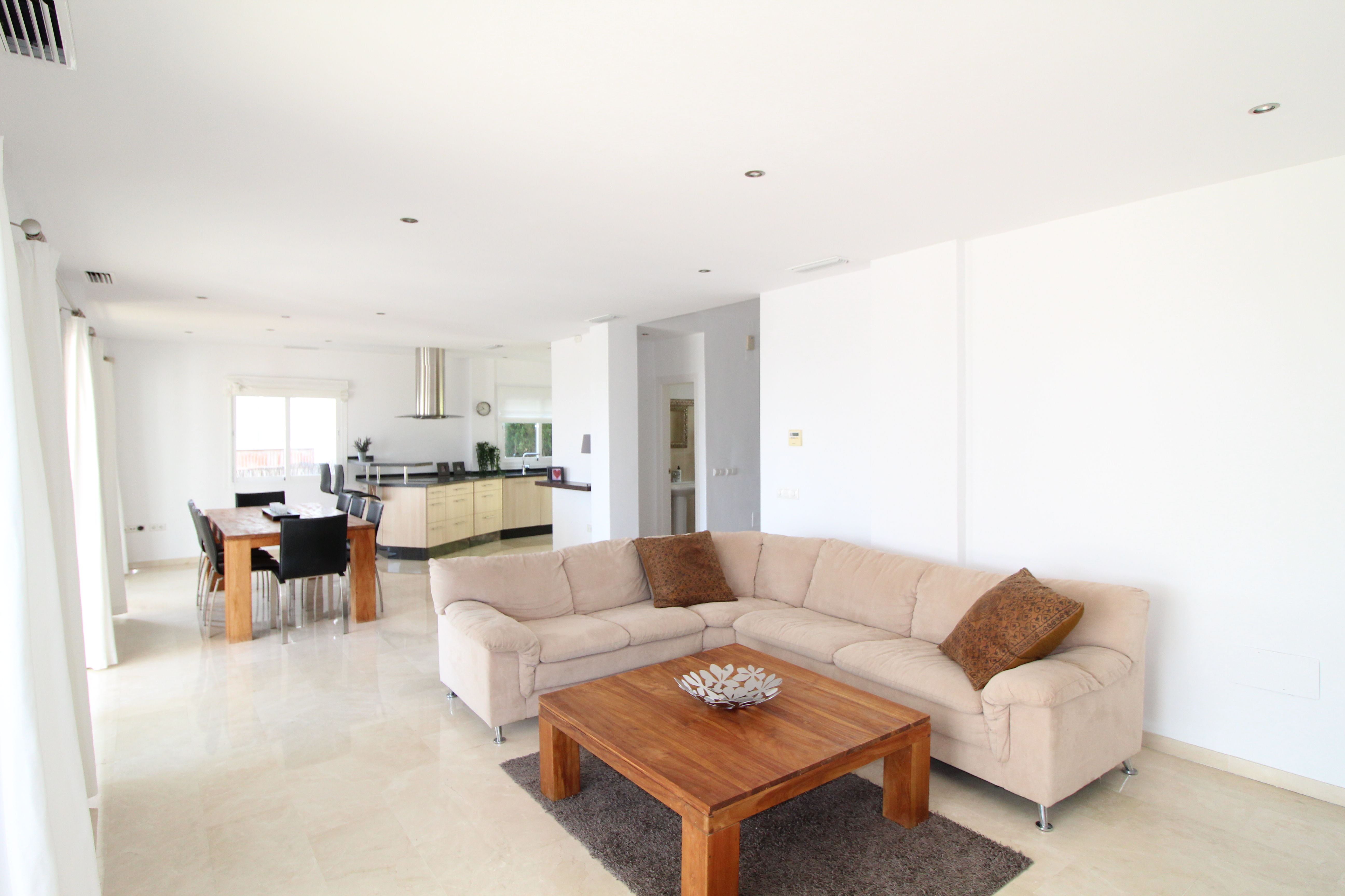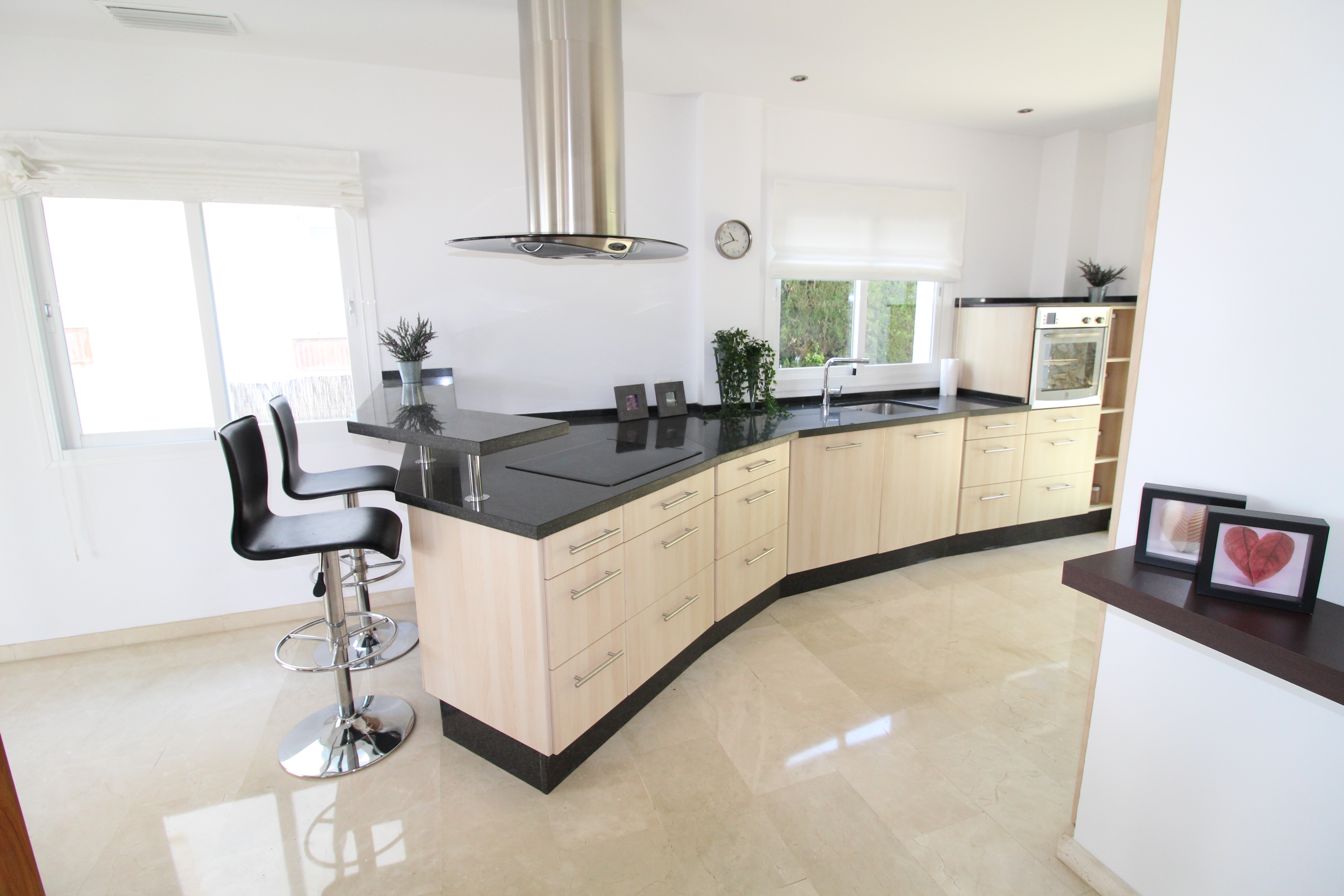 Villaen er fordelt på 3 etager - stueetagen har et skandinavisk inspireret åbent køkken og stue med gæstetoilet. Fra køkkenet og stuen har du 4 adgange til terrassen, hvor du finder en ”infinity” pool med udsigt over bjergene.