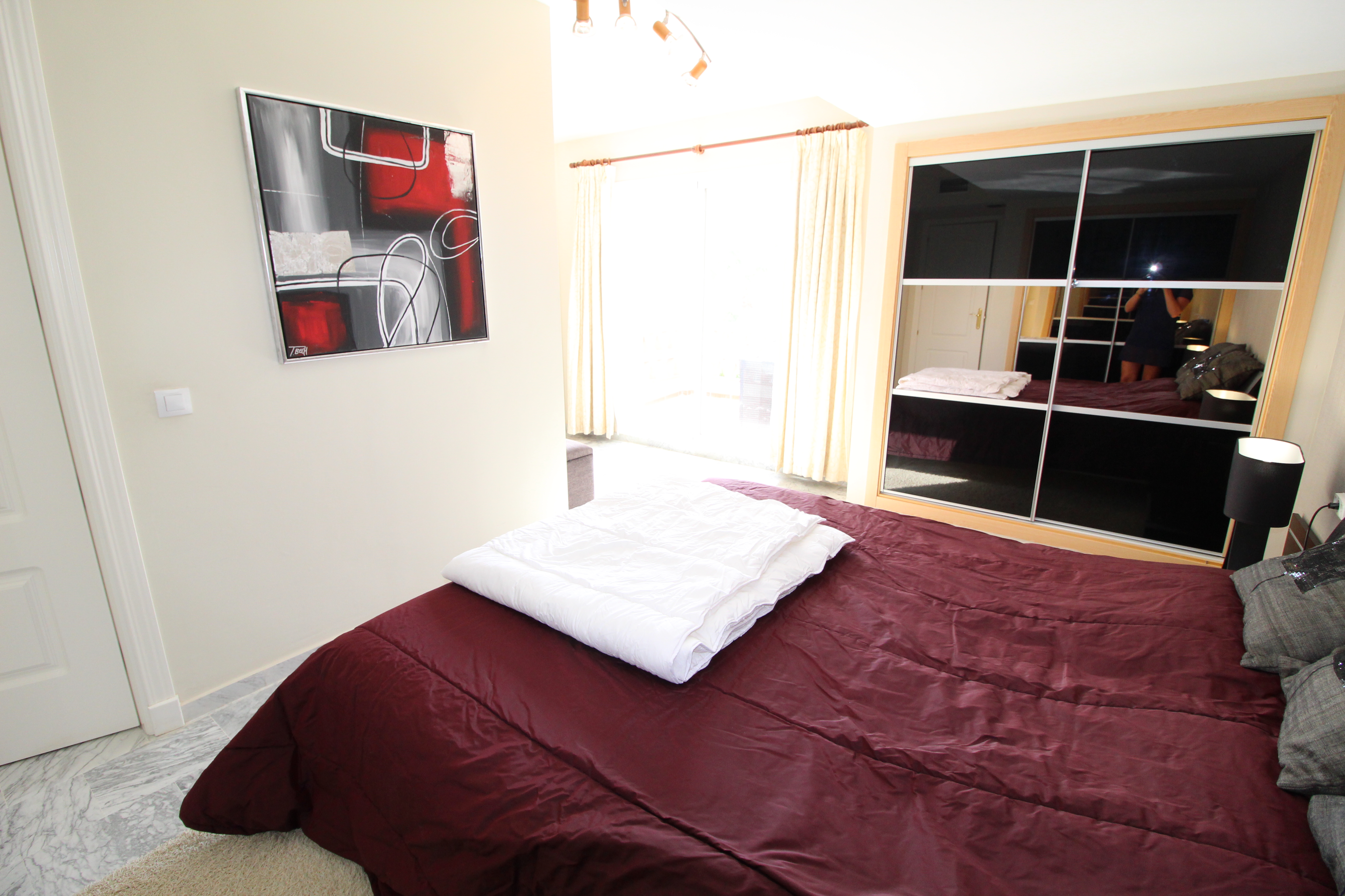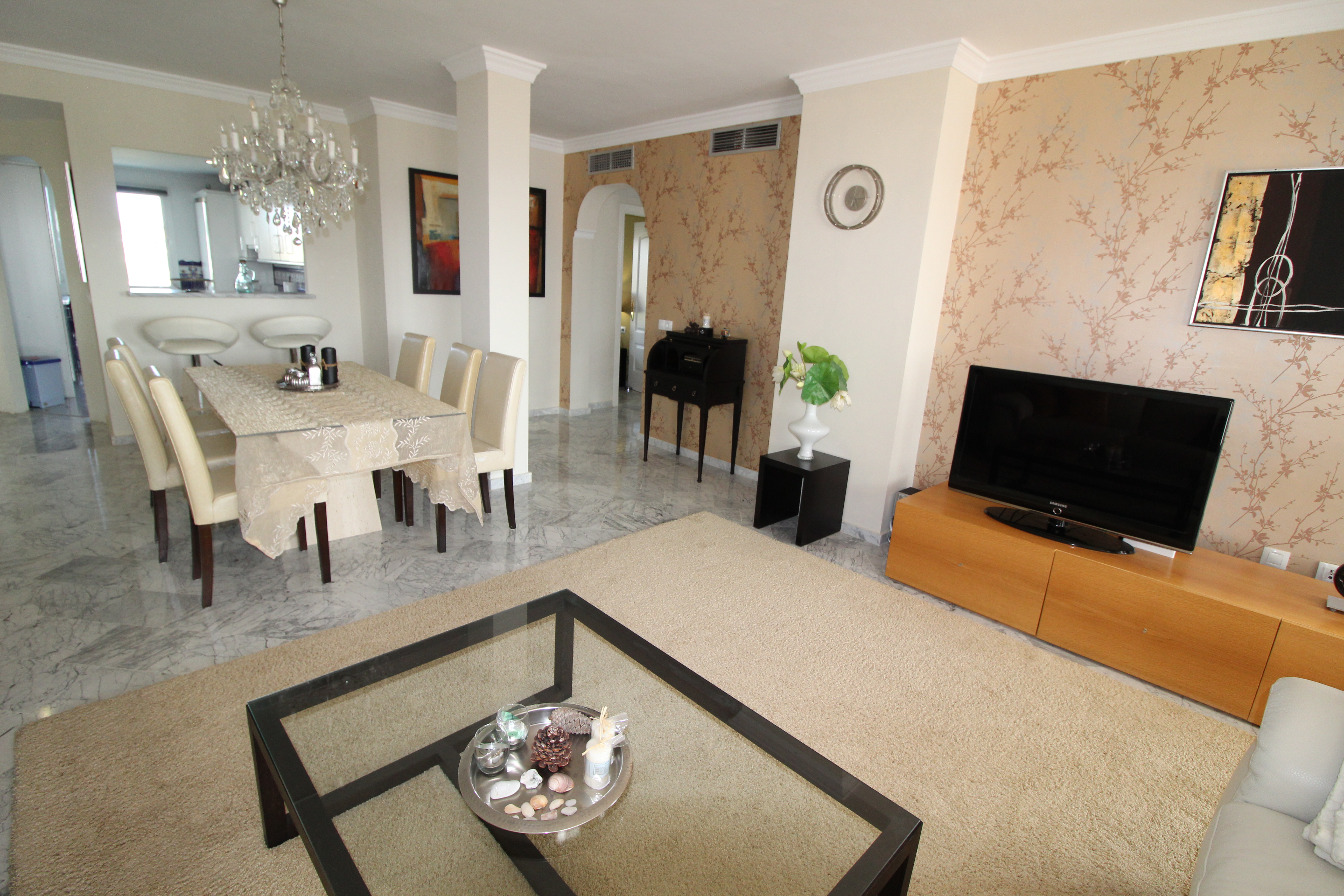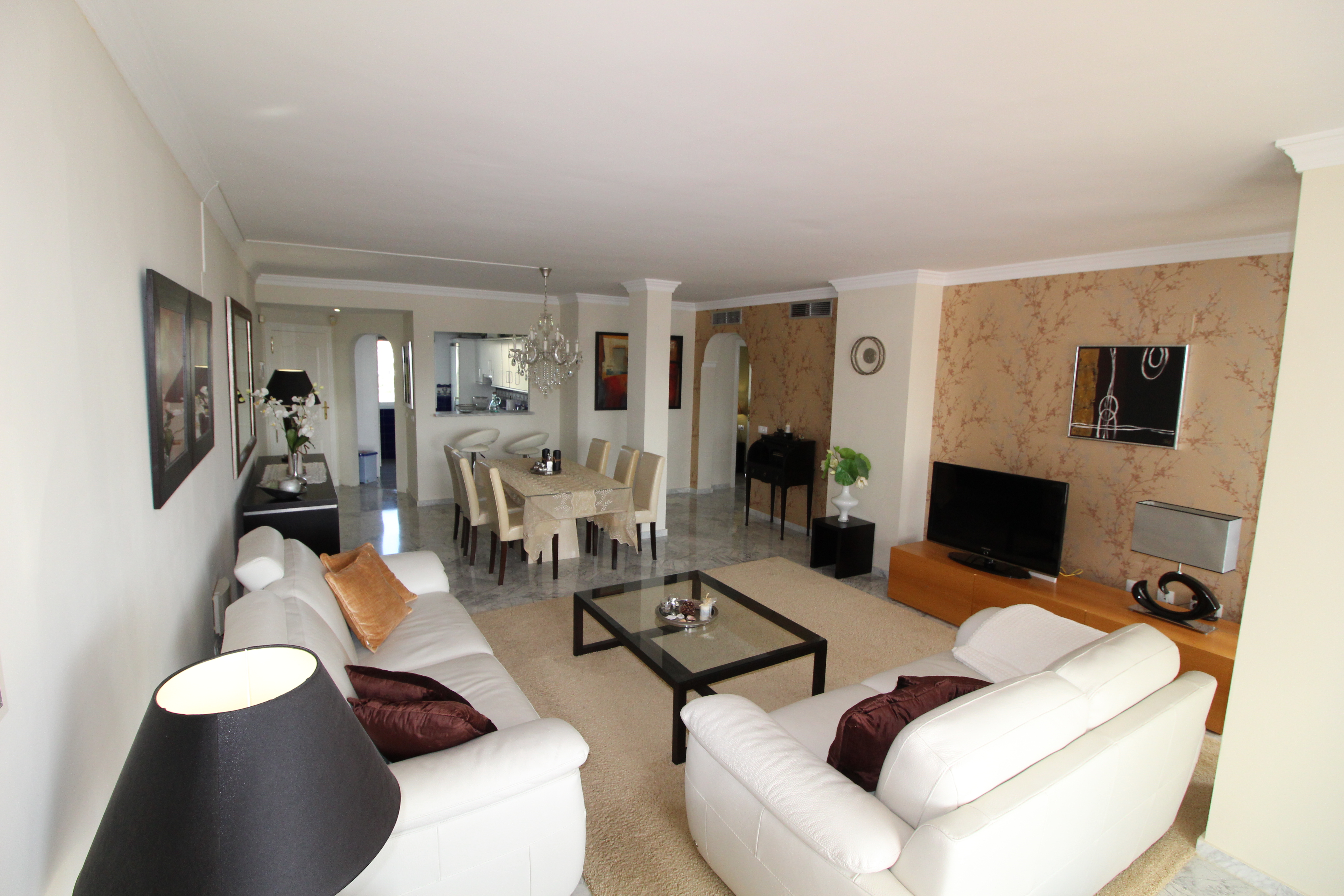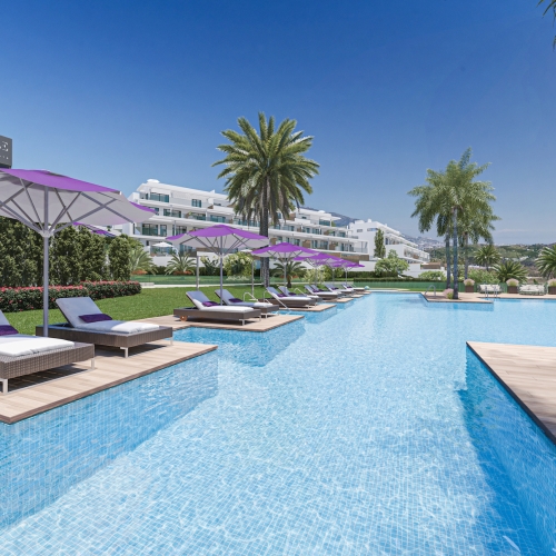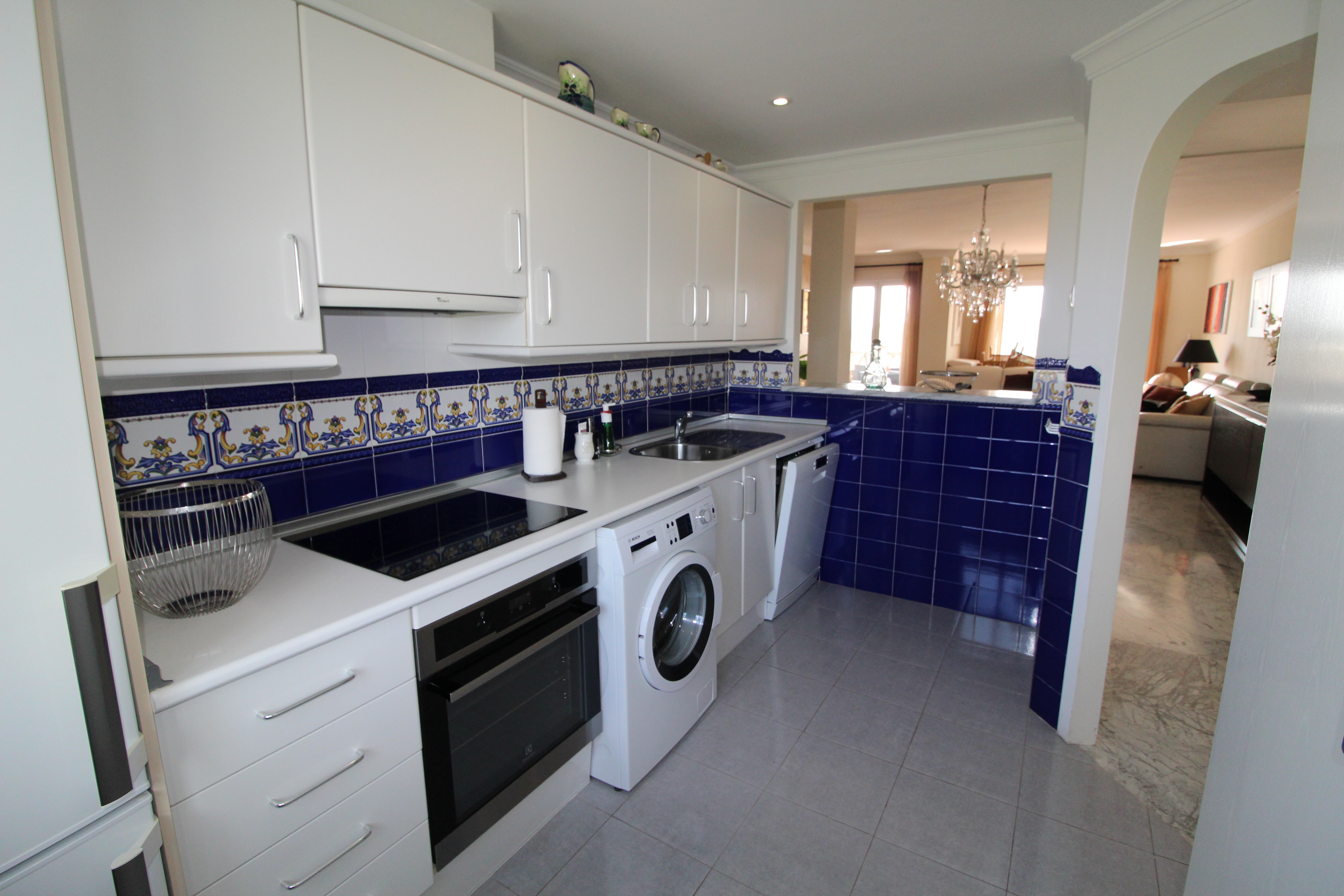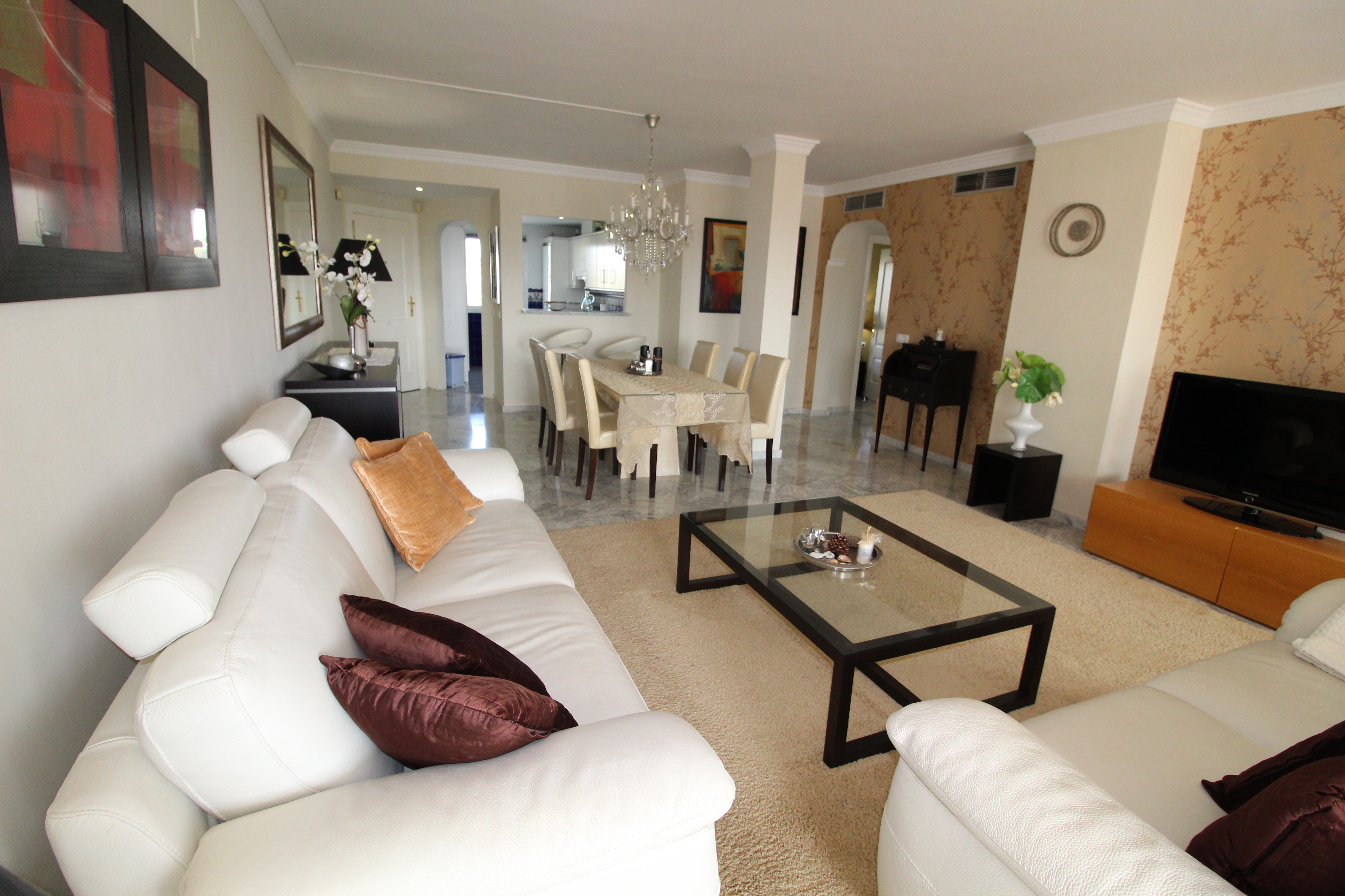 Fra den 30 m2 store sydvest vendte terrasse kan man nyde den skønne udsigt til golfbanen og bjergene. Herfra har man sol hele eftermiddagen og aftenen.