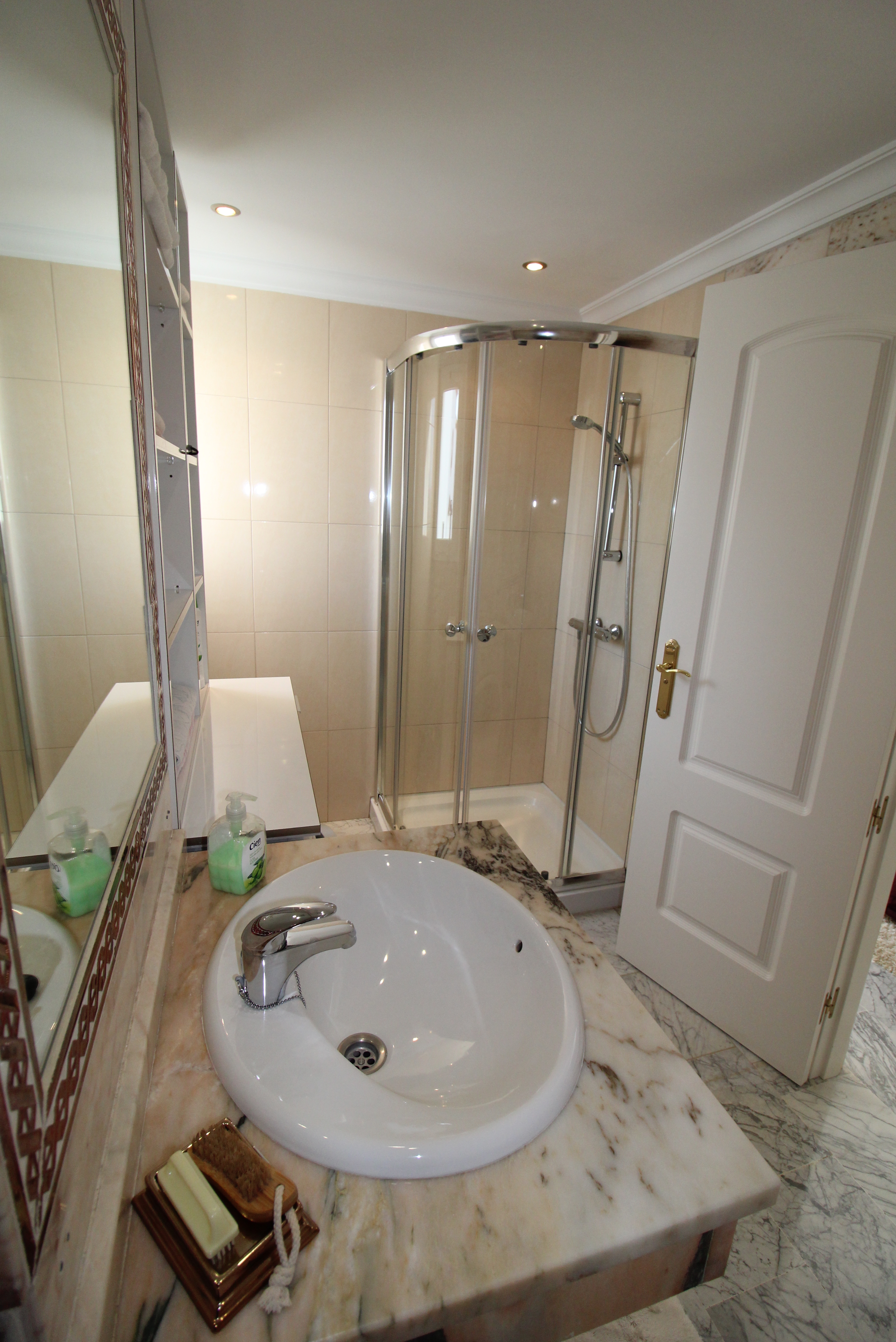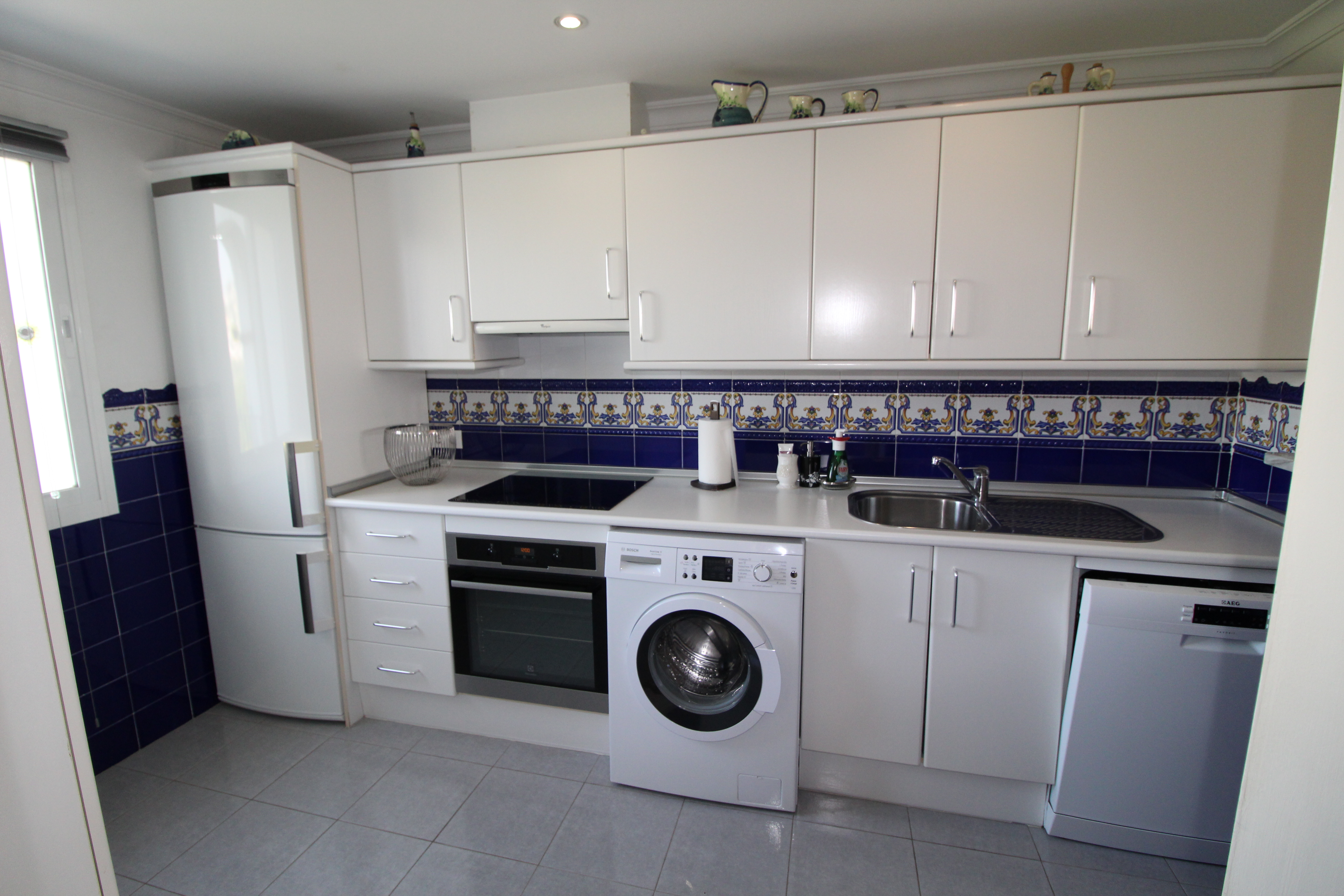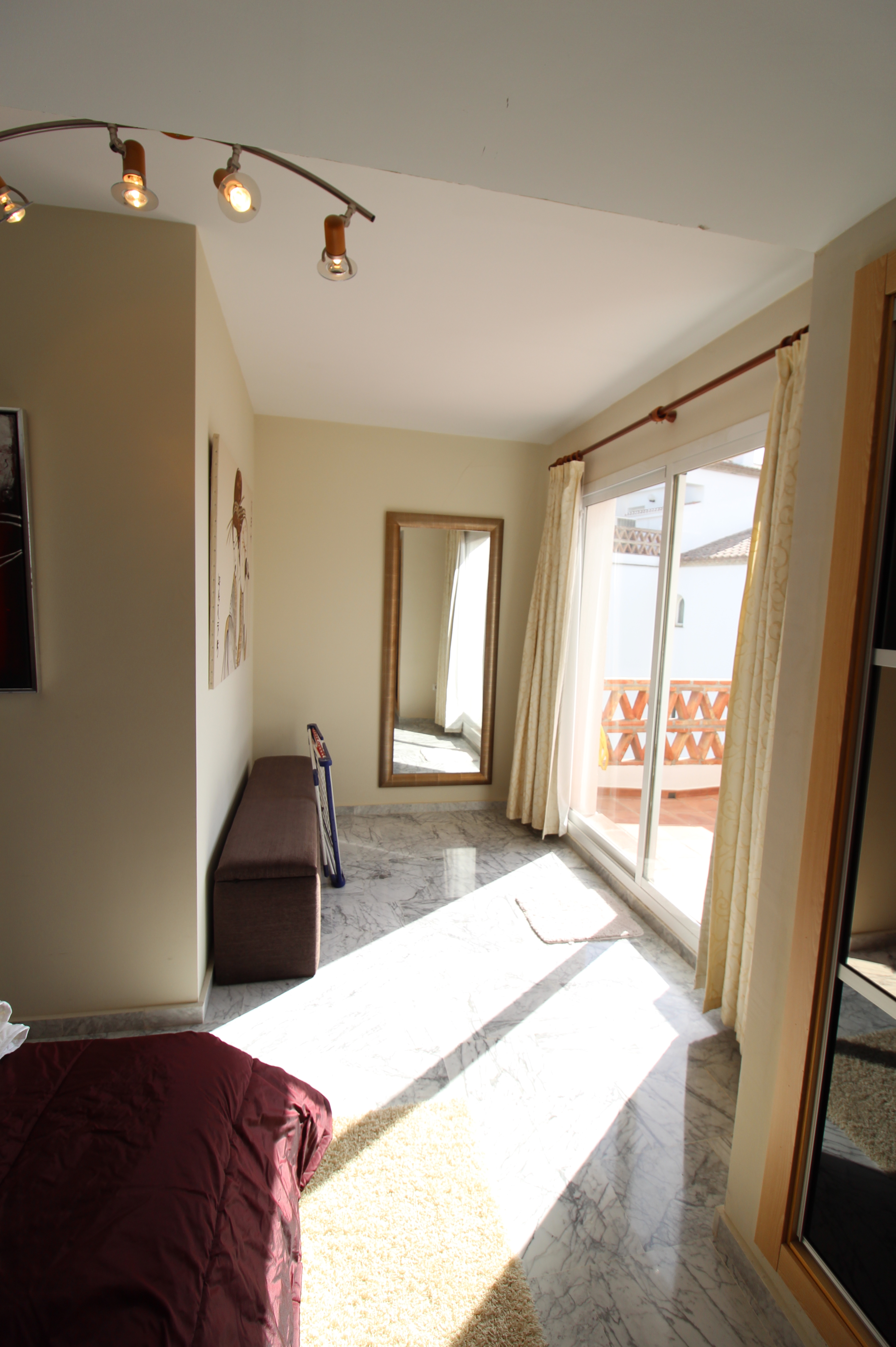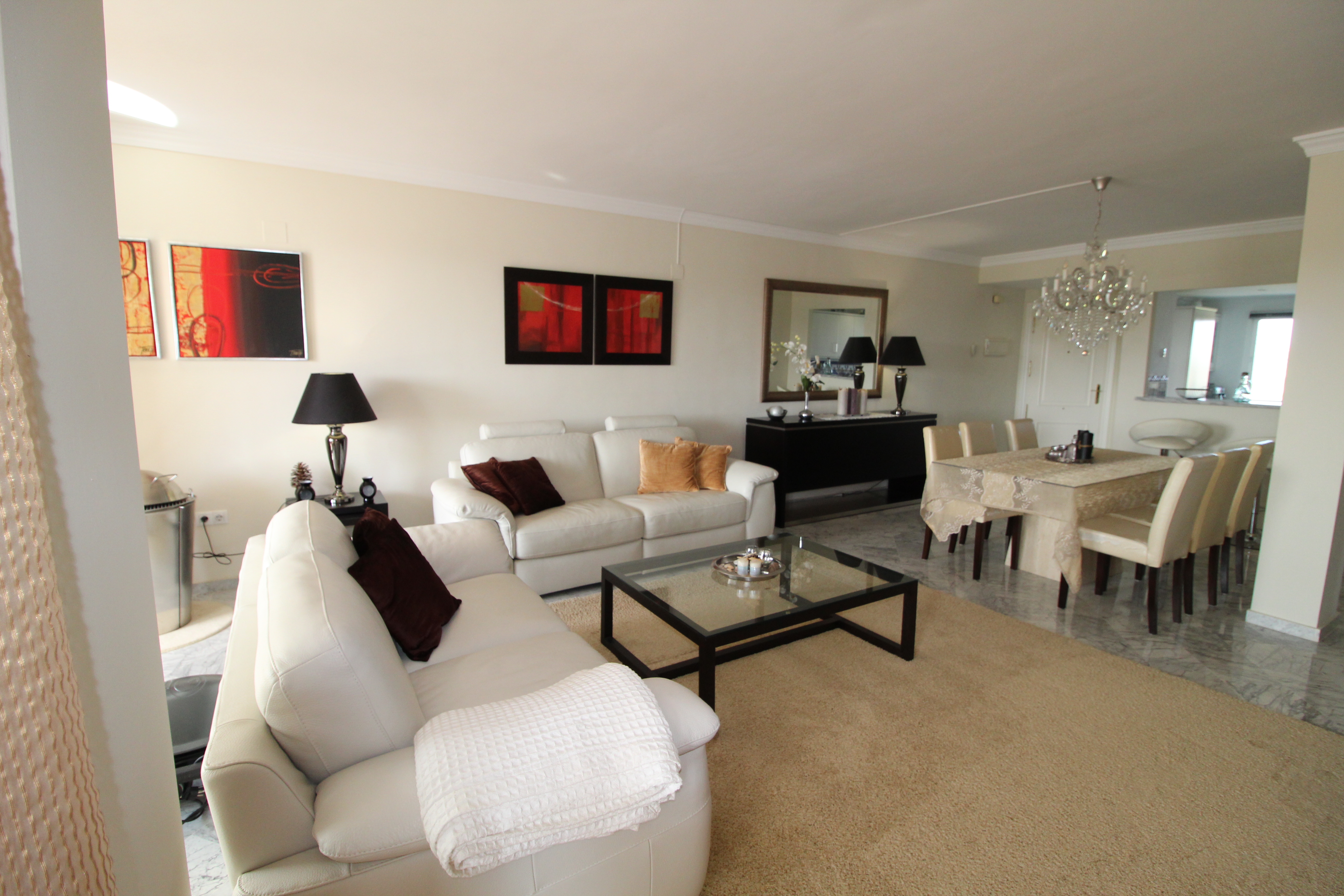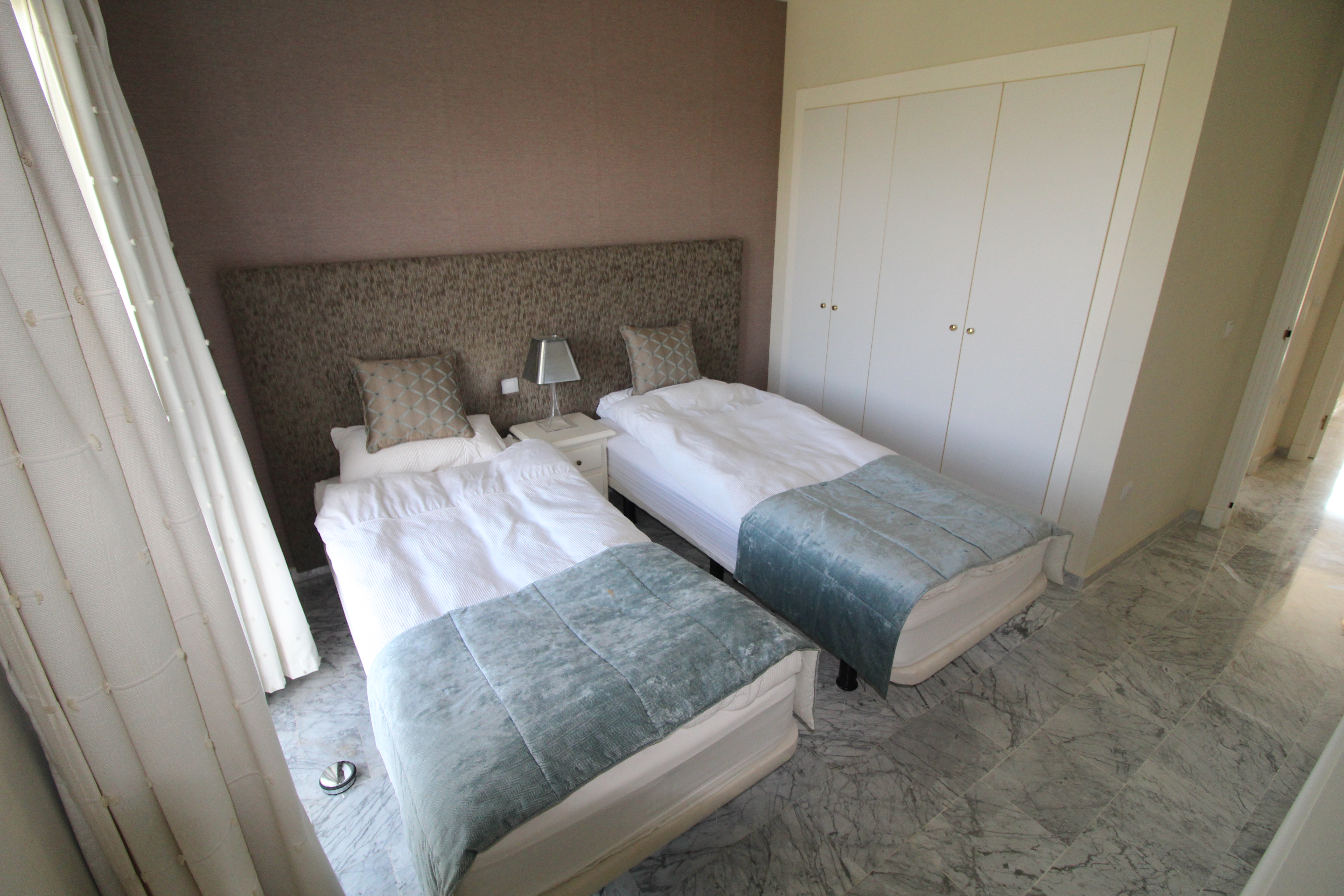 Fra den 30 m2 store sydvest vendte terrasse kan man nyde den skønne udsigt til golfbanen og bjergene. Herfra har man sol hele eftermiddagen og aftenen.