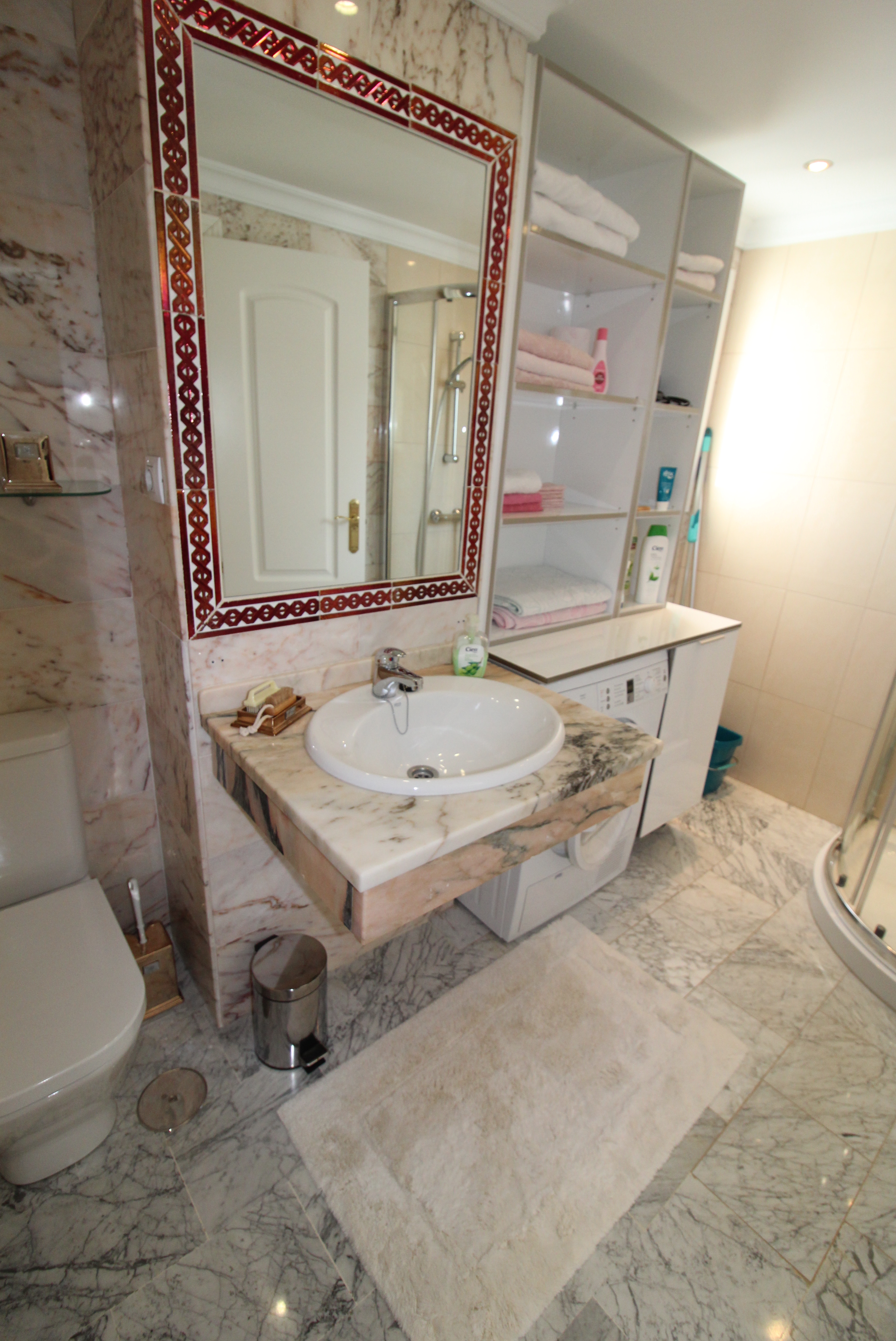 Denne hjørnelejlighed på 124 m2 rummer 3 soveværelser, 2 badeværelser og en god stor stue samt terrasse! Fra stuen og master bedroom kan man gå direkte ud på den solrige terrasse, hvor halvdelen er overdækket og den anden halvdel er åben, så man har mulighed for både sol og skygge. Lejligheden er solgt med en tilhørende parkeringsplads i kælderen.